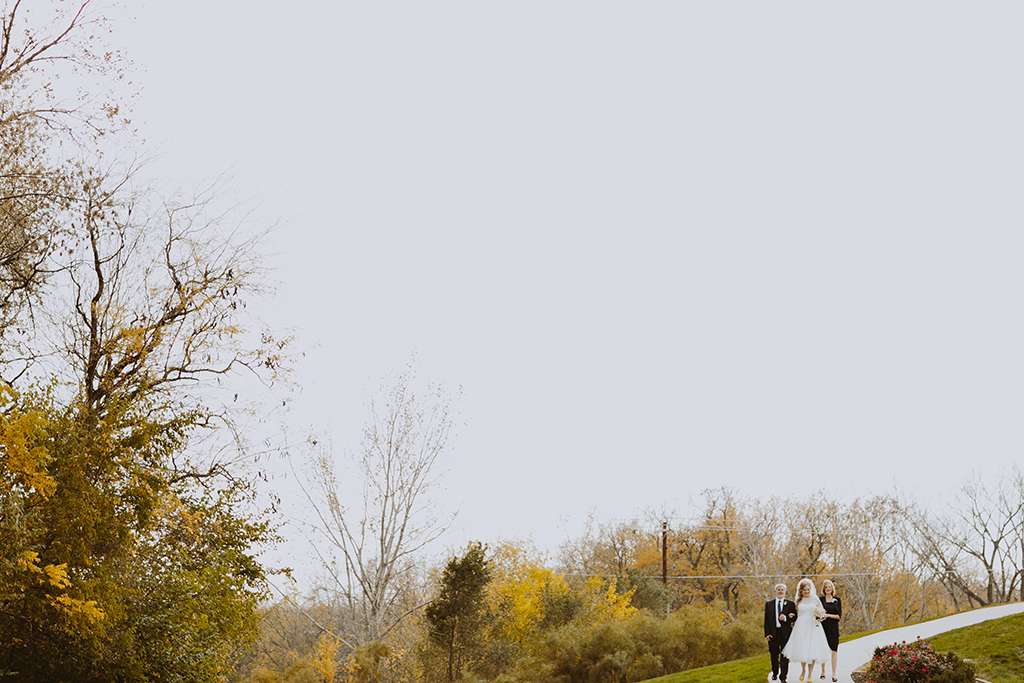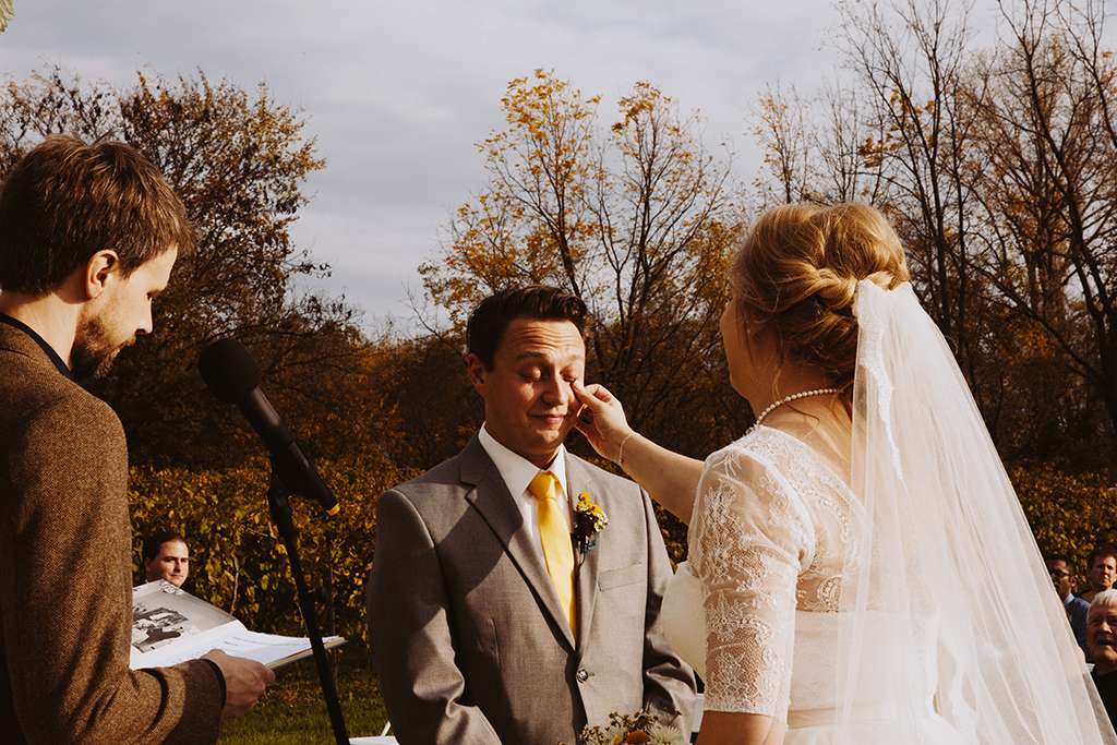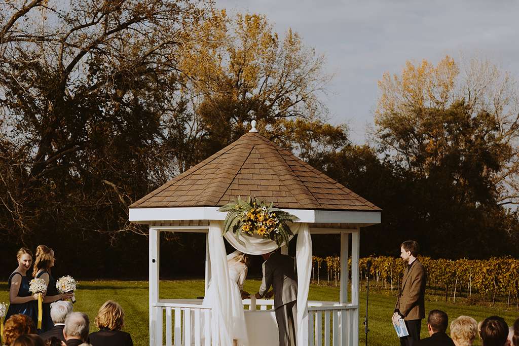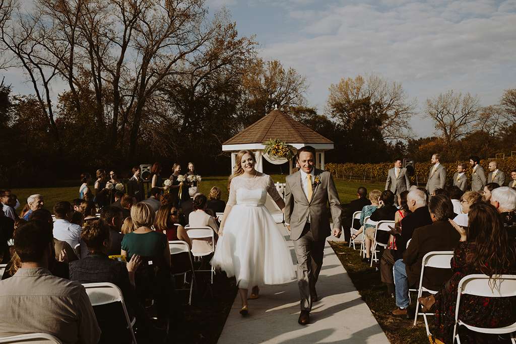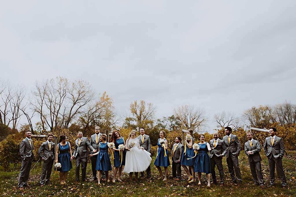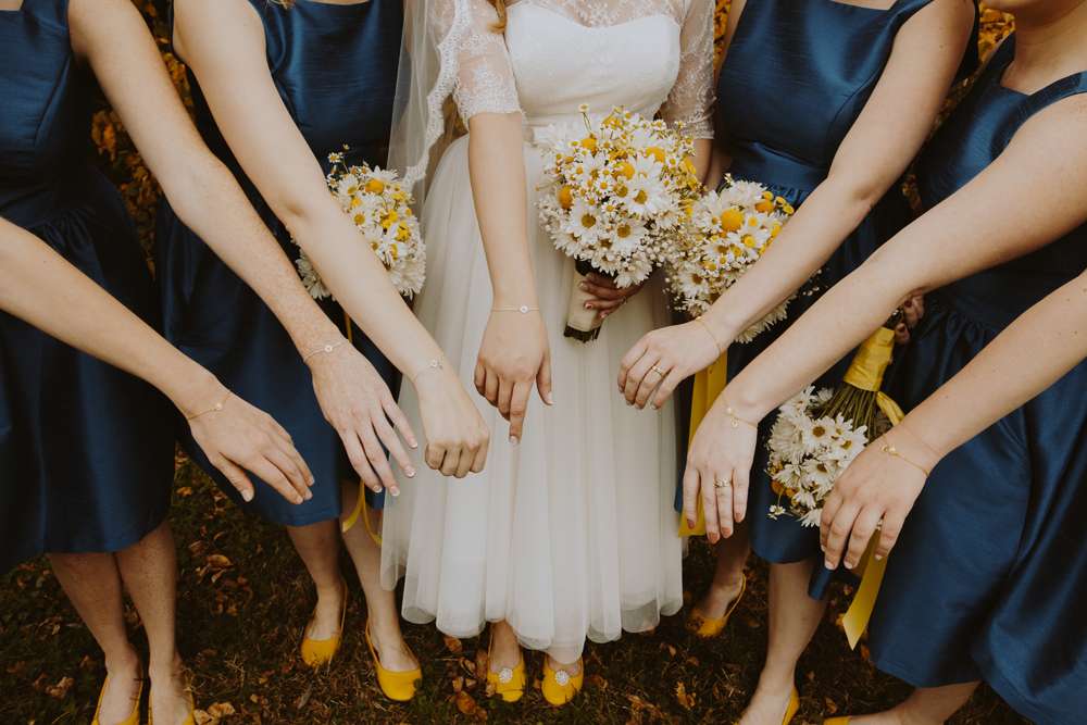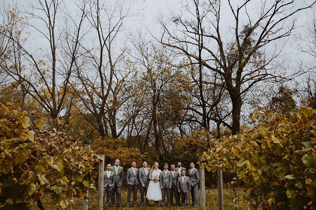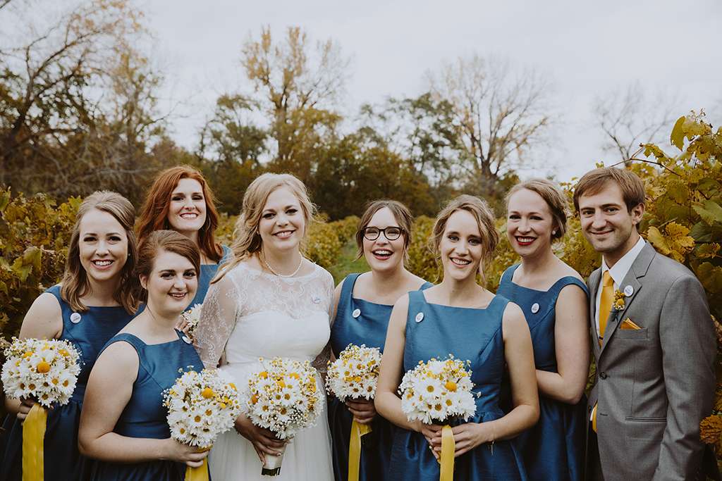They had Beatles artwork for table names, and band member figurines for cake toppers. They decorated their reception venue with more Beatles cover artwork, and even brought Abbey Road to Minnesota by printing a giant poster to use as a photo booth backdrop. Instead of traditional wedding cake, they chose strawberry cheesecake. They used the colour yellow throughout – shoes, ties and flowers, which is a great way of keeping it on theme but doing so as a subtle nod.