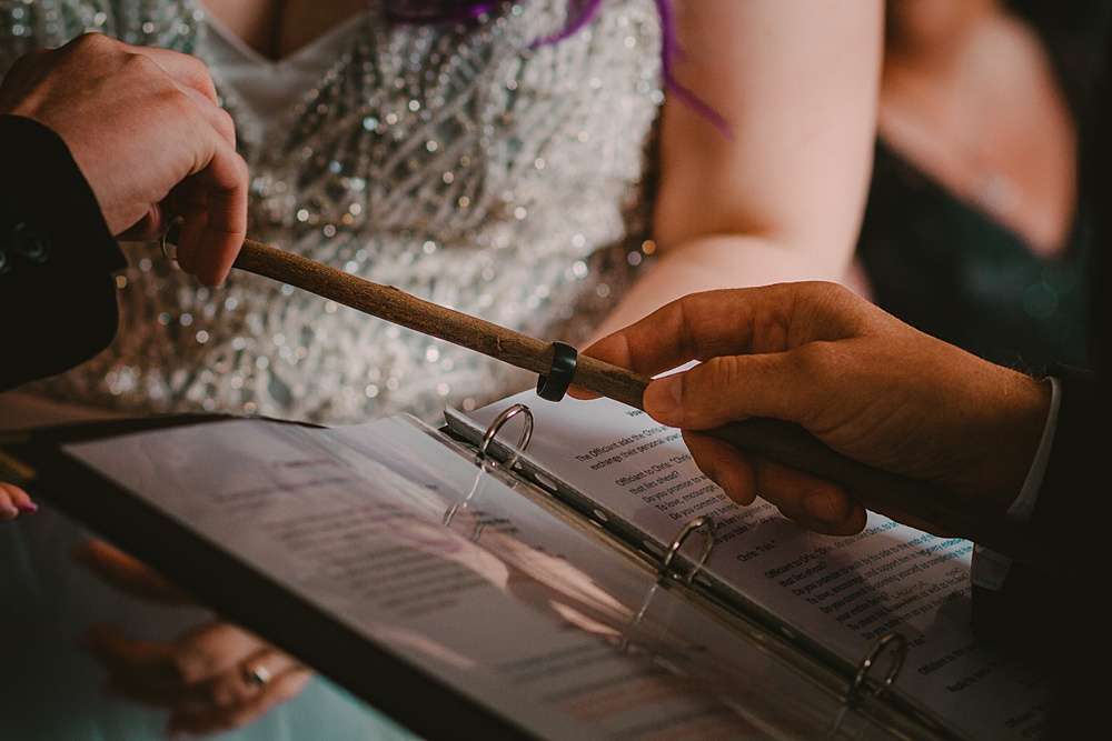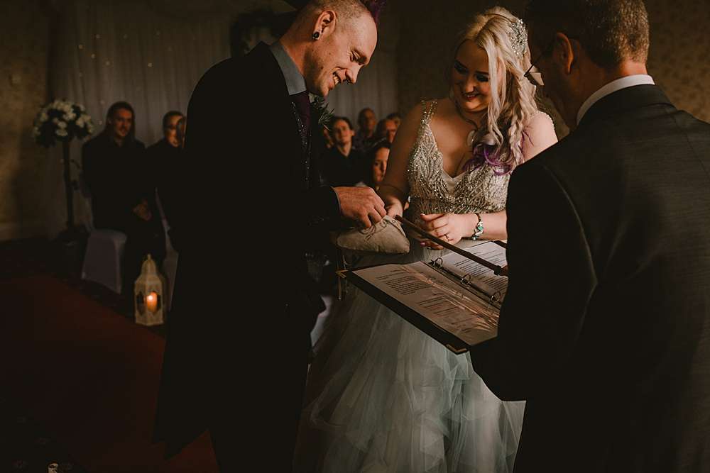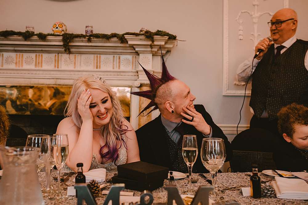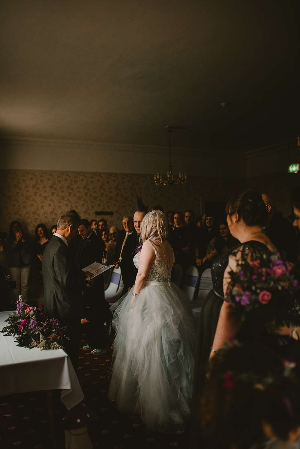 “The inspiration for our wedding was dark fairytales, enchanted forests and woodlands,” Orla explains. “I was originally basing it on Brothers Grimm, but it ended up quite similar to the Once Upon a Time tv show!” After a spiritualist ceremony performed by Belfast Spiritualist Church, including a willow stick ceremony to make their bond everlasting, they moved through to their reception, also hosted in Malone House.