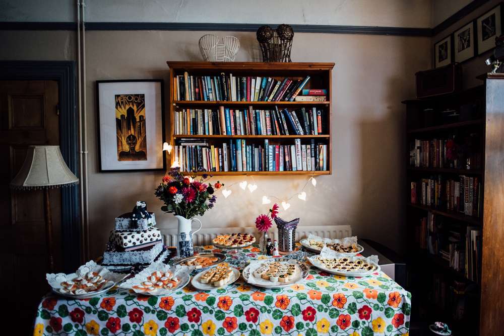 Inspired by punk rock, Day of the Dead and Culture Clash, Amy and Niall planned their August wedding on a £5000 budget. They included nods to their Scottish and Italian/Indian heritages as well as elements that defined them as a couple such as serving a fully vegetarian menu. The family-only ceremony was held at Bedford Town Hall with their low key, DIY reception hosted at The Pavilion in Bedford Park.