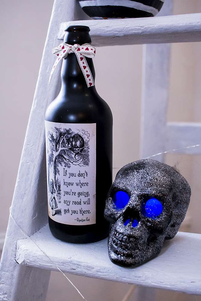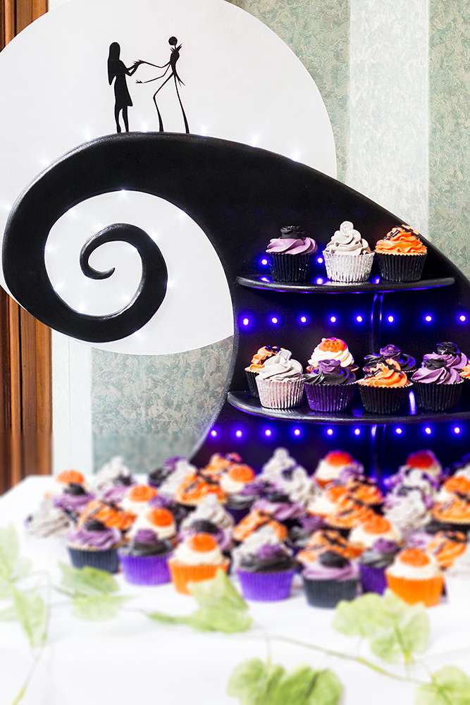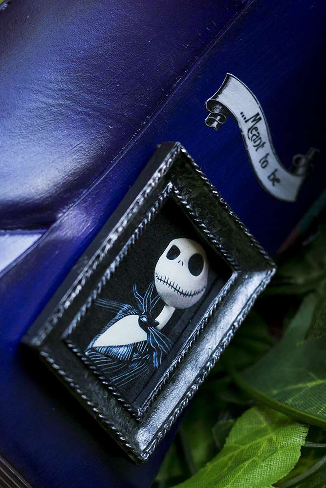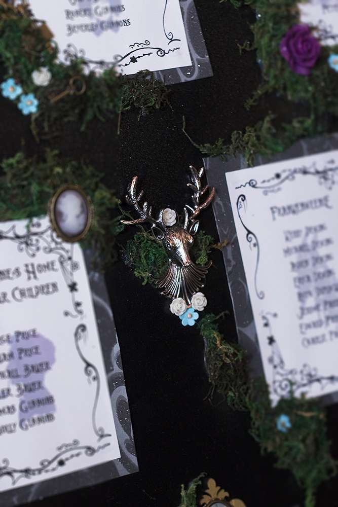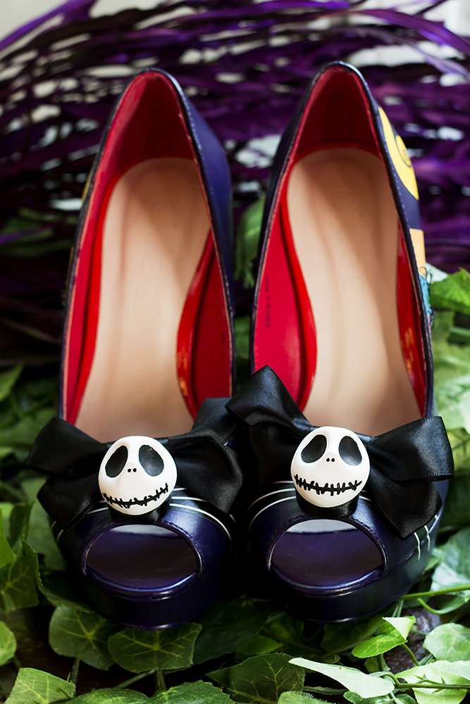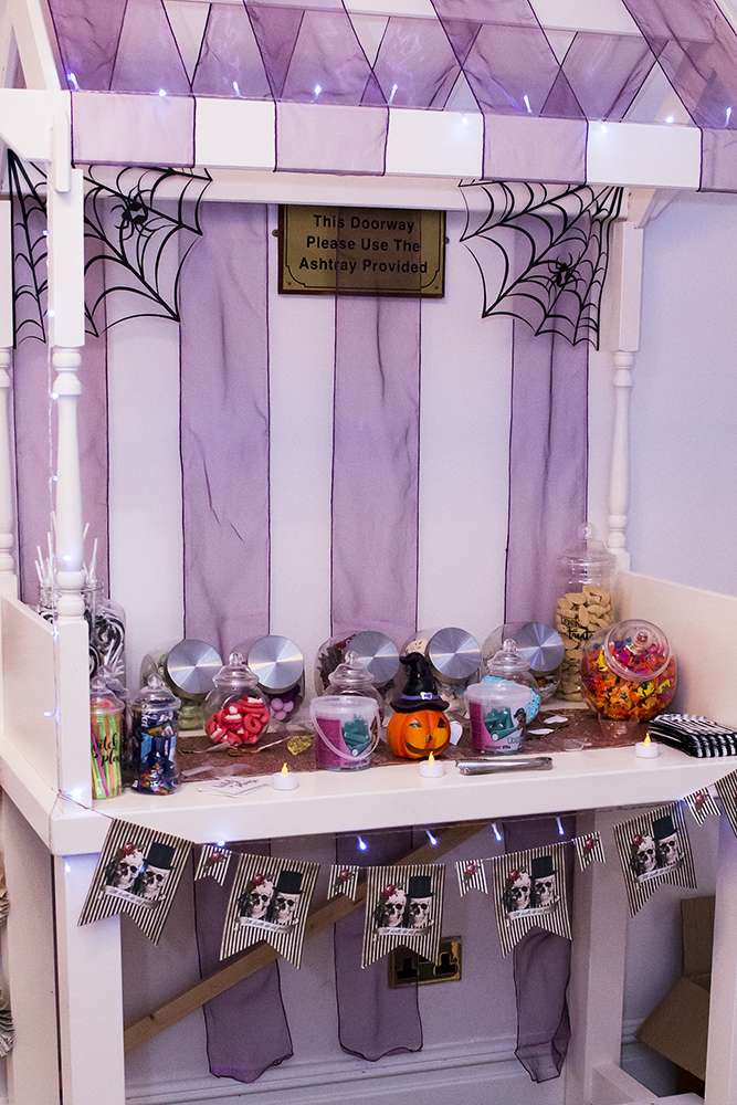 “After discovering Rock n Roll Bride magazine we stocked up on every issue to build our confidence and expand our knowledge down the ‘non-traditional’ route to creating a wedding. We raided TK Maxx’s Halloween section the year before. We mixed all of this with an enchanted forest feel to give it a sparkly Halloween base in which we could build upon. Everything we made incorporated some of the smallest additions from the characters and script to make our guests feel like they had entered in to Halloween Town.”