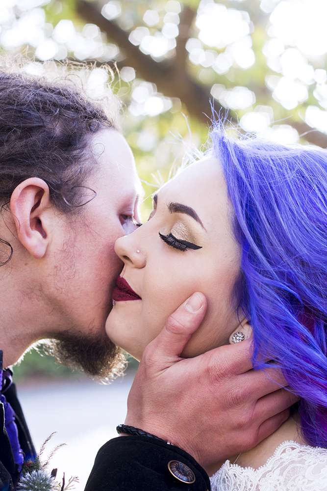 Amy and Andy had a very clear vision for their October wedding: Halloween and Tim Burton. They wanted to use their day to celebrate his magical films that they both grew up with and loved dearly. They also touched upon Halloween by using orange, purple, black and silver in their decorations.