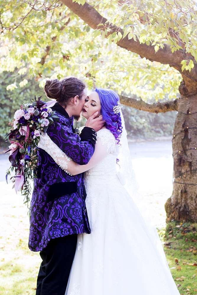 They were married on October 21st (as close to Halloween as they could get) at St Augustine’s in Westgate-On-Sea near Margate. “Halloween has always been a huge yearly event for our family and always one of the happiest so we wanted to choose to celebrate every anniversary as close to it as possible!” Amy began. “For our venue, we wanted somewhere that was a blank canvas and we were delighted to find that St Augustine’s had everything we wanted. It was filled with Victorian and gothic décor with rich reds and gold. They also have a stunning chapel within the building. The gardens were filled with willow trees and made a beautiful backdrop for our photographs.”
