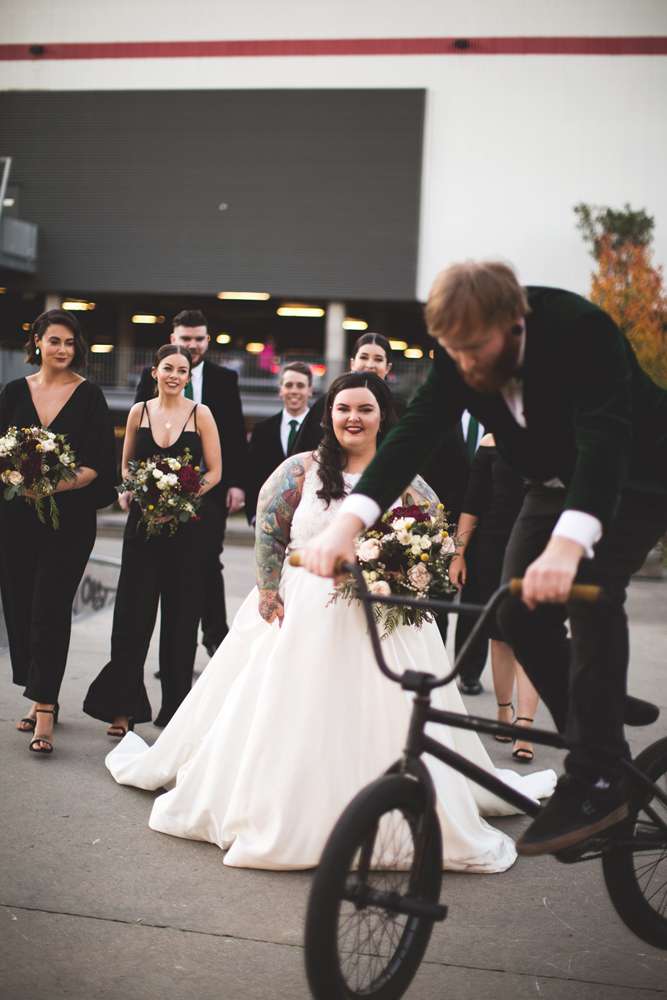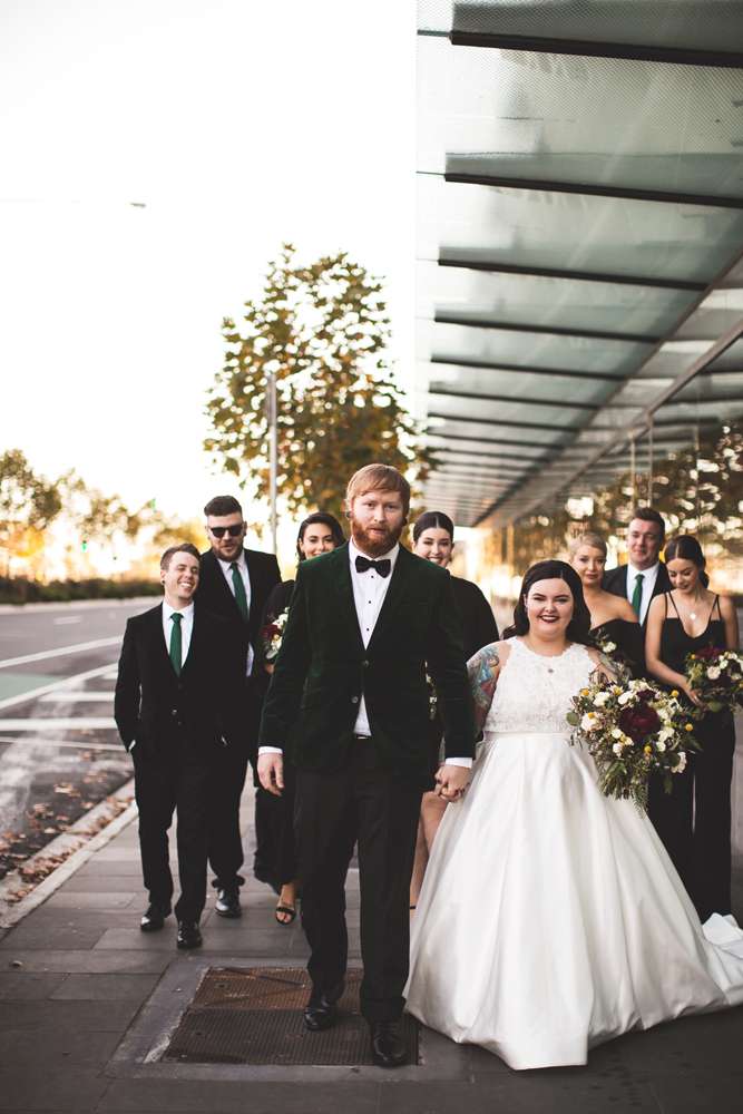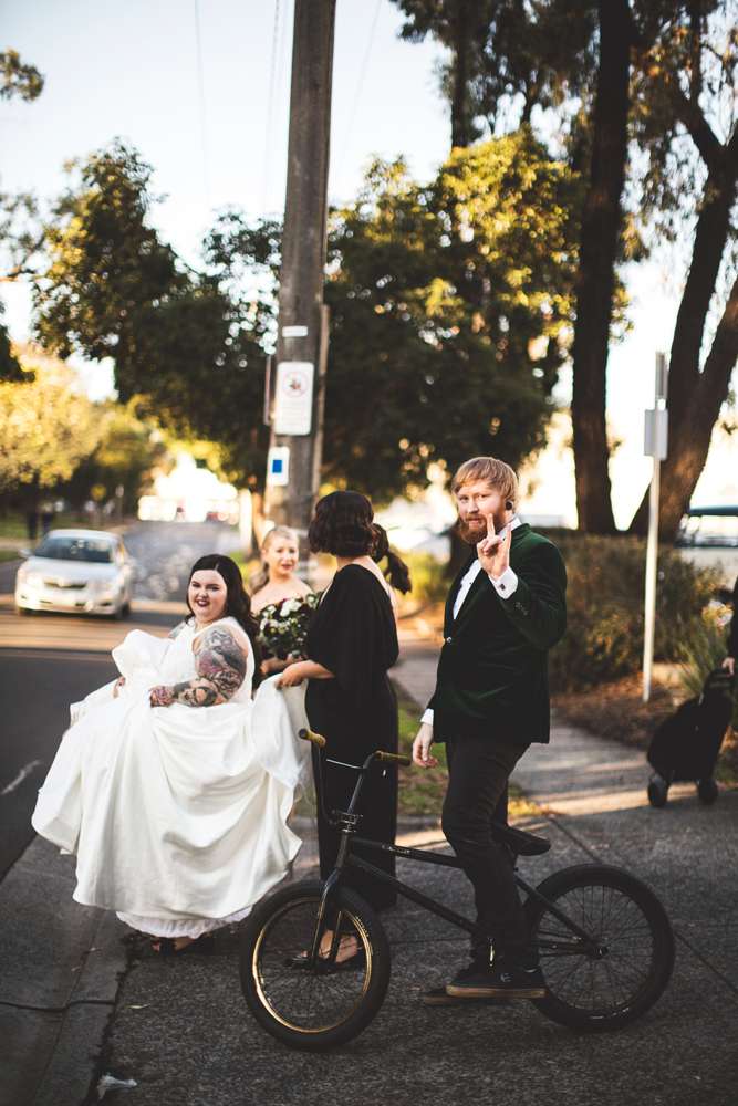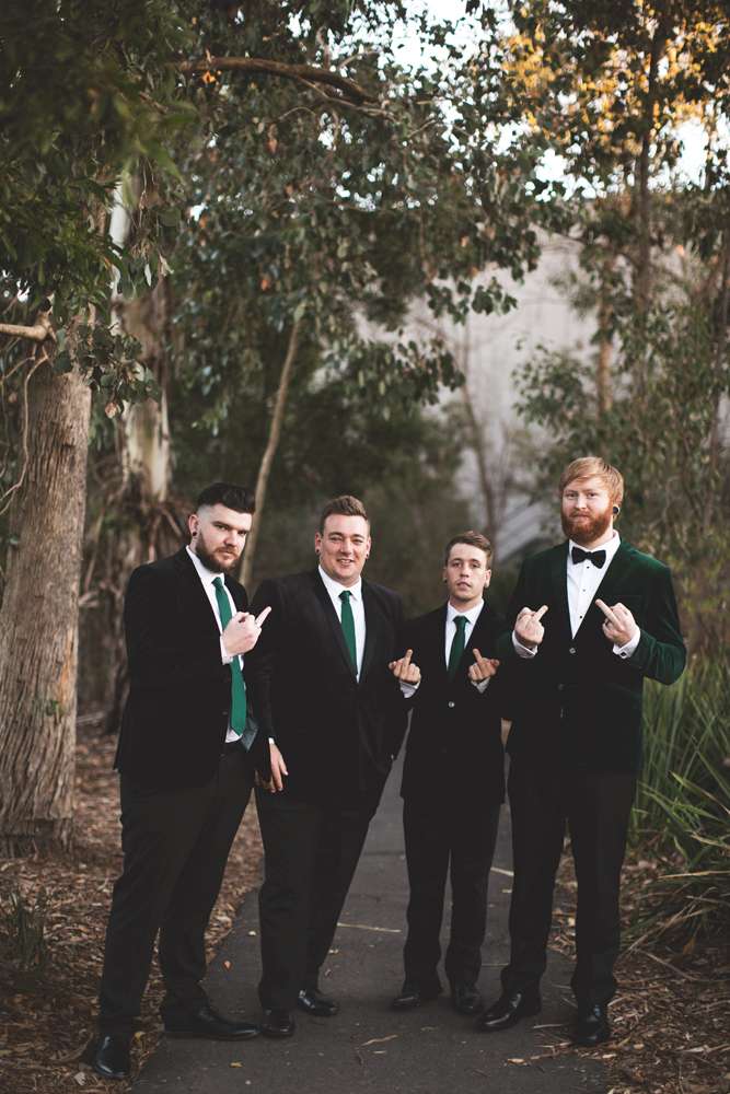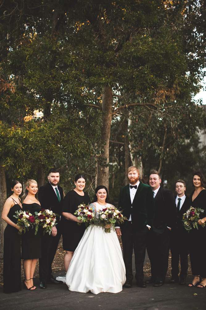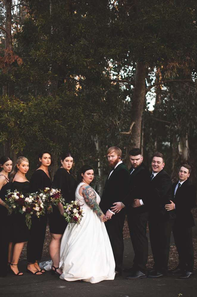 The bride wore a dress from Ferrari Dandenong and her bridesmaids looked elegant yet super cool in the mismatched black dresses, which they chose themselves. There was a funny moment when one ‘maid’s dress split right up the back though! “Half way through the night, the slit up the back of one of my bridesmaid’s very fitted dresses grew and grew, resulting in her having to have half the back of her dress sown up by my matron of honour and another close friend in the bathroom!” Lori laughed. “She eventually ditched the dress and opted for her PJs for the rest of the reception!” I think this story totally sums up their laid back, party vibe attitude to their wedding and I love it!