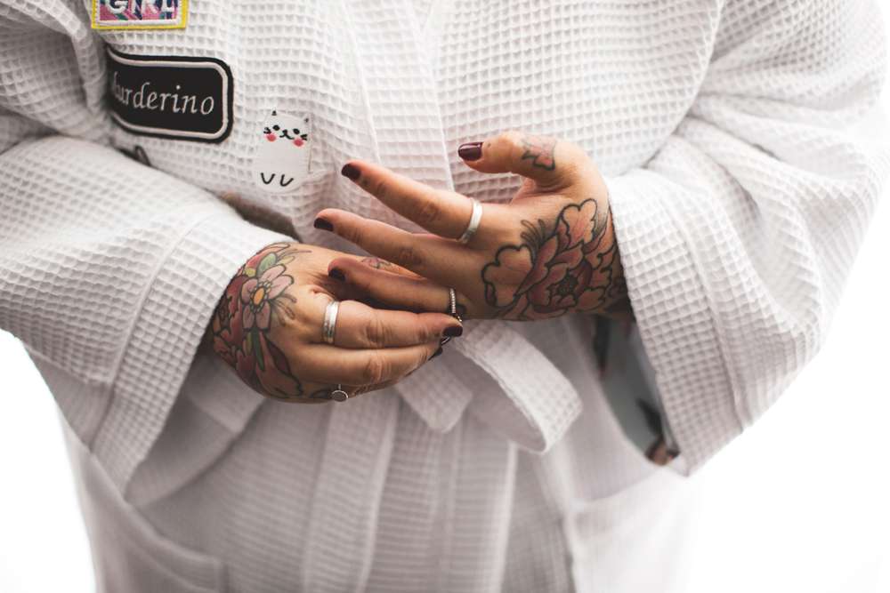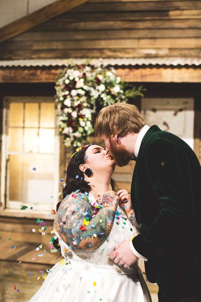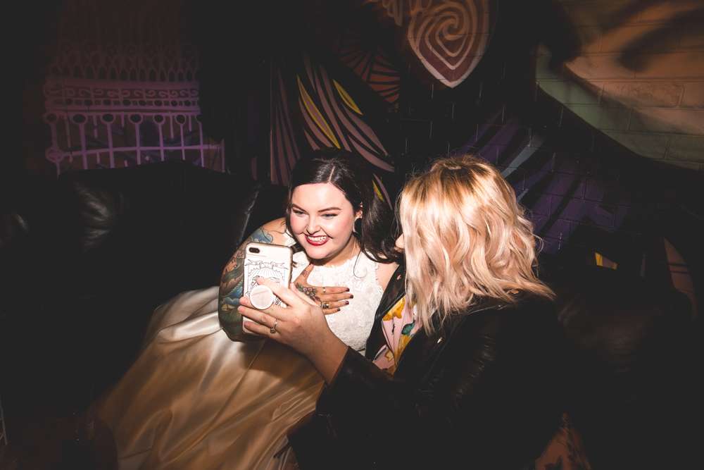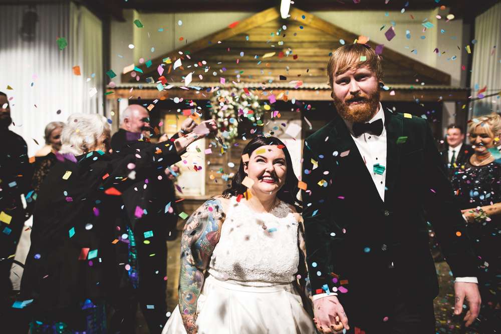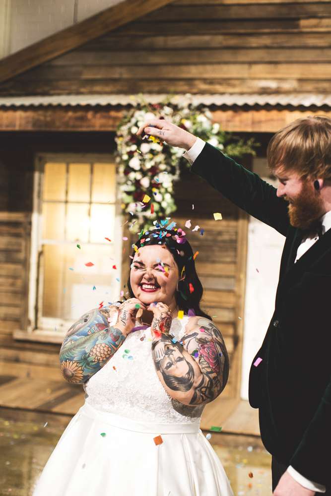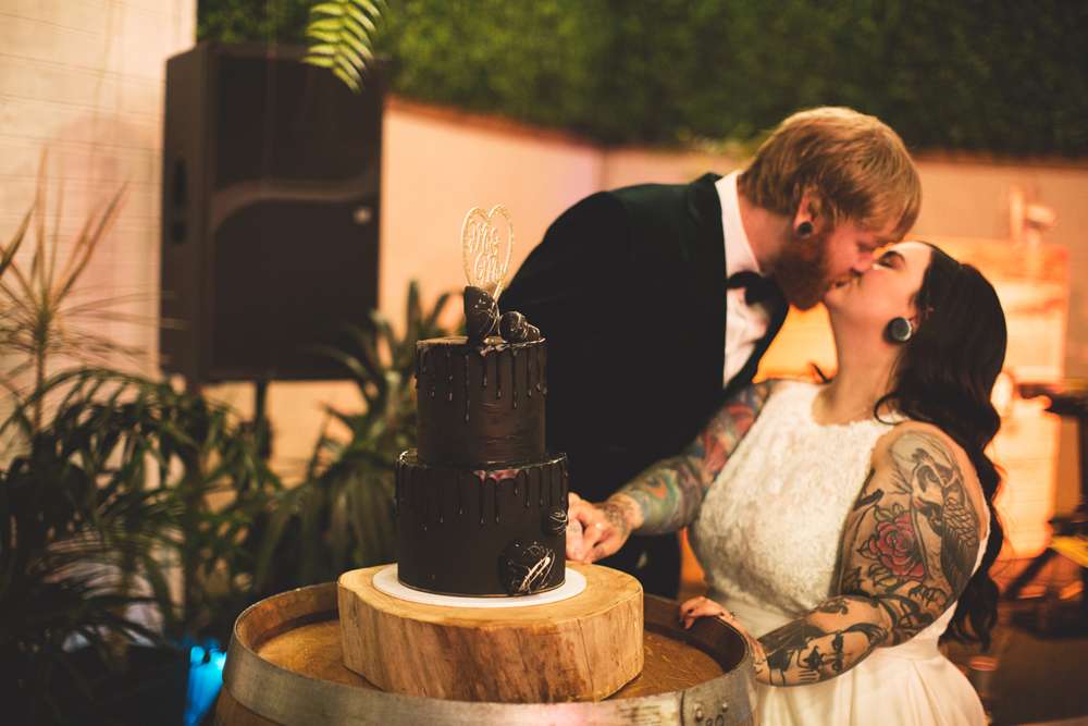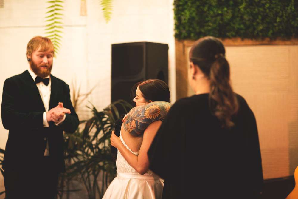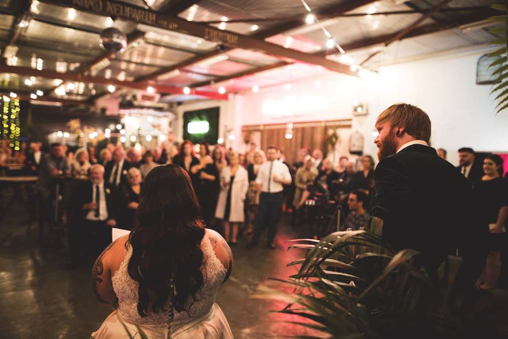 They also kept their ceremony super relaxed, with the bride walking down the aisle with her dad accompanied by an acoustic singer performing Kissing in Cars by Pierce the Veil. “Our ceremony was kept very casual with us interacting with our guests throughout. Lach ended his vows with ‘I love you, like Kanye loves Kanye’ which had me in hysterics after I spent the majority of the ceremony crying, only slightly pulling myself together to read my vows. Our mums were our witnesses and it was so special to have them be a part of our day in that way. We walked back down the aisle to Hooked on a Feeling by Blue Swede and being completely covered in confetti by our guests.”