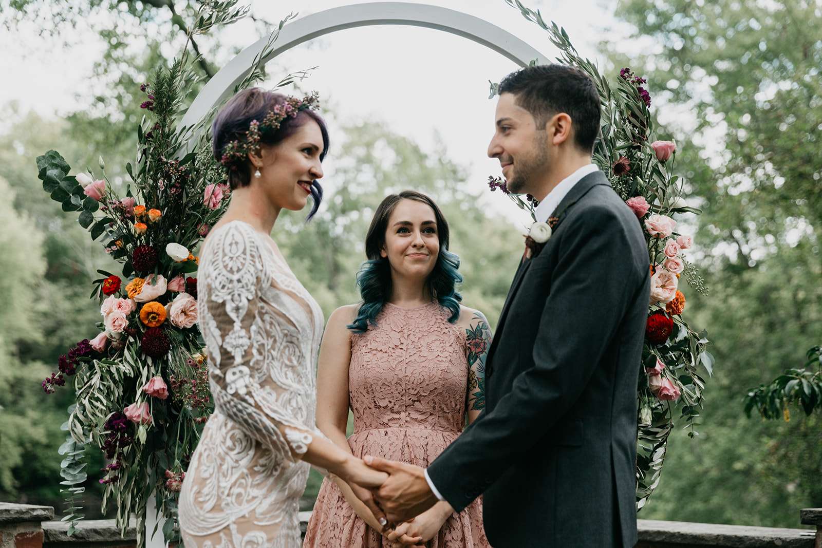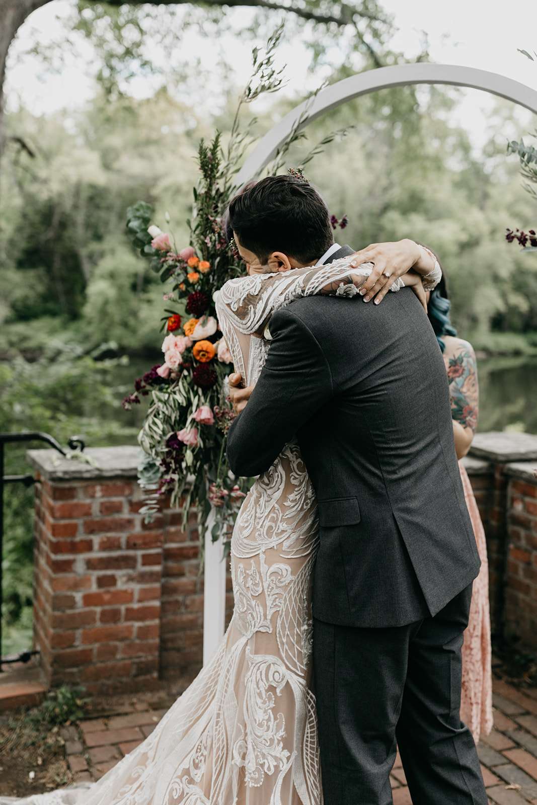 Their ceremony was planned in less than a month and they only spent $1000. “The week before we asked the park if we could elope there and they said no but Brian shmoozed with them and they eventually came around!” she laughed. “We showed up with the archway for the florist to decorate and the park ranger told us no props at the last second. There was a brief moment of anxiety, but again Brian talked his way through getting them to allow us to keep it there!”