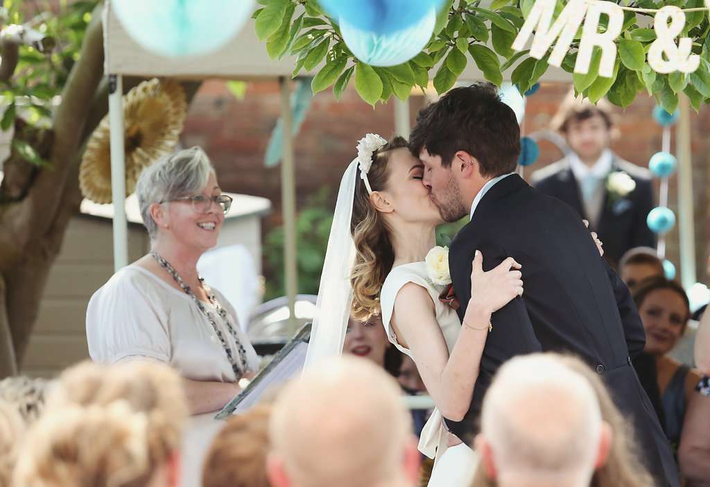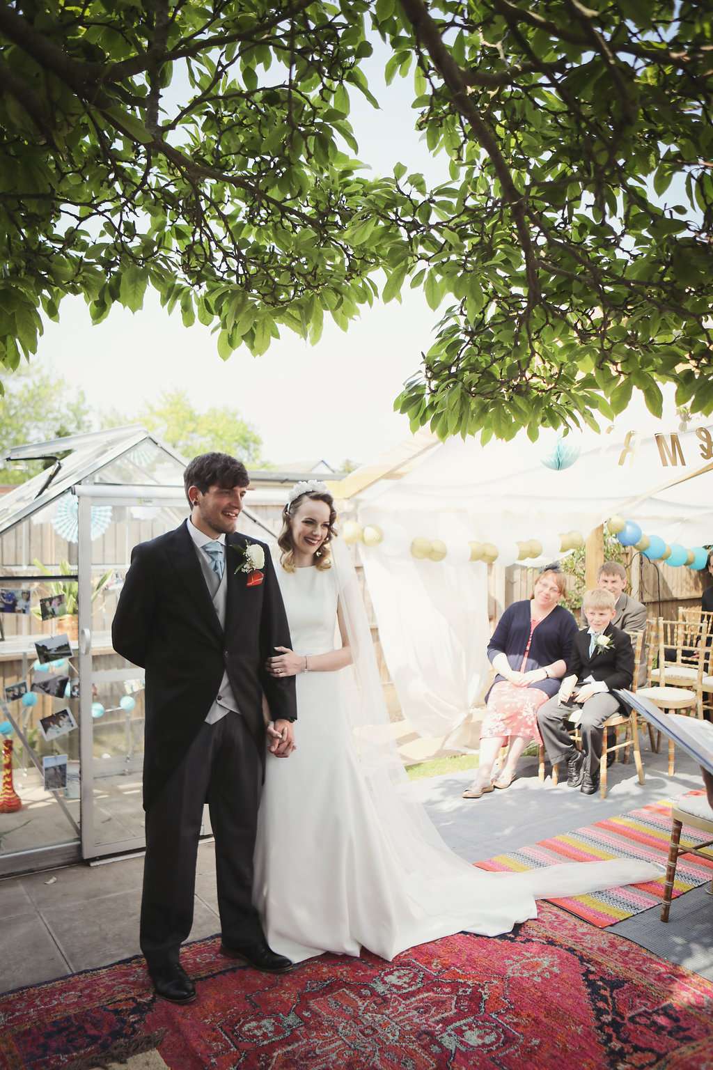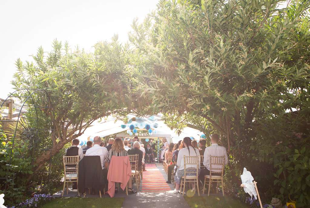 For their Saturday wedding, they kept everything similarly close to home – the venue, in fact, was home! As both Elissa and Joey are humanists, they were able to be flexible with their location, and so decided on their back garden. “We had a pergola built over our garden and used this as our marquee frame,” they explain. “It was one of our main big expenses but worked out at roughly the same as a marquee hire anyway, but it’s a permanent structure we’re now training roses around and can still enjoy it past the big day.”