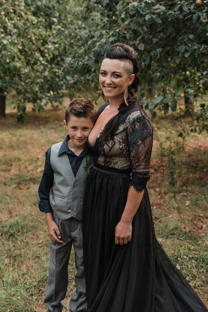 It was a truly personal affair, with only 45 guests. Their close friend became ordained just so he could be the officiant, and Maeg’s nine-year-old son escorted her down the aisle. One of her dogs also ended up walking her down the aisle too! “Our matted old rescue farm dog wouldn’t leave my side all day. We have four dogs and planned to contain them during the event, but this little guy lost his shit when we tried to put him inside so he ended up in our photos and escorting me for the evening!”