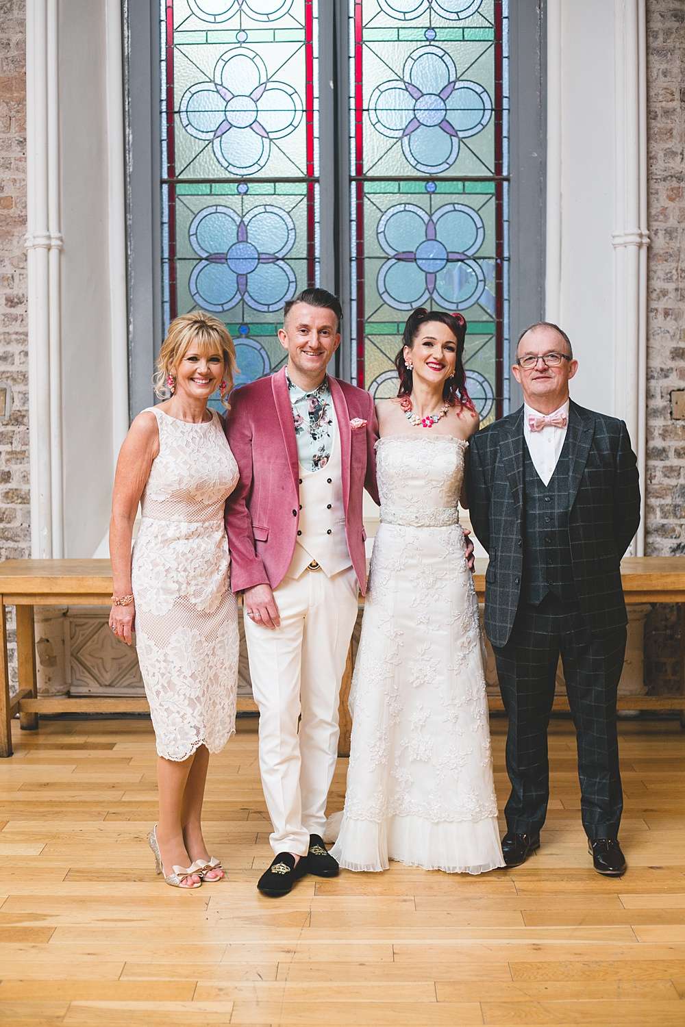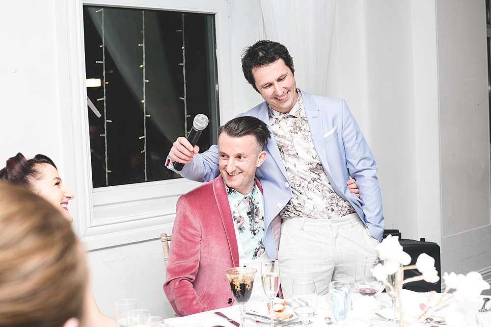 Kieran and his ushers also kept in with the pastel theme, wearing a pink velvet Noose and Monkey suit jacket and white trousers, and his ushers wearing lilac suits. One of Lisa and Kieran’s favourite things about the wedding planning was, in fact, getting to style the bridal party, “It was fun to play dress up with all our friends and family!” the bride said.