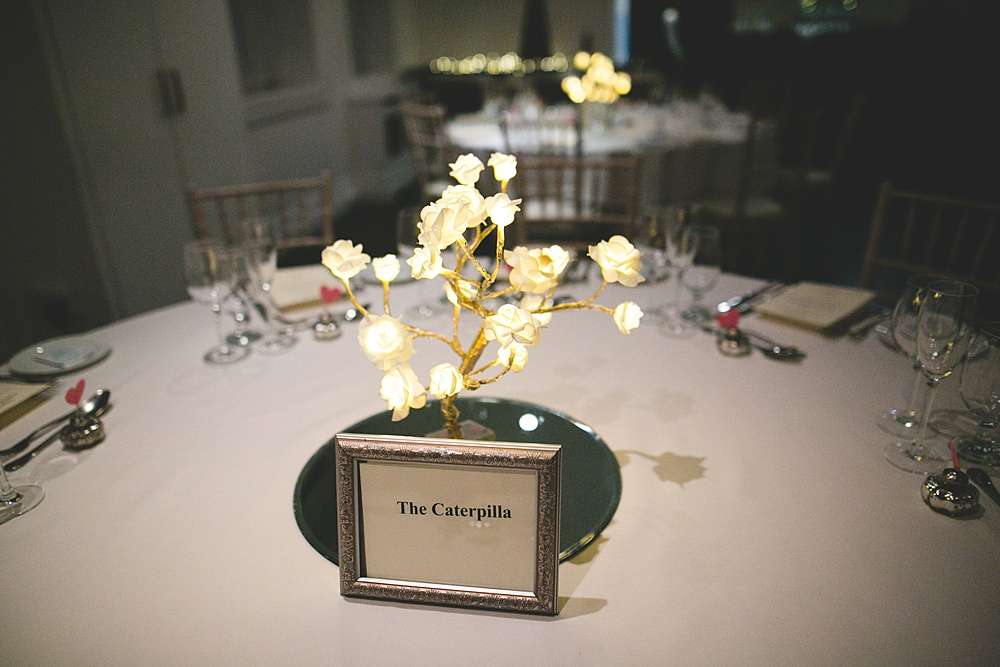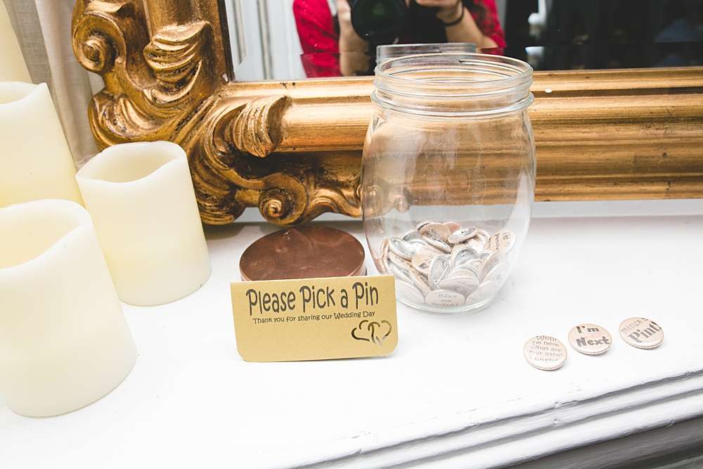 “We had a little pot of badges for people to put on as they entered the reception,” Lisa says, “and little bags of wildflower seeds as our favours. Our table decorations were battery operated trees from Primark that I sprayed gold for a bit of bling. Other than that we didn’t have much decor. Both venues were so pretty that they didn’t really need much jazzing up!”