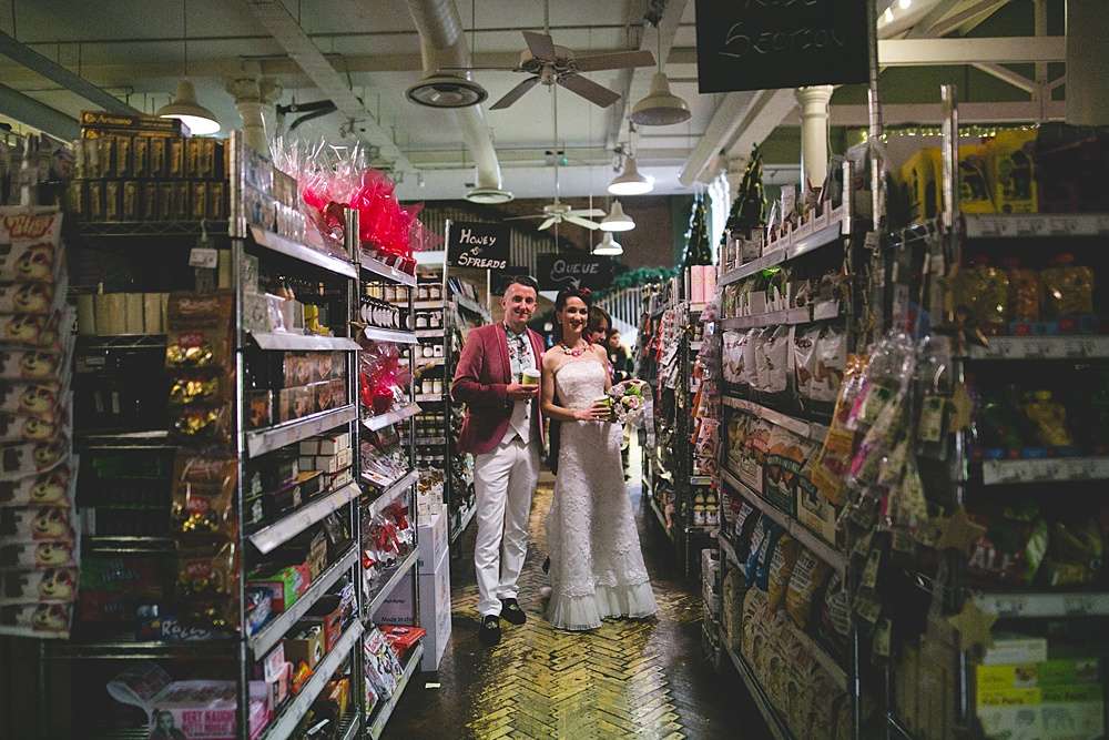 Guests then made their way to the reception, held at Fallon & Byrne, a restaurant and food hall in Dublin (hence the incredible food market shots!) “We opted for the tapas menu for our food, which was delish,” Lisa continues. “We also opted to have our dessert option as our cake rather than paying for an additional one merely for cutting and photos; Fallon & Byrne whacked all the profiteroles into a tower then everyone ate it after.”
