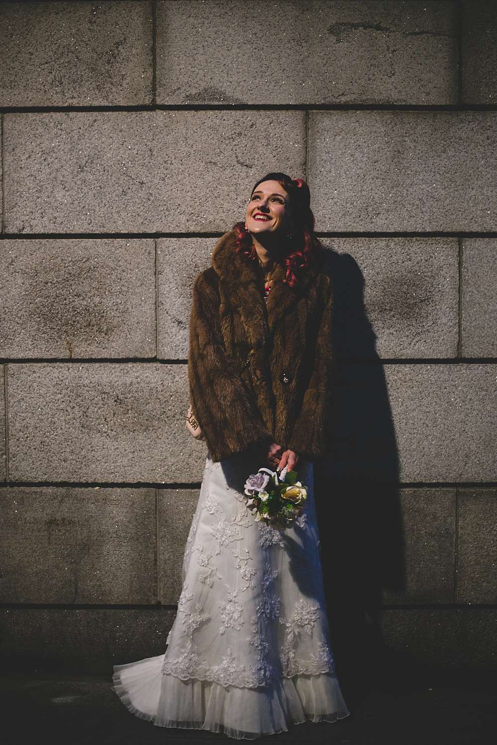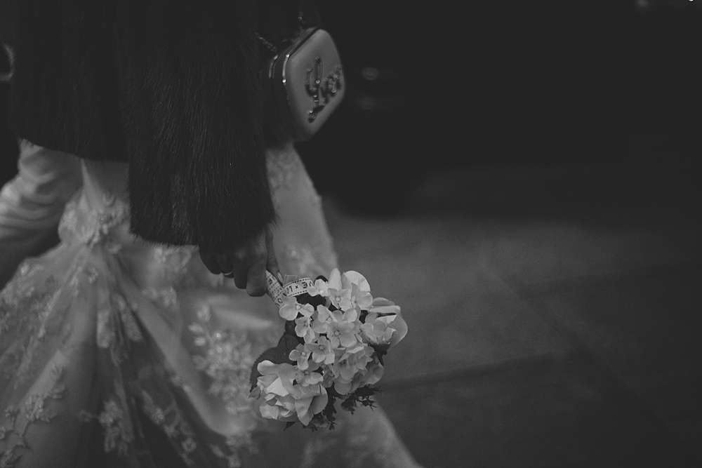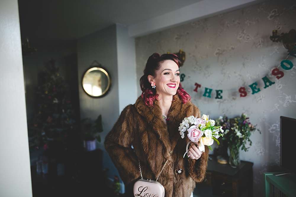 Lisa and her bridesmaids looked super vintage in pin curls by The Make-Up Bar and candy coloured Chi Chi London dresses. Lisa’s dress was second-hand, bought at a bridal fair for “peanuts” – her shoes and accessories (including an amazing clutch bag) were from the high street, and her fur coat was her something old, originally belonging to Kieran’s nan.