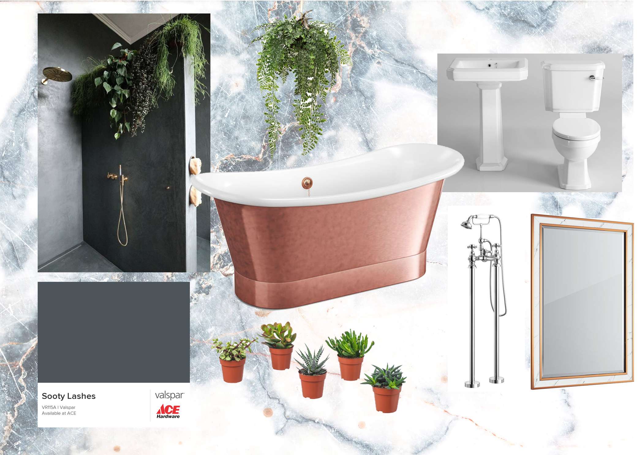 So, doing the bathroom quickly moved up the priority list and I got to work on my new favourite thing… pinning all the things and creating a moodboard! Somewhat surprisingly both myself and Gareth (who usually have quite different tastes until I convince him that my ideas are way better than his) are completely on the same page design-wise. We both like the idea of dark walls, a statement floor, quite traditional-looking sink and loo (to suit the Edwardian era of our home) and a copper bath! I’m unsure about tiles yet, I love the white subway tile look (which we’d do the bottom half of the room in, painting above it dark grey) but I also love the all-dark, just painted look. One thing’s for sure though, I’ll be filling the room with green plants, it’s going to be A DREAM.