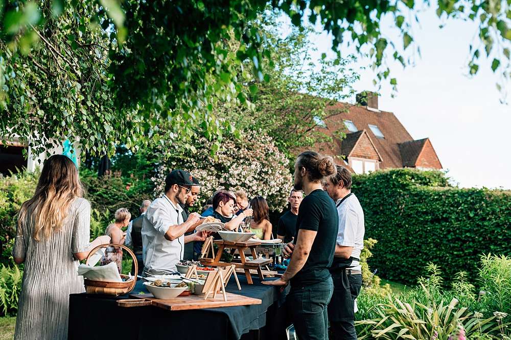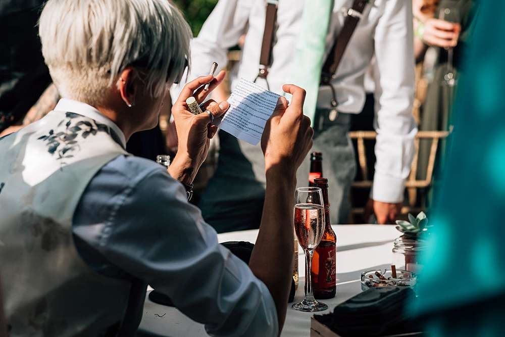 After the ceremony, their nearest and dearest all relaxed in the garden. Instead of a formal sit down dinner, Felix and Jack chose loads of canapés served over a number of hours, followed by a taco bar.