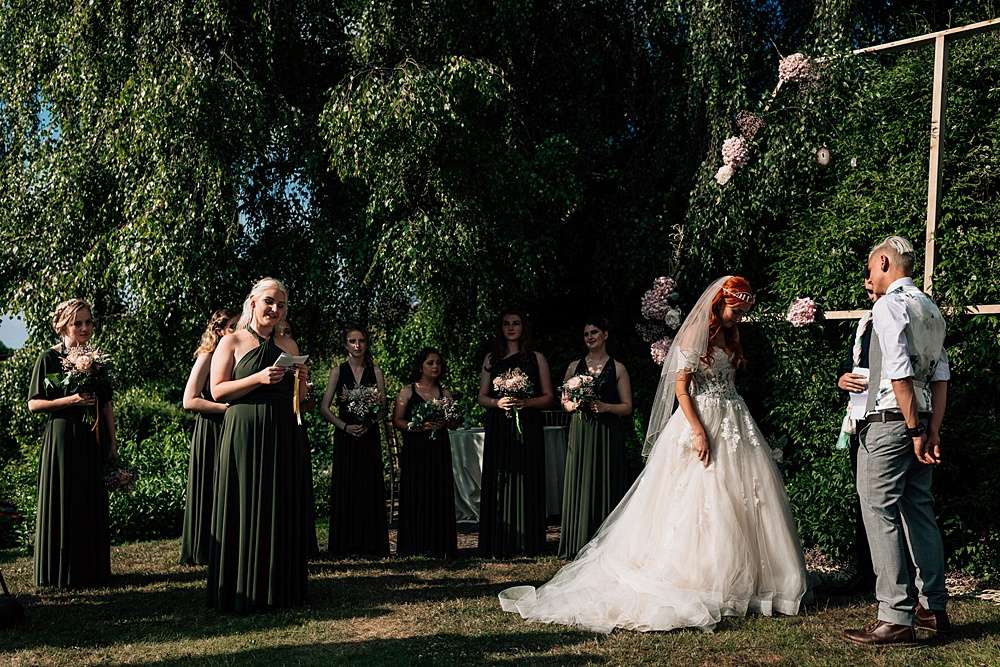 The couple really got their family involved in the day, with Felix’s mum planning and coordinating and Felix’s older brother as the officiant (you can see how much it means to everyone in the photos – everyone is crying!) Felix’s bridesmaids (who were barefoot for the ceremony) also made all of the bouquets and boutonnieres with flowers bought from New Covent Garden Market – the couple also grew their own chocolate cosmos (which smell diiiivine) to add a sensory element to her bouquet.