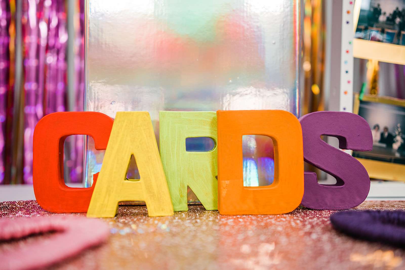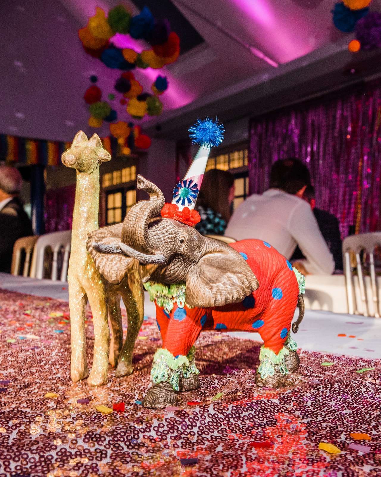 And now for the party: “If I was a thing I would be an actual rainbow,” Jodie says, “so we opted for a full on RAINBOW theme with our personalities at the centre of it. My Pinterest board was absolute mayhem, full of bright and amazing ideas but I was struggling to reign it in. We enlisted the help of Apple Tree Events who helped to suggest a more focused approach. We opted for no flowers, instead choosing succulents with bright coloured heads that flower that were planted in mini Prissyem disco balls, placed with an array of animals from Painted Parade all wearing party hats. We used foils to decorate the walls and had a mix of pom pom chandeliers, pom pom garlands, tissue tassel garlands created by Sharelle from Apple Tree and huge colourful balloons dotted all around.”