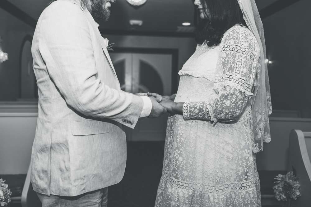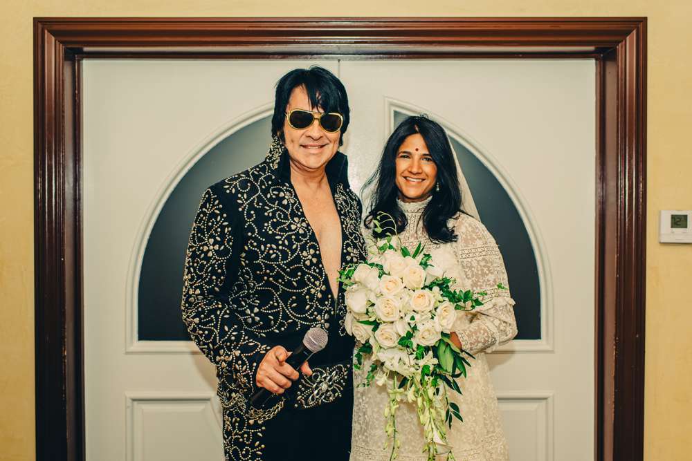 They got engaged on Valentine’s Day and the very next day they found out she was pregnant! They began by trying to plan a big family wedding, with guests from New Zealand (where Chris is from) and the US (where Pia is from) travelling over to the UK (where they now live) but it all proved quite difficult and stressful with a baby on the way. In the end they decided to throw tradition completely out the window and to elope. This also negated the issue of having a religious ceremony. With the bride’s family being Hindu and the groom’s, Christian, they would have probably ended up needing two ceremonies to keep everyone happy, which they really did not want. So, with Pia seven months pregnant they flew to Vegas and were married by Elvis instead!