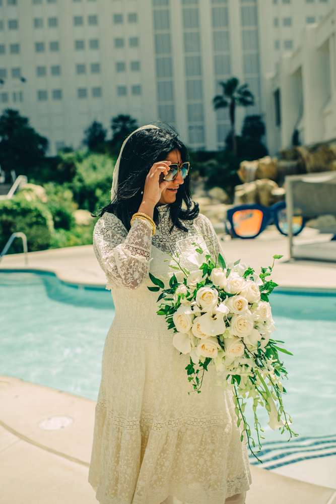 They didn’t even tell their parents they were eloping, but luckily, everyone was thrilled for them! “At one point Chris’ Mum said to him in a message ‘Please just no Vegas!’ so he was a bit nervous to tell her, but she actually thought it was great. All our family and friends did. Everyone was just really happy for us. No one was upset which was a relief. My Mum passed away last year and the last time I hung out with her I told her Chris and I would love to just elope to Vegas and she said we should totally do it. Its nice to know that I had her approval too.”