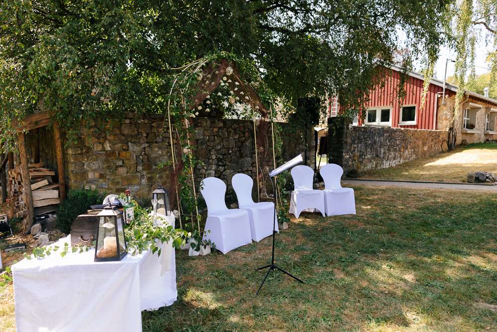 For their ceremony, performed in the grounds of their venue underneath a beautiful handmade rose arch, both Joana and Maria were walked in by someone close to them. They drank wine from medieval goblets, and then performed a handfasting ritual before exchanging rings from a chest that their maid of honour’s had the keys for. They exchanged vows (with more tears) and then danced into the inner courtyard for their welcome drinks and barn reception.