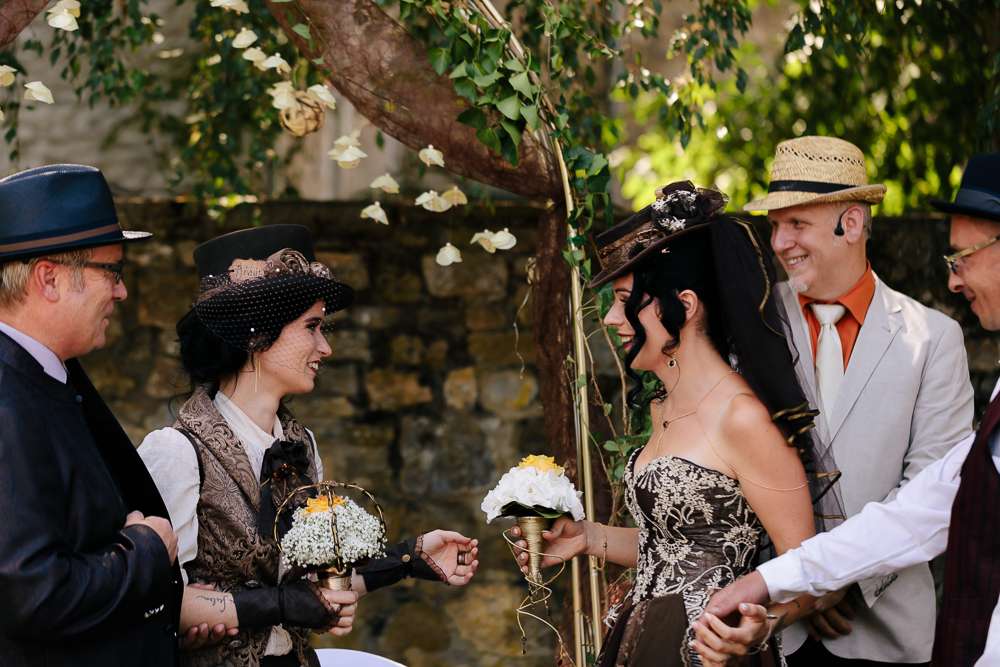 As fantasy cosplayers in their spare time, there was no doubt in their minds that Joana and Maria’s wedding would be a fantastical fairytale! Drawing inspiration from all different areas – their participation in medieval festivals, their love of steampunk and all things rustic and fairytales; they didn’t want to be constrained by one particular genre so they just chose all the things they love.