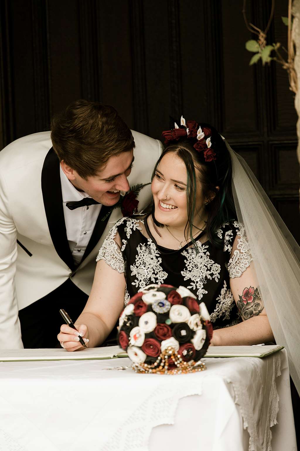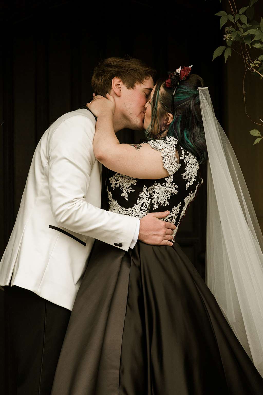 Celebrating their individuality and staying true to themselves helped guide all their decision making for their big day. They ditched traditions that didn’t suit, or twisted them completely; the bride wore black and the groom wore ivory. Jordanna was escorted to the aisle by her older brothers, and then walked down it by herself.