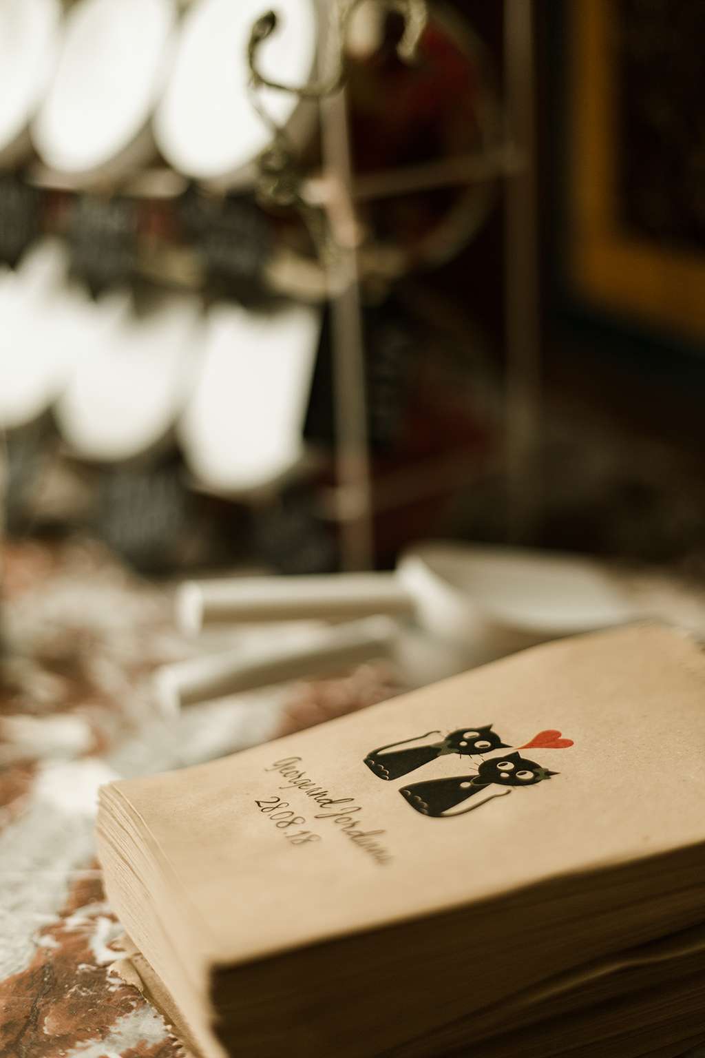 Wherever possible, George and Jordanna went the DIY route – not only to save money, but also to make their vision come to life! They eschewed traditional flowers, instead opting for artificial bouquets that Jordanna sourced from the high street during Valentine’s. They DIY’d a photo booth with cat themed props and disposable cameras. They had a basket of cosy cat socks for people to slip onto weary, danced-out feet. Their favours were cat-themed colouring therapy books, which they also made themselves. They spent a huge amount of time and effort making sure every attention to detail was covered – armed with long to-do lists and post-it notes throughout their year long engagement.