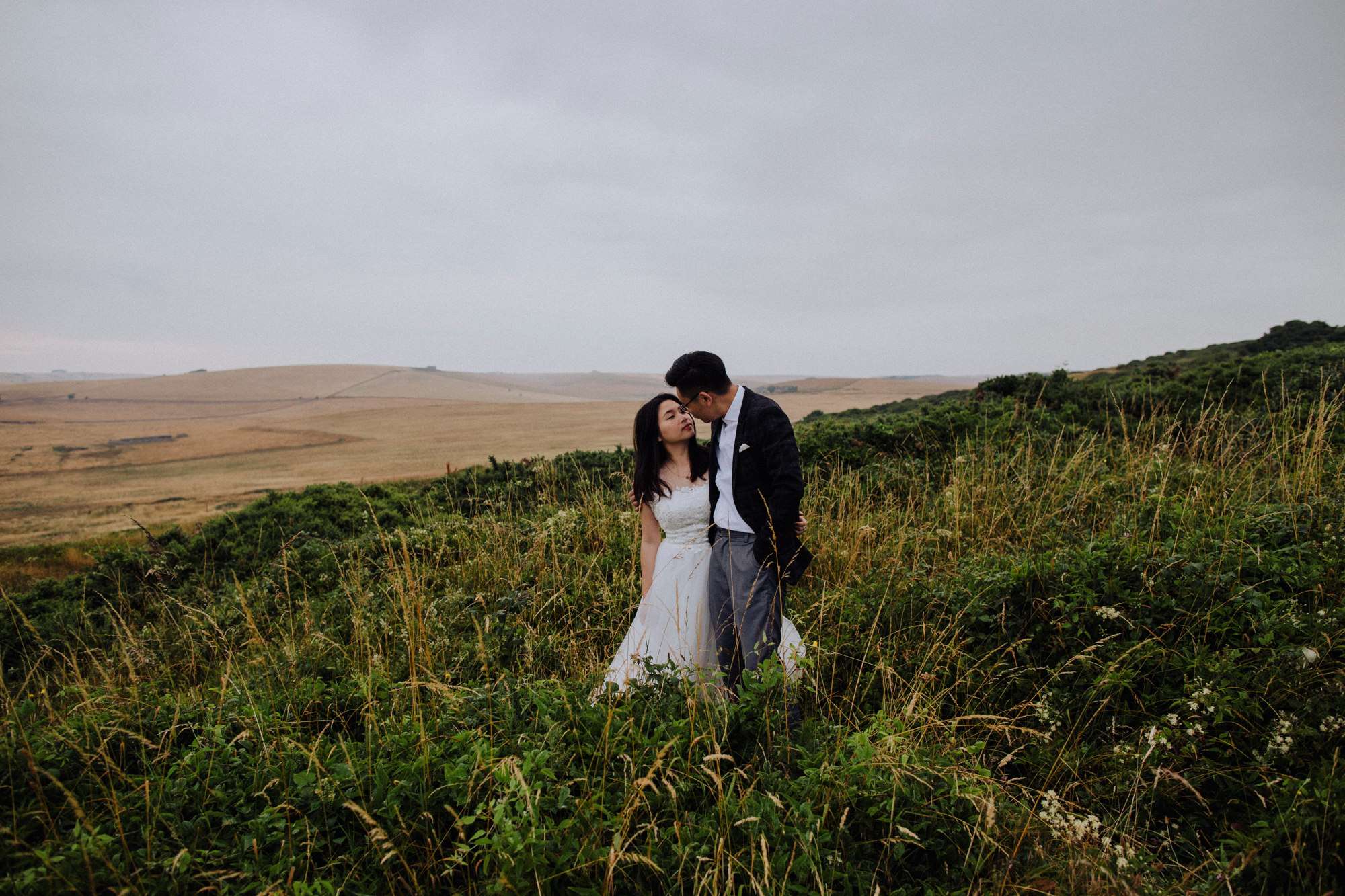 After that, they jumped in the car to drive to the heavenly Seven Sisters Cliffs for some more photos. Anna changed into her Lace Bridal dress in the public loos and touched up her lippy out of the car boot before throwing on a denim jacket and exploring the cliffs. I love Manon’s dreamy perspective and the blurry shots she’s used, making Anna and Alex look like the romantic protagonists of a Wes Anderson film. All the heart eyes!