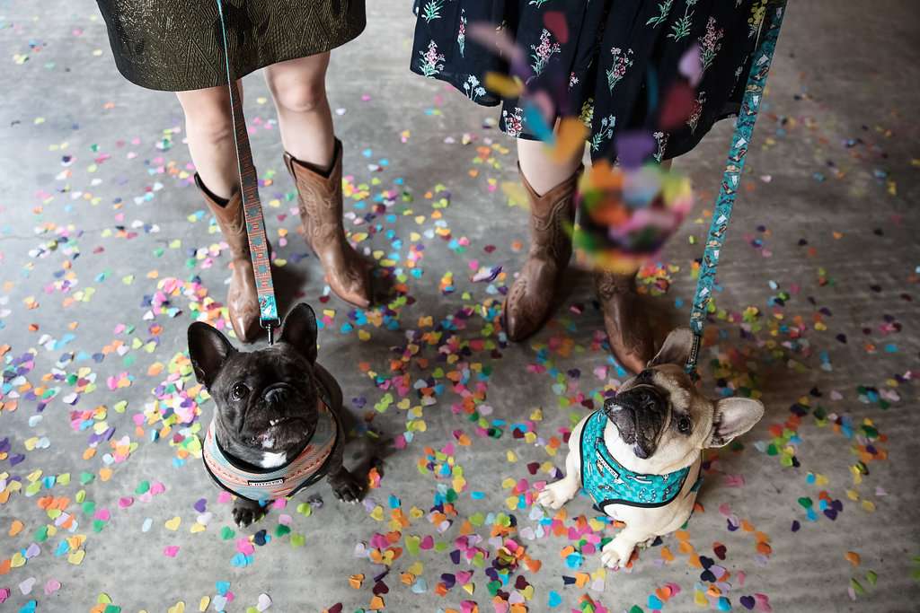 “I think the one thing that everyone says about our wedding was how personal it was to us”, they concluded. “We decorated the venue with curios from our own house, and pictures and photos of loved ones no longer with us. We also had wedding photos of our parents and grandparents. We didn’t have all the ‘traditional’ elements of a wedding – we didn’t have cake cutting or speeches or a first dance. We also had the cutest ring bearers our fur-babies Diego and Tallulah!”