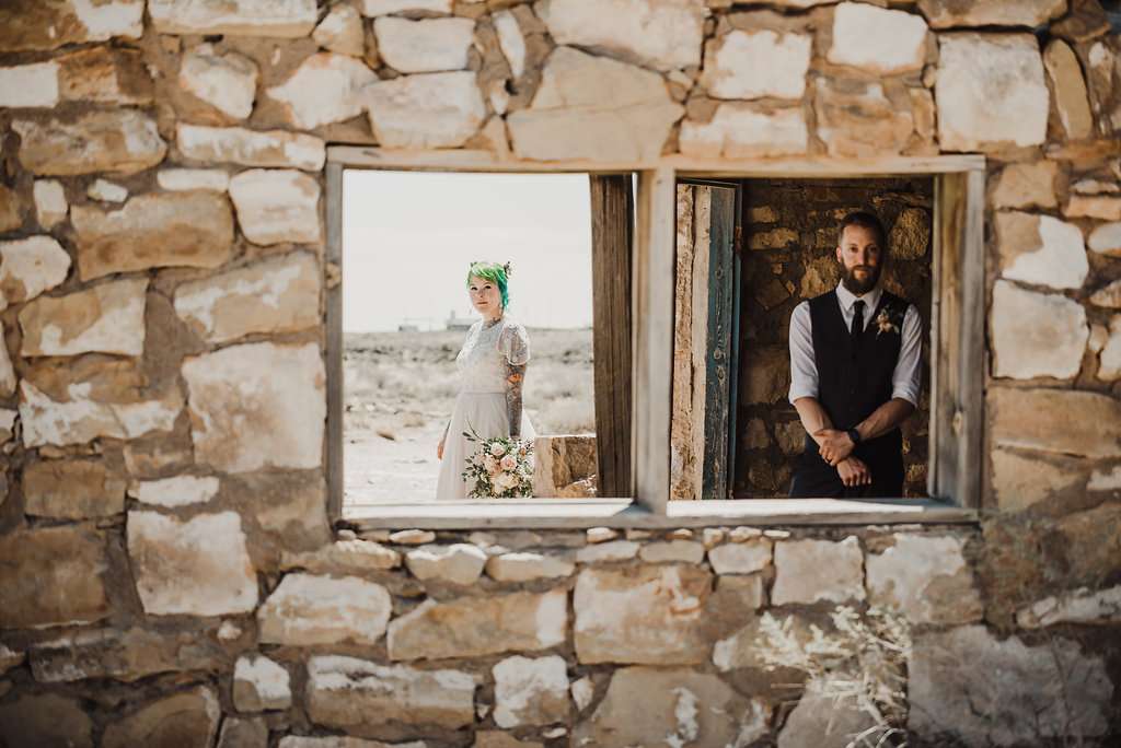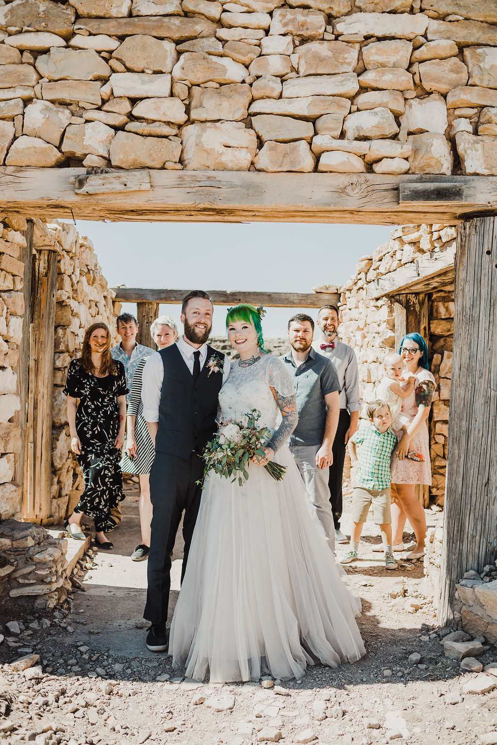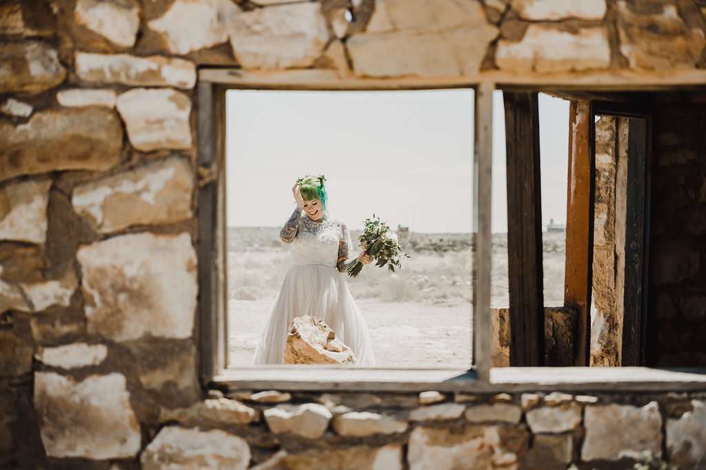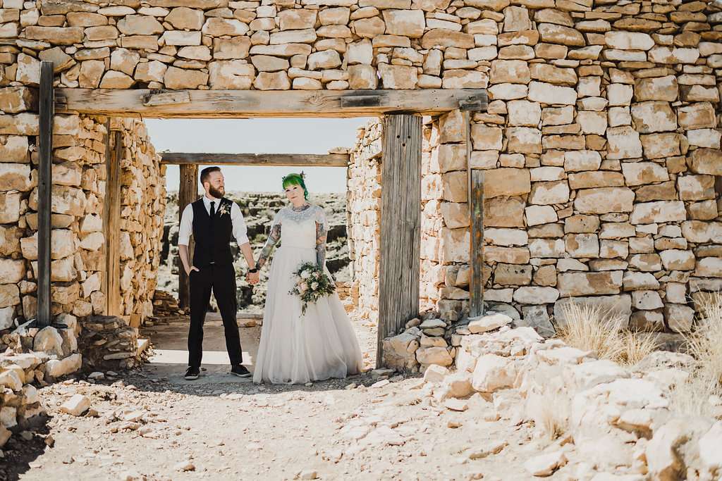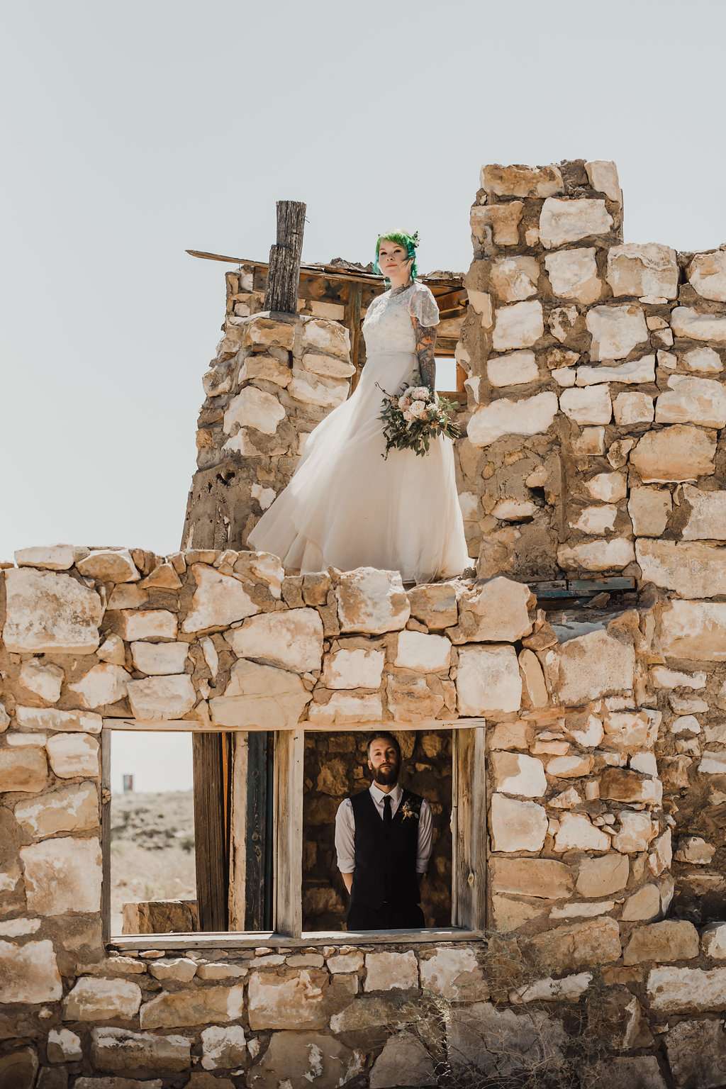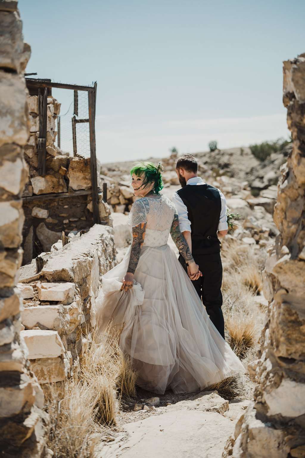 They were married in an actual ghost town, Two Guns, in Arizona with just a few select family members and friends as witnesses. “Our wedding was inspired by our love of travel”, Kaylah told us. “Jeff and I have been taking trips to the desert since the year we met. It’s become a huge piece of our relationship and we both kind of credit that first trip together for making us work. We learned so much about each other and really fell in love then. Our road trips bring us so much joy and are such a huge highlight to us that we could not think of anything more ~us~ than to get married in the desert.”