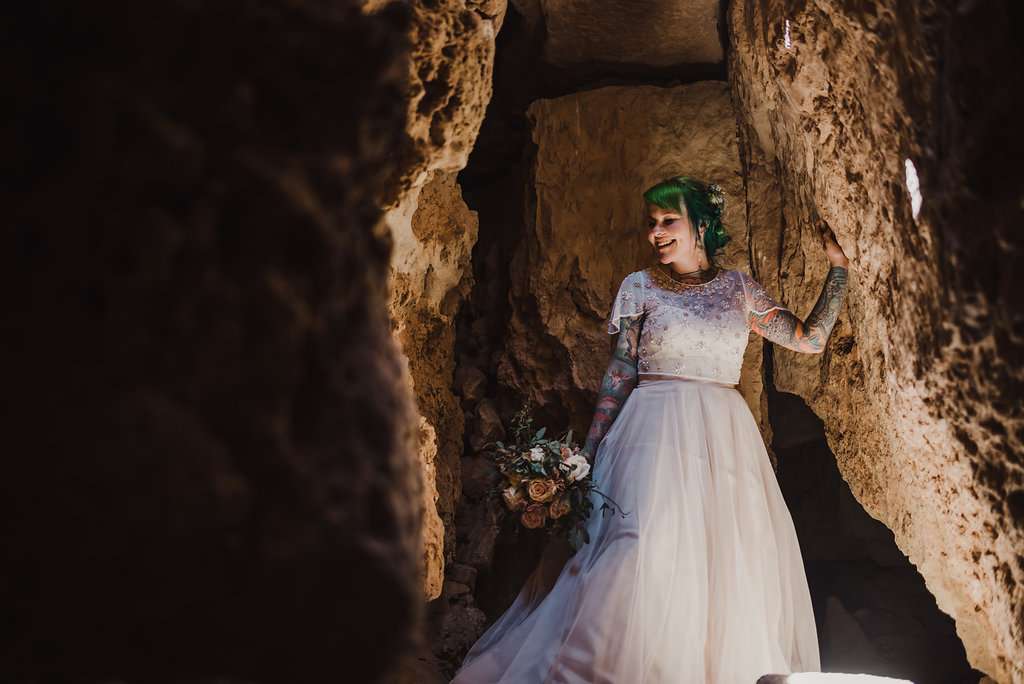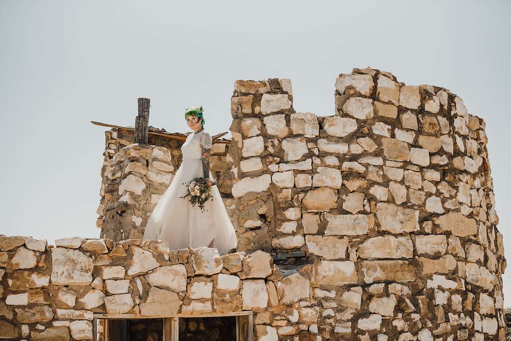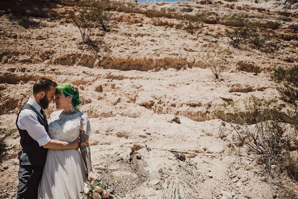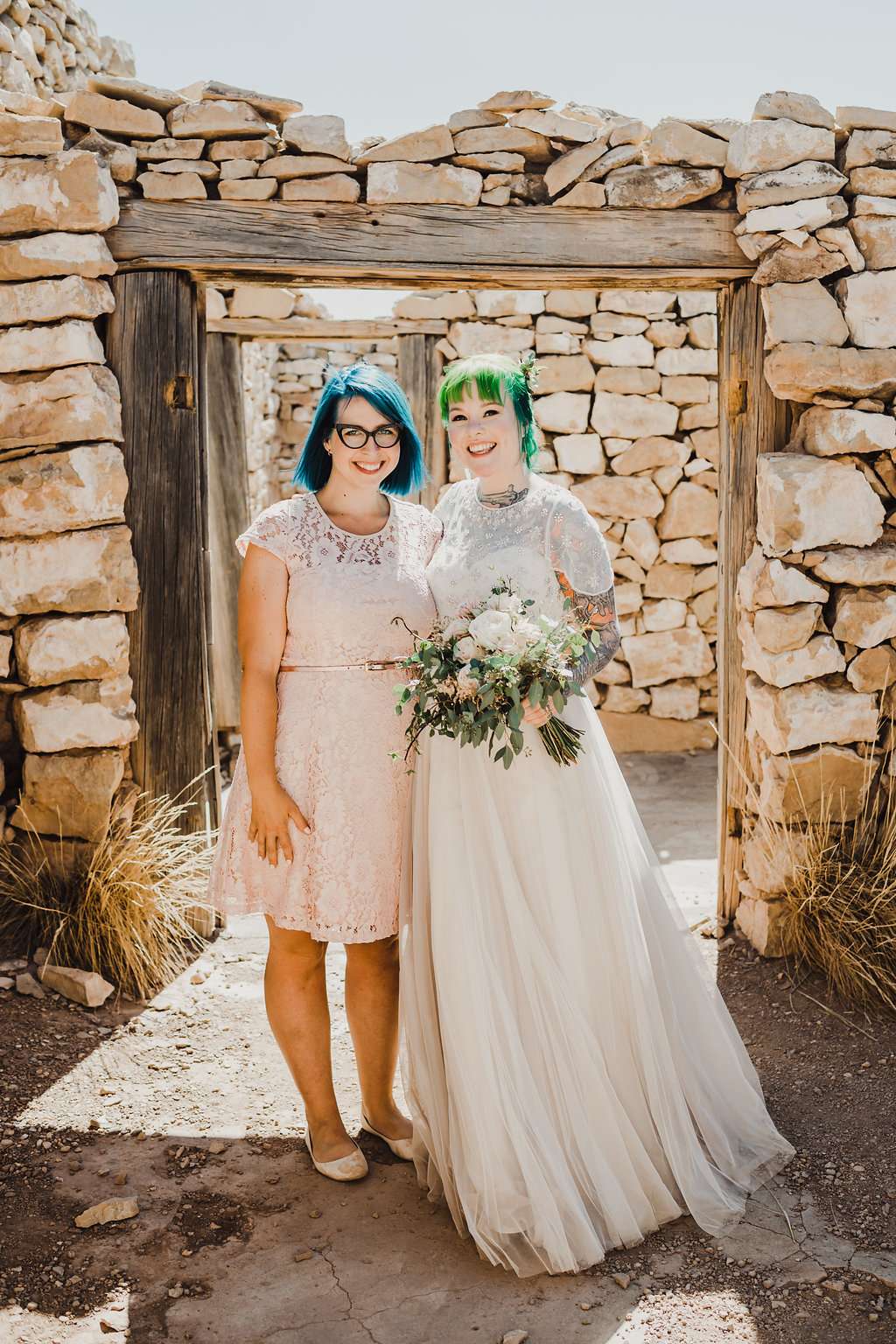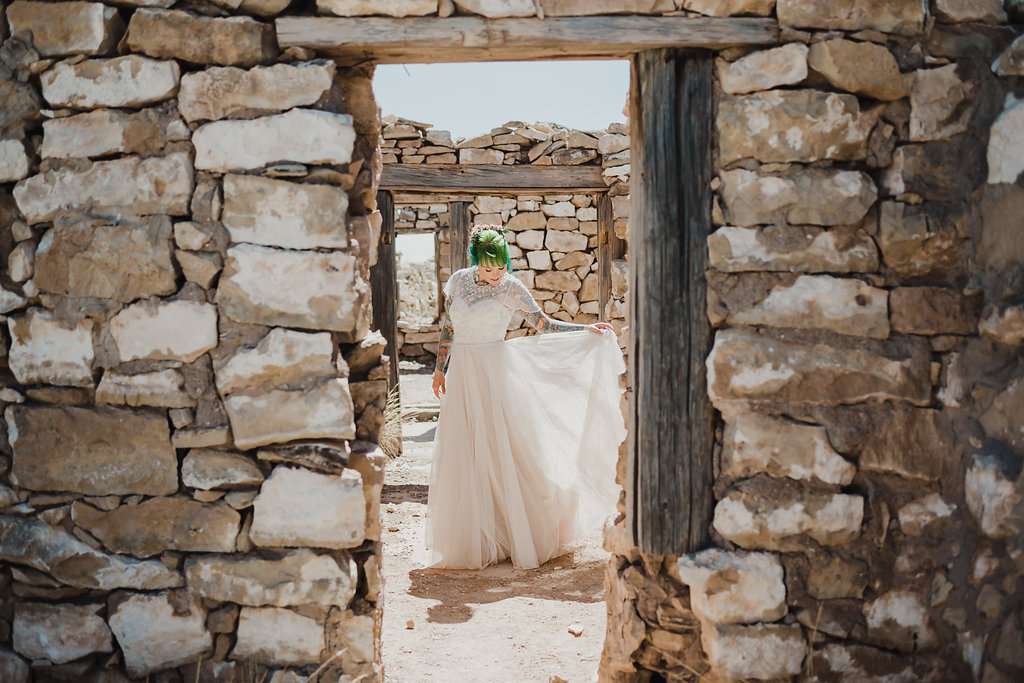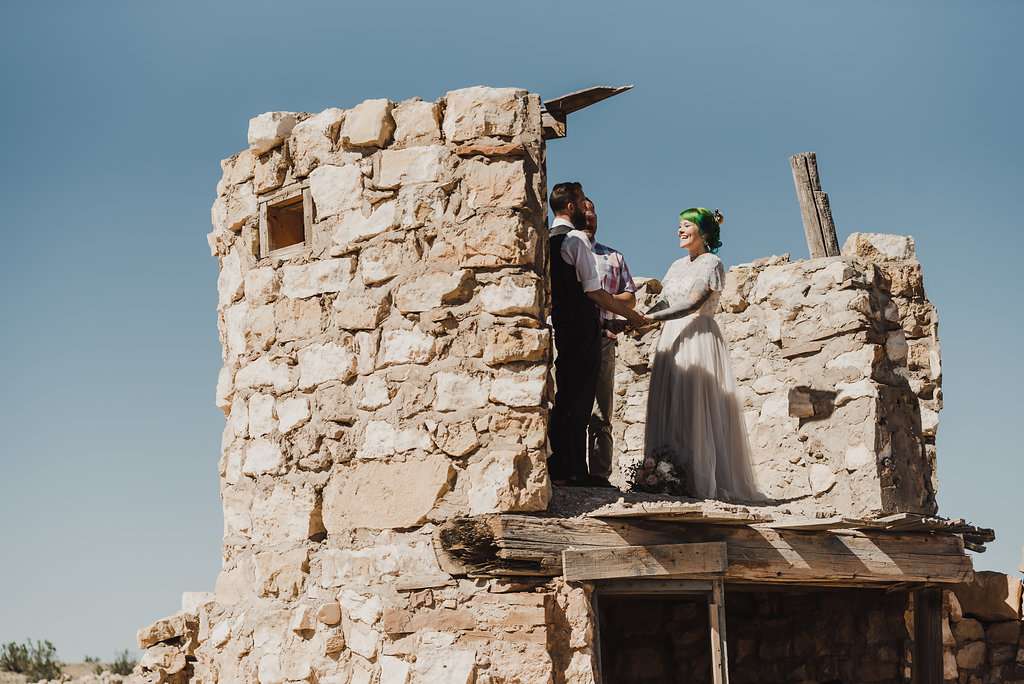 They were married in an actual ghost town, Two Guns, in Arizona with just a few select family members and friends as witnesses. “Our wedding was inspired by our love of travel”, Kaylah told us. “Jeff and I have been taking trips to the desert since the year we met. It’s become a huge piece of our relationship and we both kind of credit that first trip together for making us work. We learned so much about each other and really fell in love then. Our road trips bring us so much joy and are such a huge highlight to us that we could not think of anything more ~us~ than to get married in the desert.”