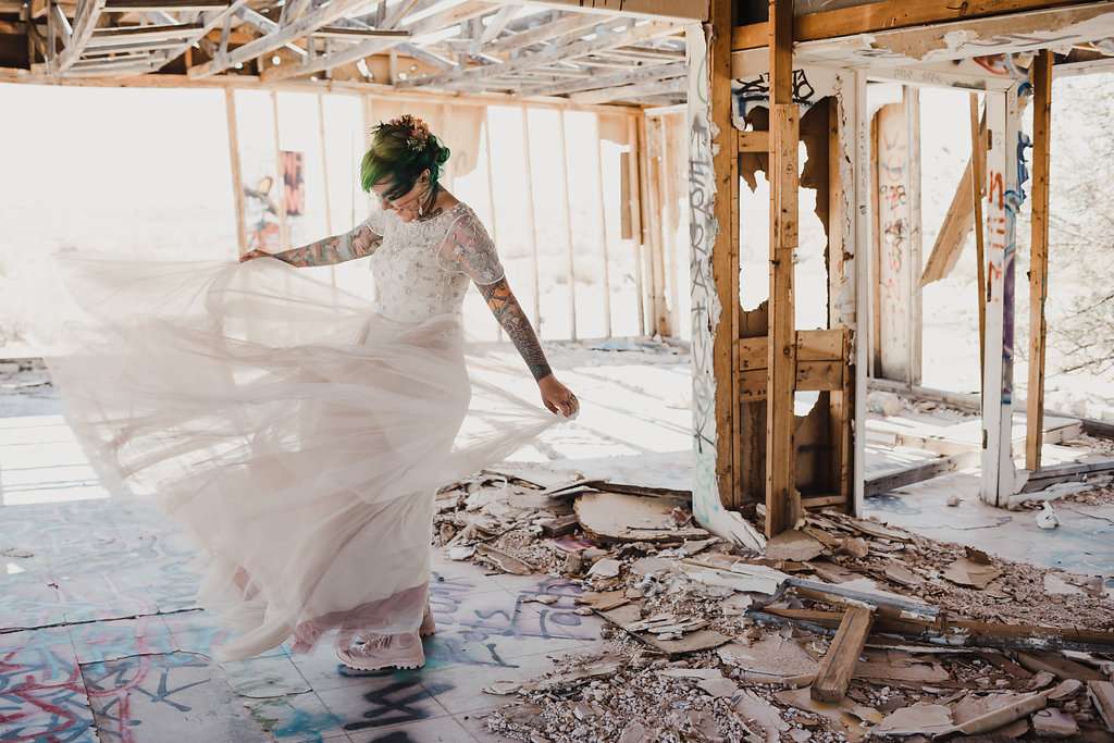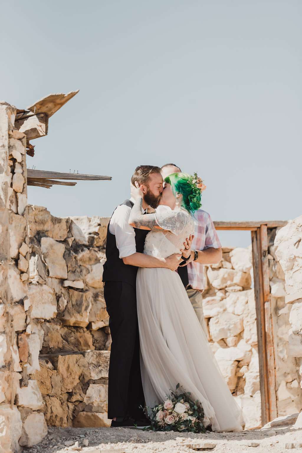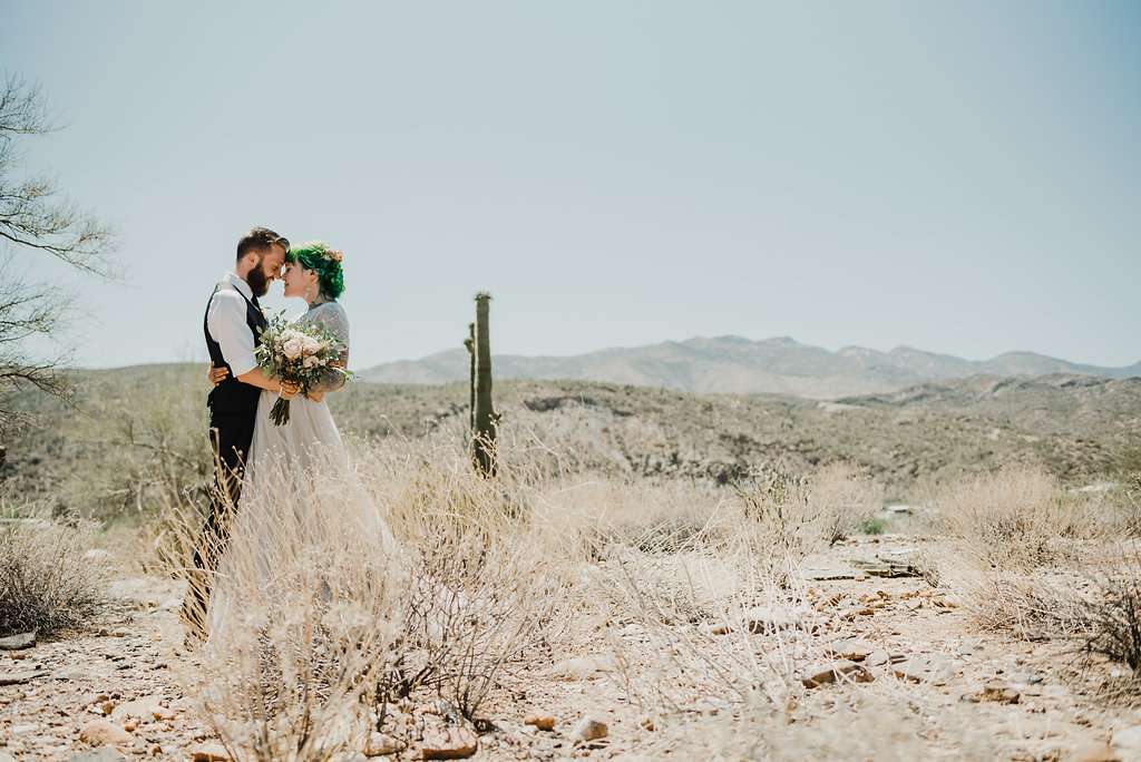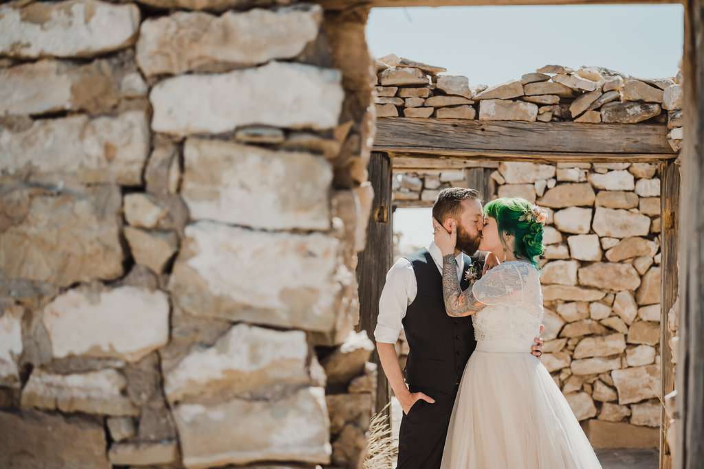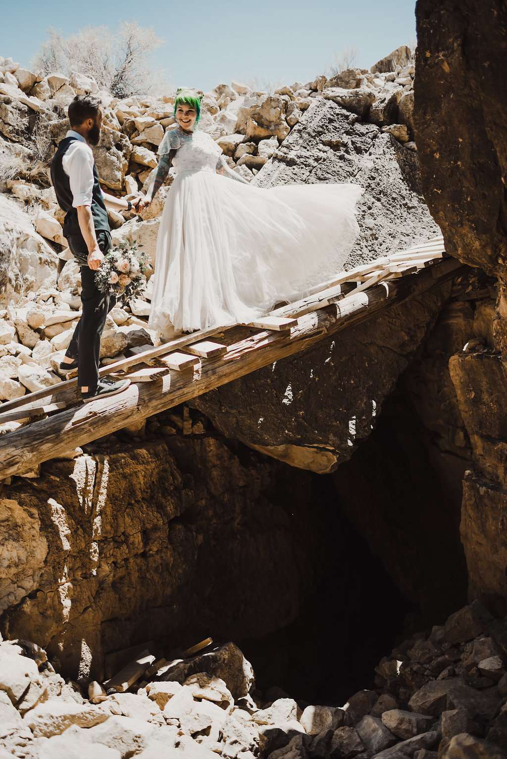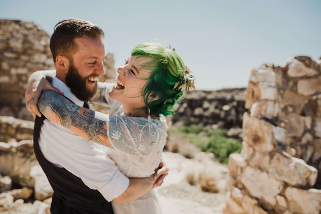 They were married in an actual ghost town, Two Guns, in Arizona with just a few select family members and friends as witnesses. “Our wedding was inspired by our love of travel”, Kaylah told us. “Jeff and I have been taking trips to the desert since the year we met. It’s become a huge piece of our relationship and we both kind of credit that first trip together for making us work. We learned so much about each other and really fell in love then. Our road trips bring us so much joy and are such a huge highlight to us that we could not think of anything more ~us~ than to get married in the desert.”