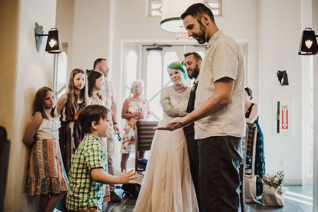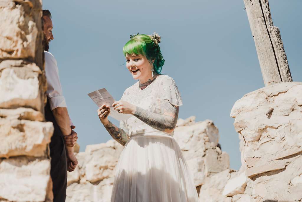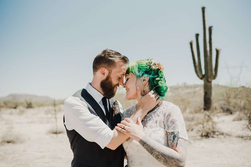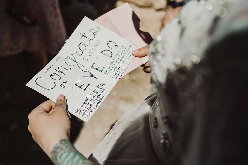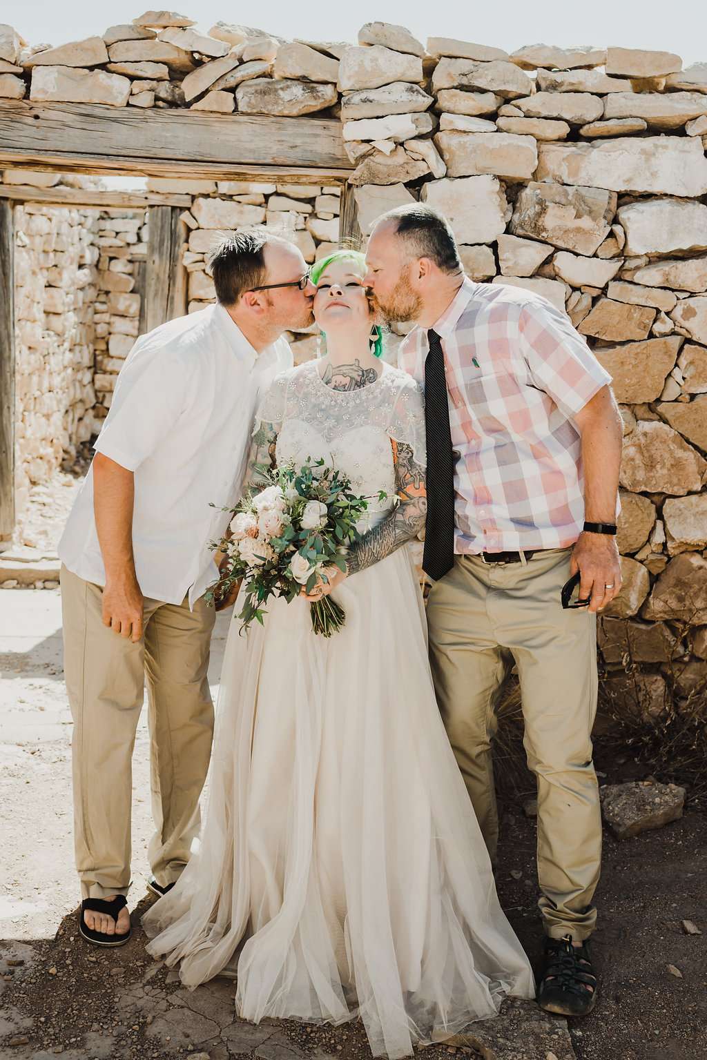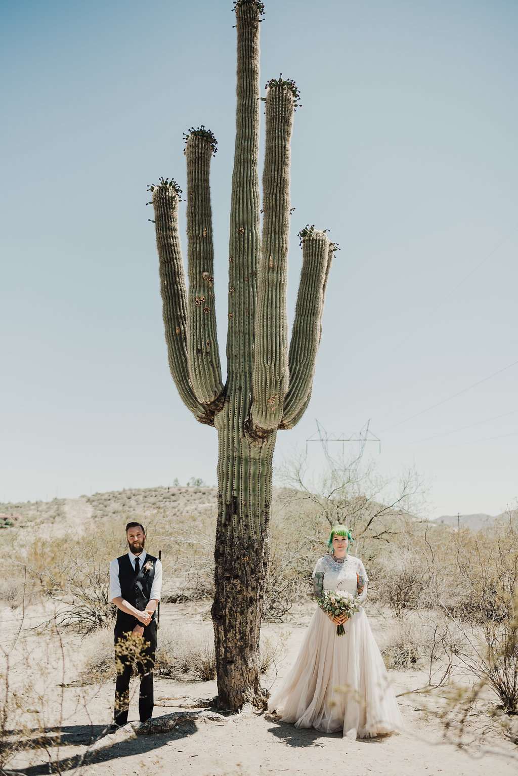 They were married in an actual ghost town, Two Guns, in Arizona with just a few select family members and friends as witnesses. “Our wedding was inspired by our love of travel”, Kaylah told us. “Jeff and I have been taking trips to the desert since the year we met. It’s become a huge piece of our relationship and we both kind of credit that first trip together for making us work. We learned so much about each other and really fell in love then. Our road trips bring us so much joy and are such a huge highlight to us that we could not think of anything more ~us~ than to get married in the desert.”