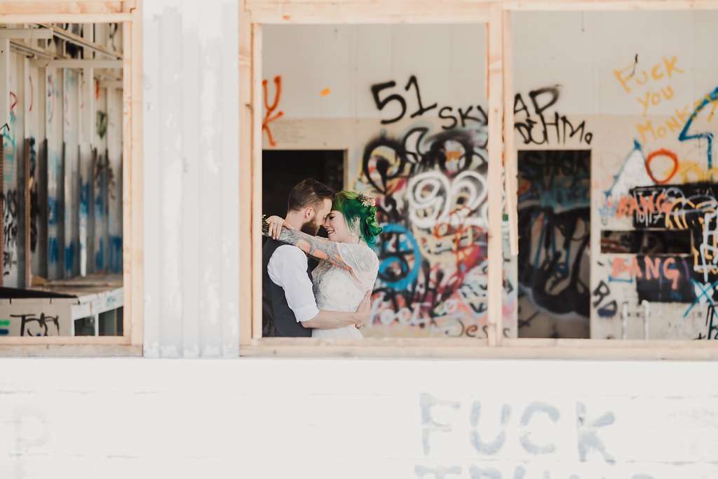 I don’t know about you, but for me one of the greatest things about stalking people on the internet is when they get married and I can all fall in love with them a little bit more! I’ve been virtually following Kaylah, aka The Dainty Squid, online for years (we share an obvious mutual affinity with colourful hair!) so when I saw her June wedding to long-term partner Jeff I was thrilled. I poured over their beautiful images for what felt like hours, soaking up every last beautiful drop. So, when their photographer Madeline Barr submitted them for us to publish I obviously had to say yes, and did so in about 5 seconds flat.