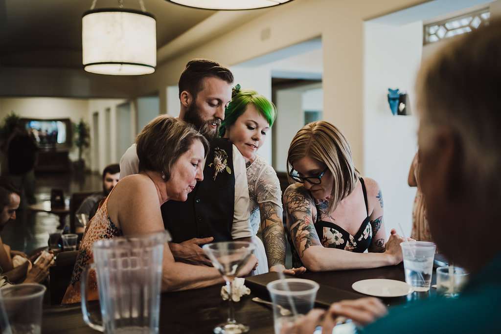 Since they didn’t book a traditional venue, rent anything or really purchase anything aside from the bride’s BHLDN wedding dress, their biggest expense was their photographer, but she was absolutely worth every single penny! After the photo session they all headed over to The Wigwam for a low key reception with their nearest and dearest. “I love that we didn’t plan too much”, she concluded. “We mostly spent a lot of time in the run up talking about how excited we were. We didn’t finalise some of the details, like where specifically we’d exchange vows, until the day before. We were able to visit the ghost town with everyone (their first time seeing it other than in photographs) and pick out a spot together. It’s one of my favourite memories.”