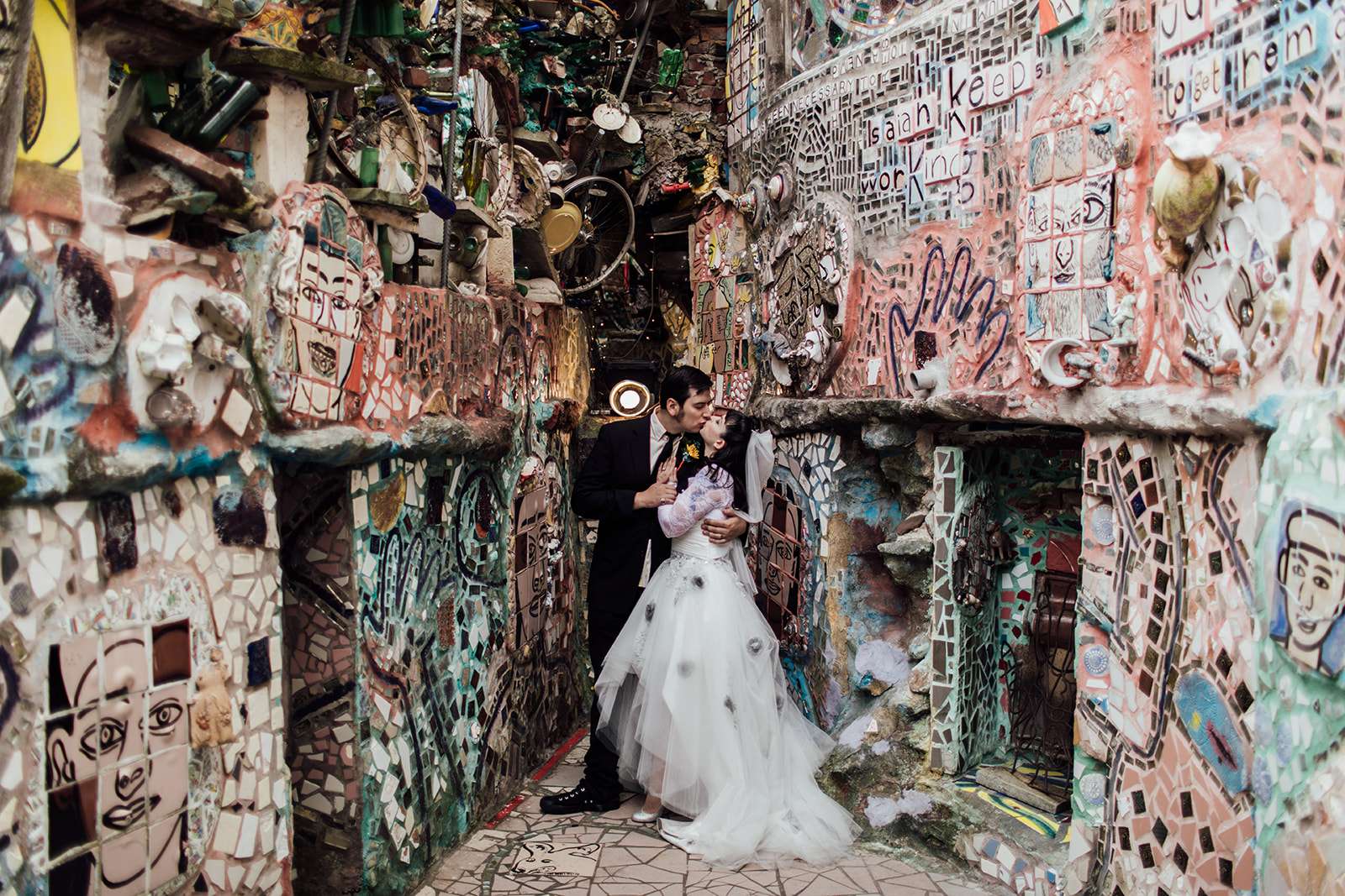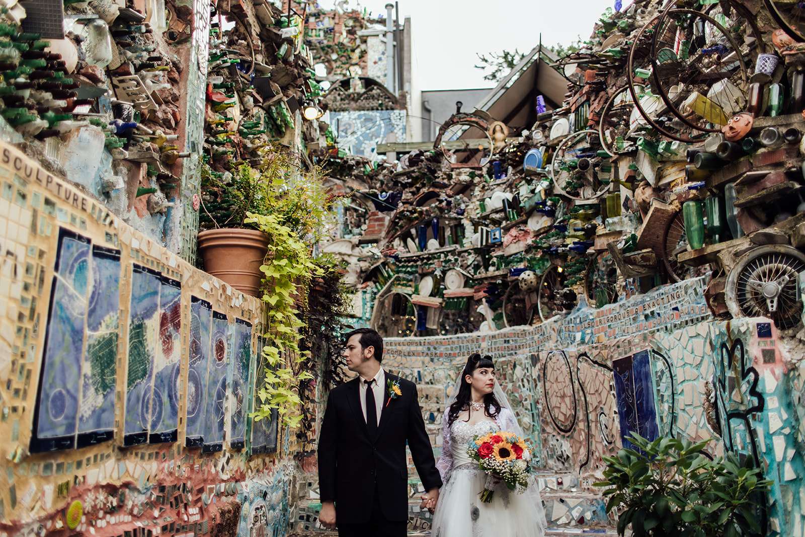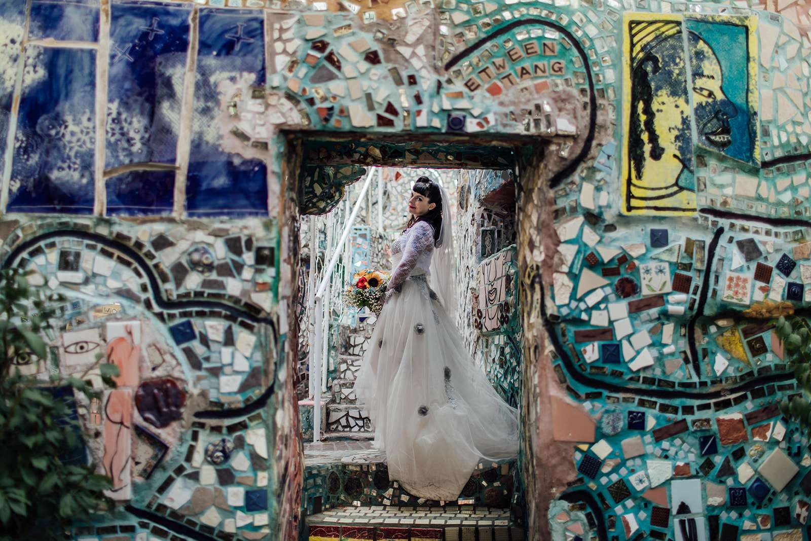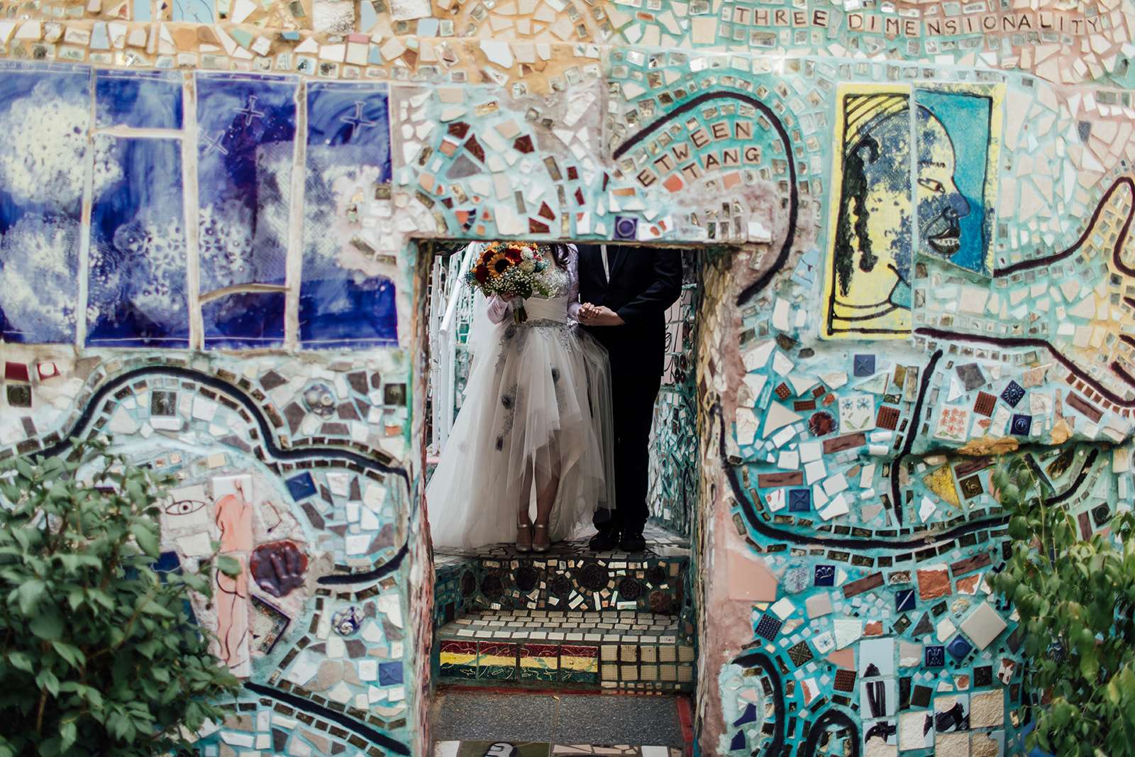 Are you ready for a little touch of wedding magic? Because Carrie and Bill wedding held at Philadelphia’s Magic Gardens is about to bring it! This has got to be one of Philly’s coolest and most unique venues, what an incredible spot to say “we do!” It is a non-profit organisation, folk art environment and gallery space that you can hire to get married in! So cool right?