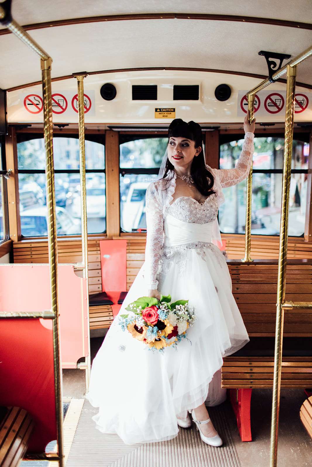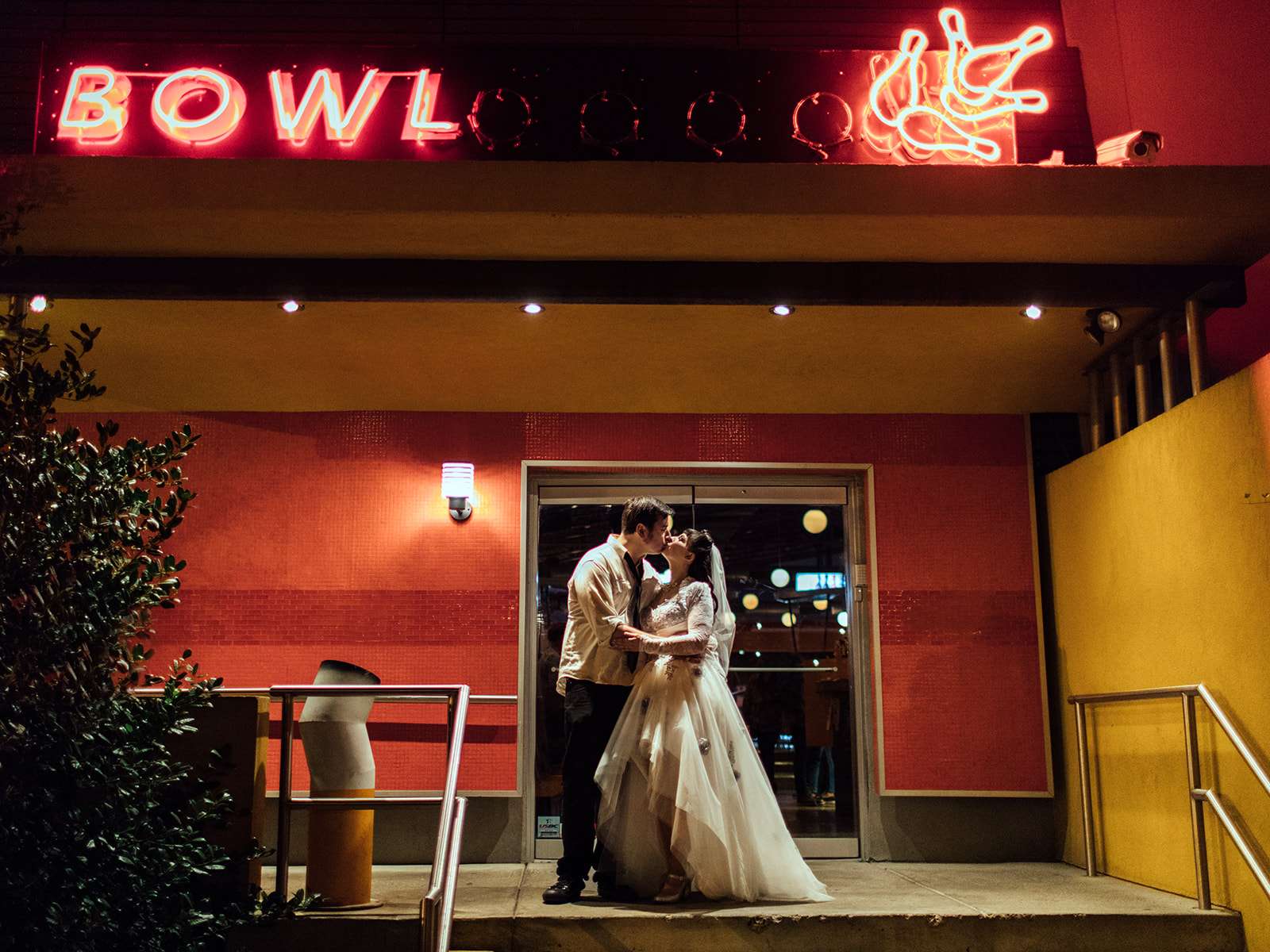 “The wedding theme was very old school with a Back to the Future mix of 50s and 80s. Our first dance song was Earth Angel. The colours we used were aqua, red and yellow. Everything just kinda fell into place, we had a two year engagement with lot of time to plan. My husband and I looked into a lot of venues because that it the starting point for everything and after many venue searches I found North Bowl and fell in love with it! My husband Bill is into punk rock, concerts, metal and blues so we felt it fit with our love of urban vintage culture.”