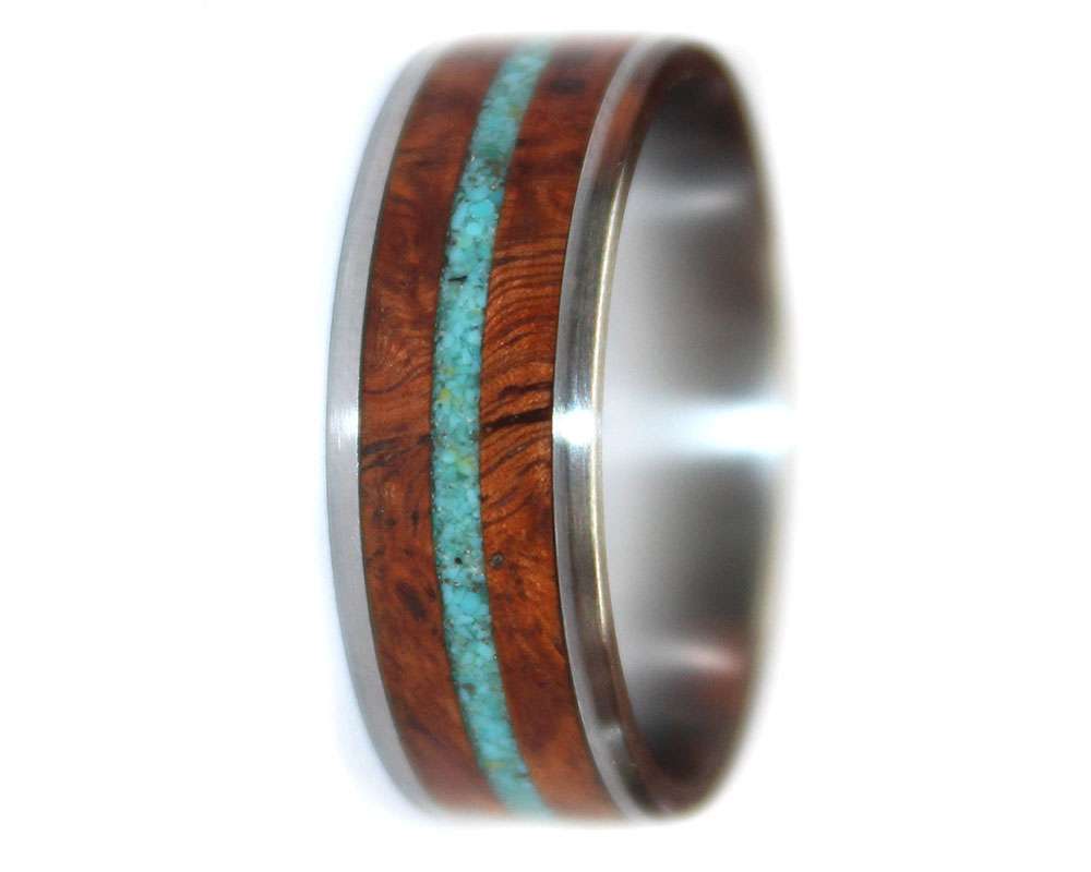Honduran Rosewood Turquoise Wooden Ring Bentwood