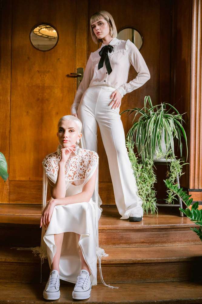This shoot, as featured in Rock n Roll Bride magazine issue 24, was created by me and my team for the fearless bride who isn’t afraid to push bridal fashion boundaries. We wanted to play with gender neutral tailoring and pair outfits with Converse or a pair of brogues to create an effortless and minimalist look.