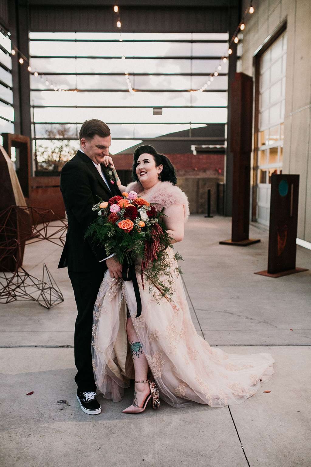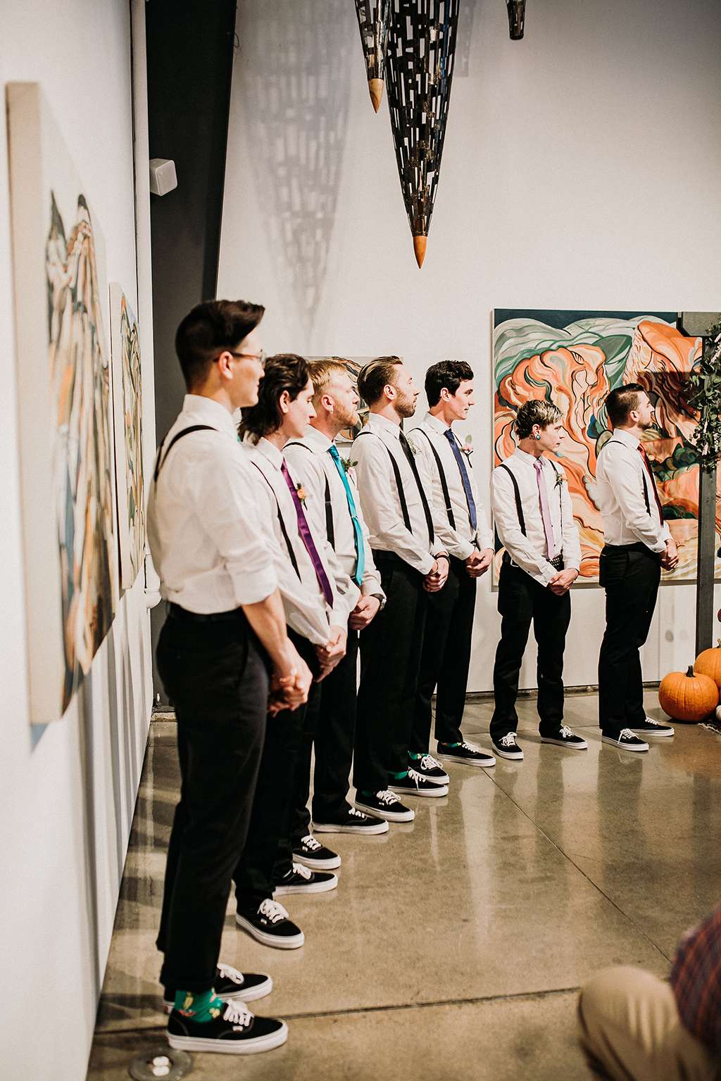 As their friends and family are so unique and alternative in every day life, they had no problems with doing things a little differently for their day – they knew they had their support, no matter what they wanted to do! They skipped a sit down dinner, instead opting for a giant taco bar. They served Voodoo Donuts instead of cake. The bridesmaids were given a colour and told they could pick whatever outfit they wanted in that colour. The groom and groomsmen all wore Vans trainers.