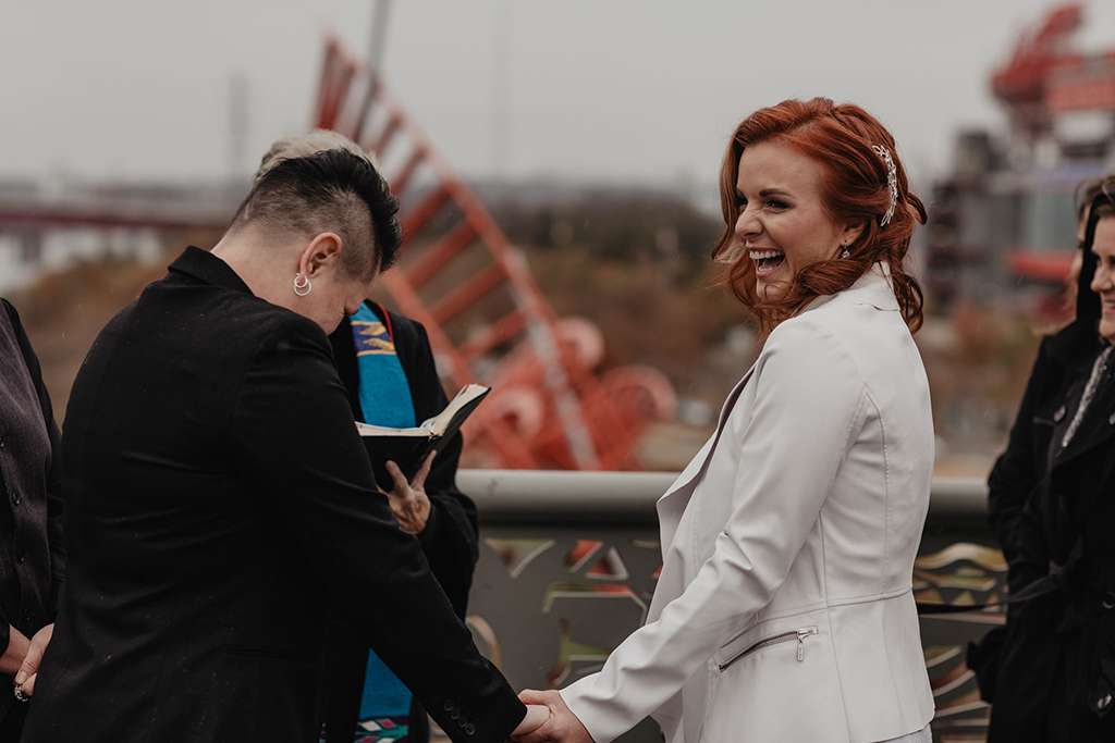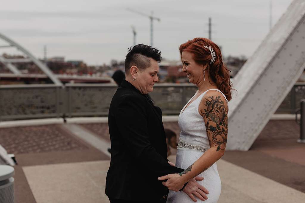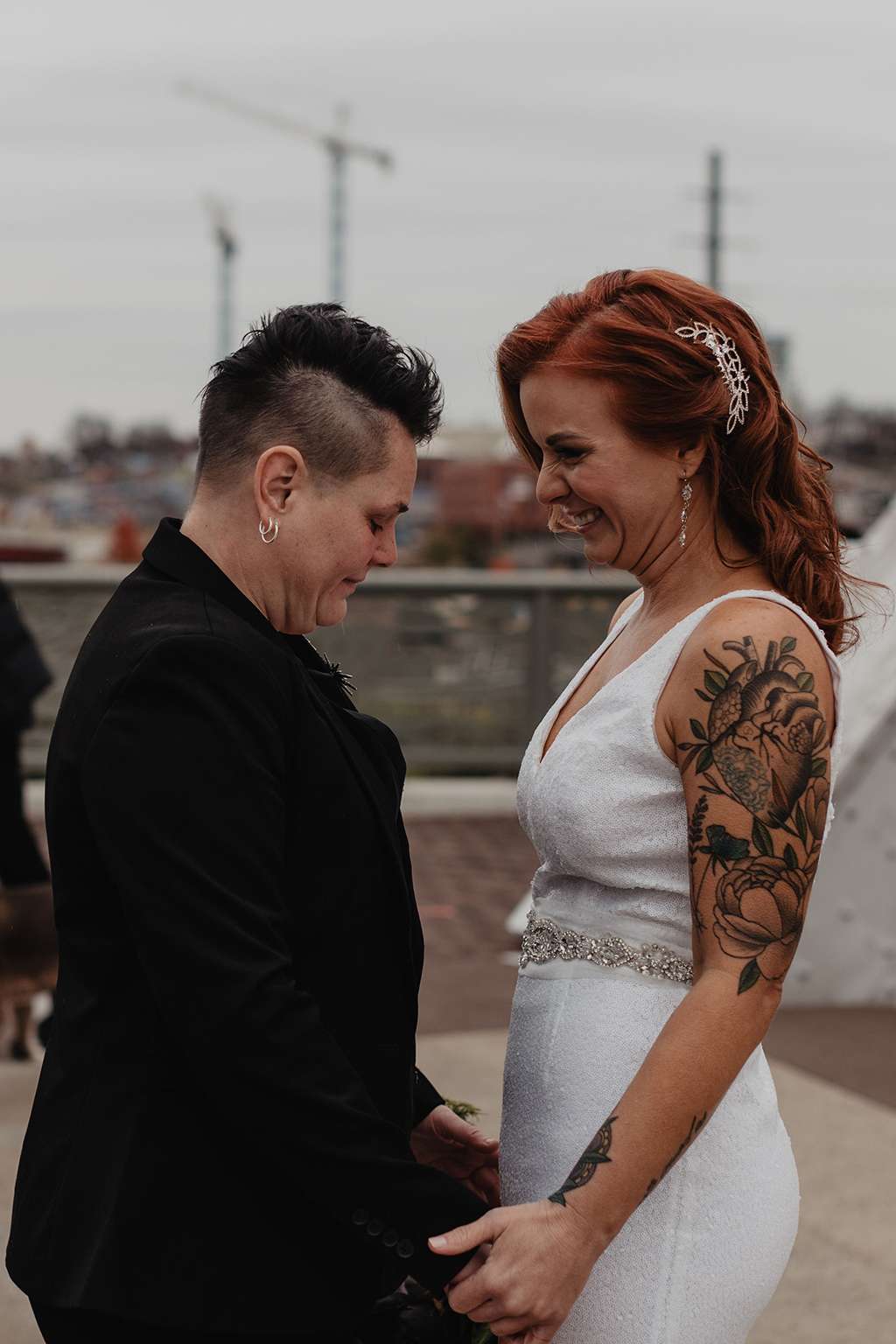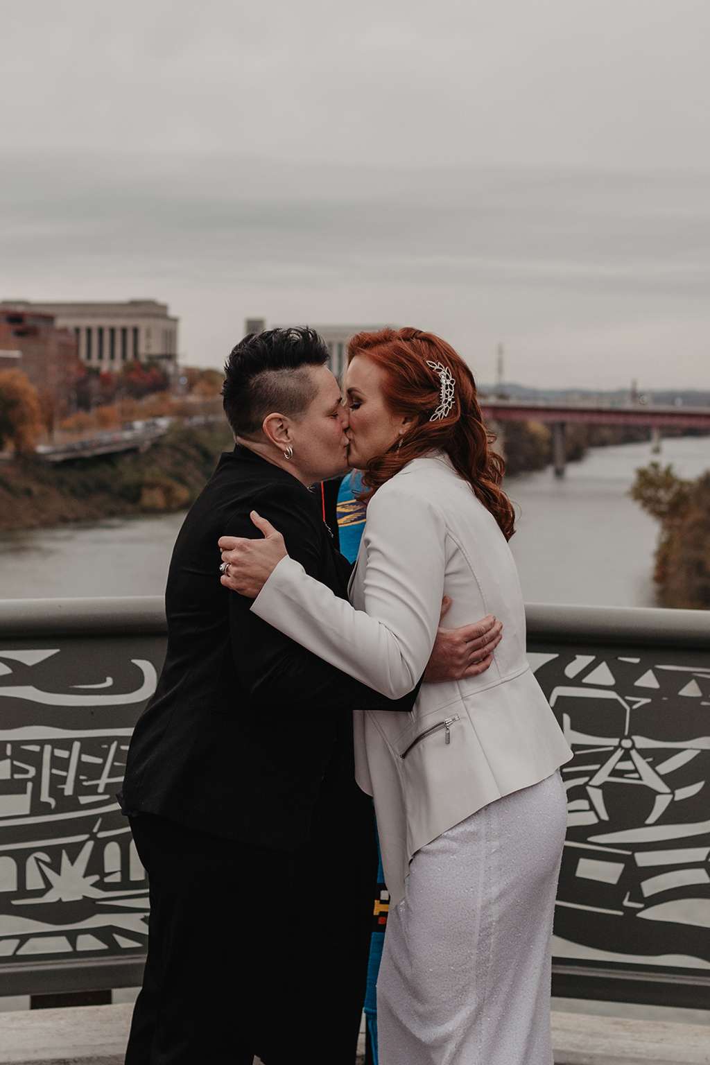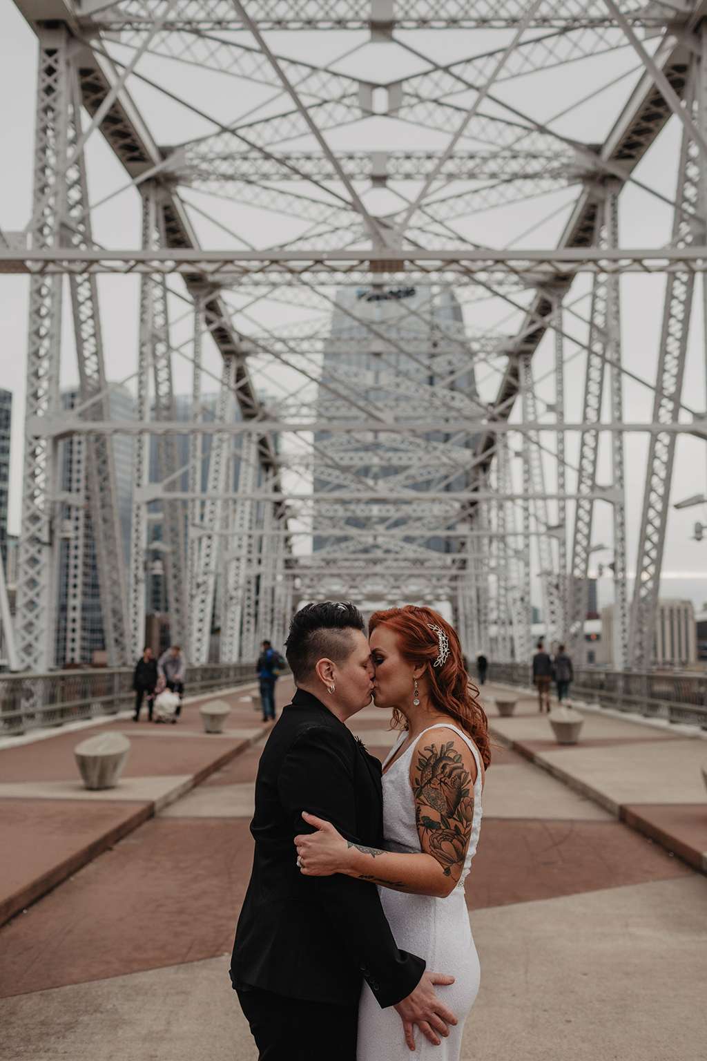 Instead of hiring a venue for their ceremony, they took a chance and rocked up to the John Seigenthaler Pedestrian Bridge. “We didn’t ask permission or anything, just walked up there and go married! We met each other there and were surrounded by family and friends. We had many onlookers from other people on the bridge, and a boat blew it’s horn for us during the ceremony from the waters below.” After exchanging vows they had written themselves, they attached a love lock to the bridge as a symbol of their unity. “We even kind of liked that it was grey and drizzle, to be honest,” Amy said. “We’ve weathered many storms to be together so it felt like the perfect sign!”