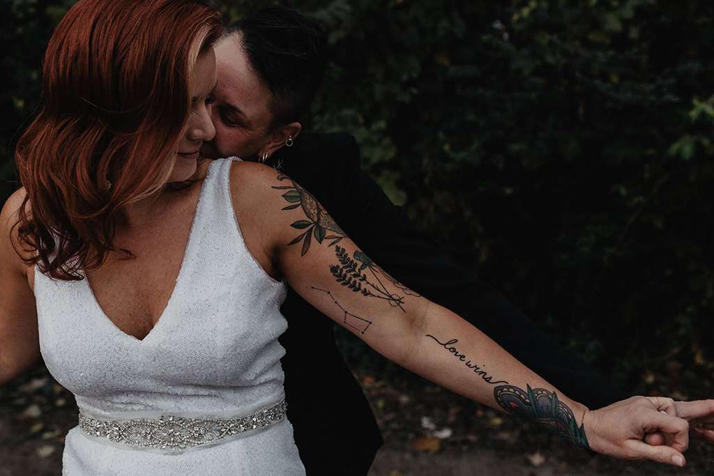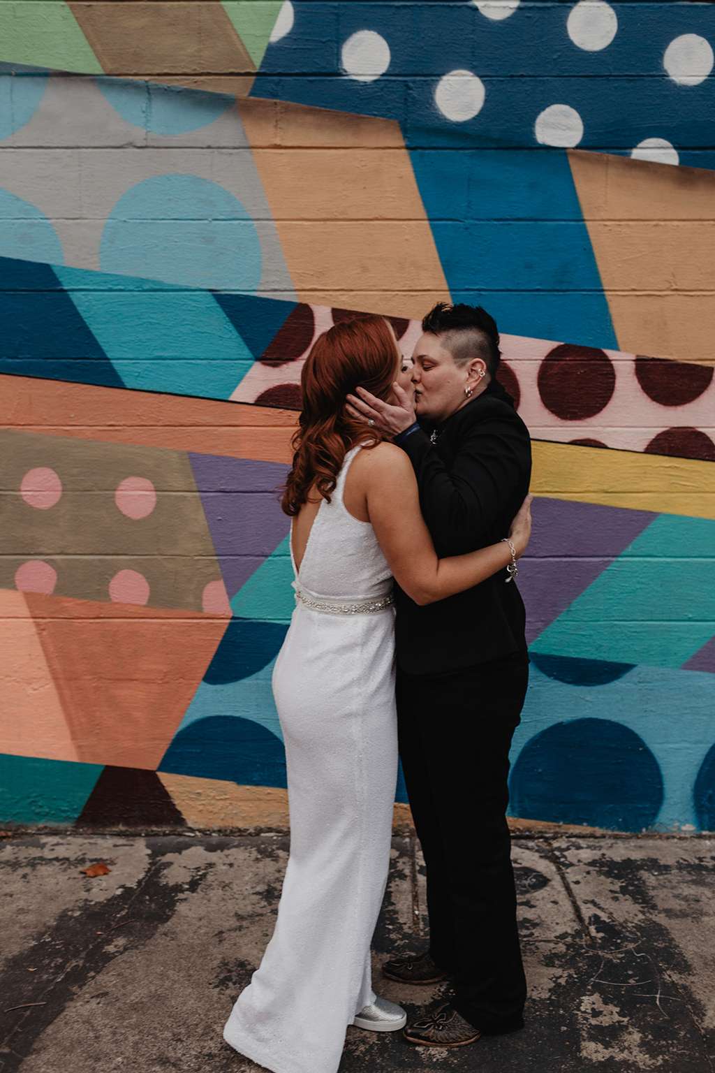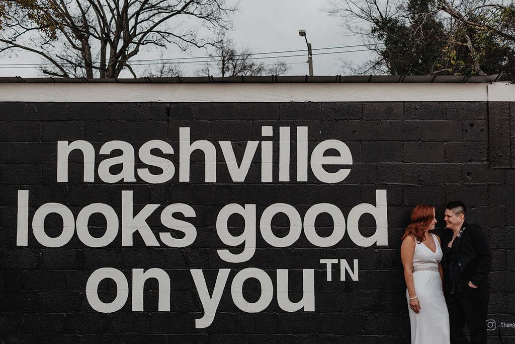 Amy and Sonia don’t have the most conventional beginning to a relationship; they met while Amy was already married (to a man) but knew shortly after being introduced that she’d met her soulmate in Sonia. The couple chose their hometown of Nashville to elope in, simply because there’s nowhere else they’d rather have been.