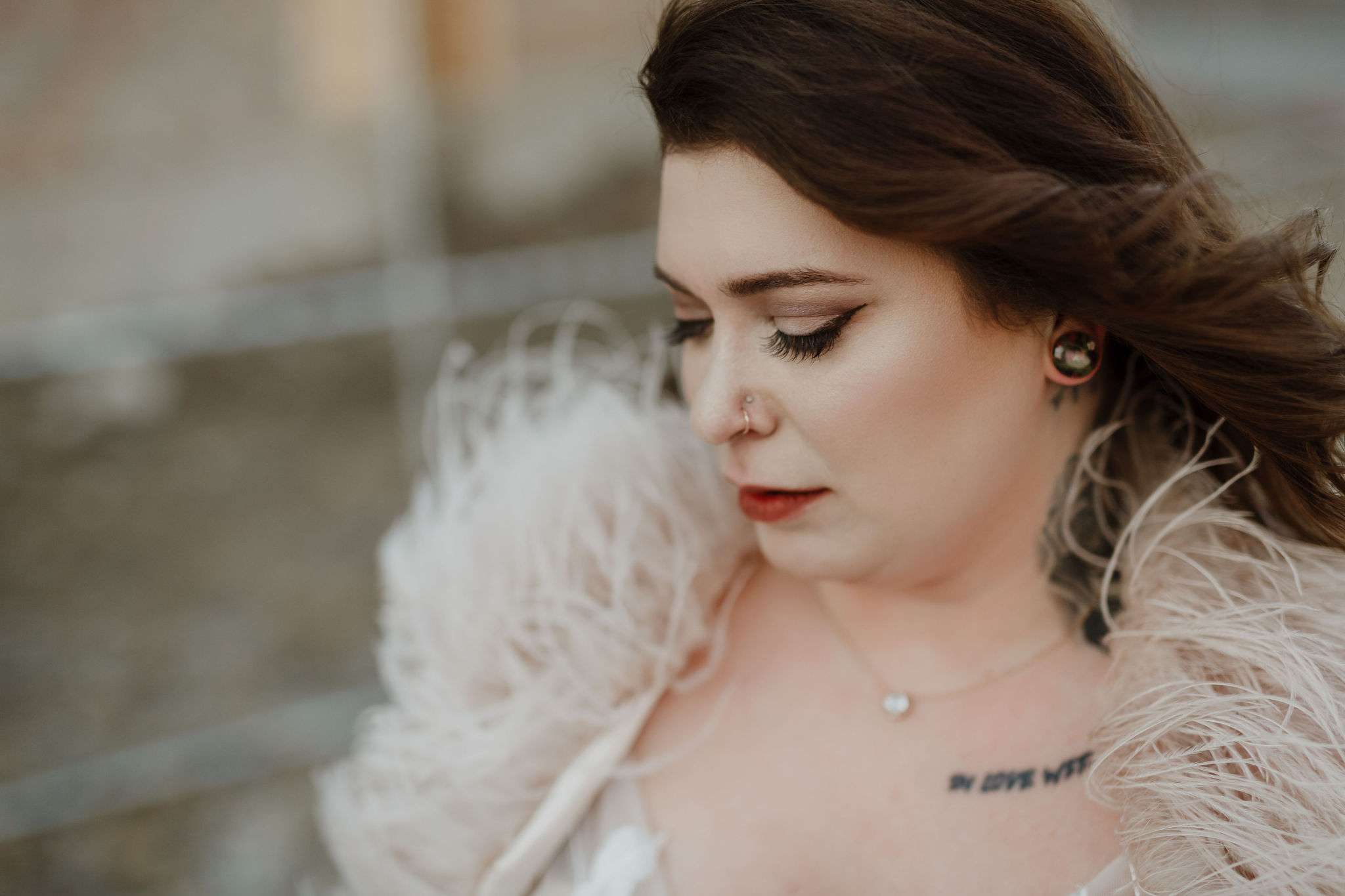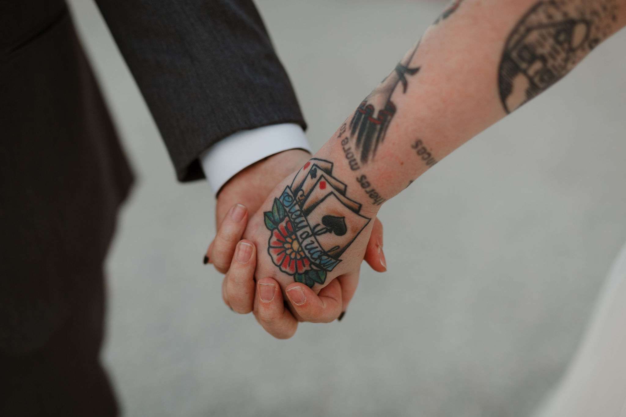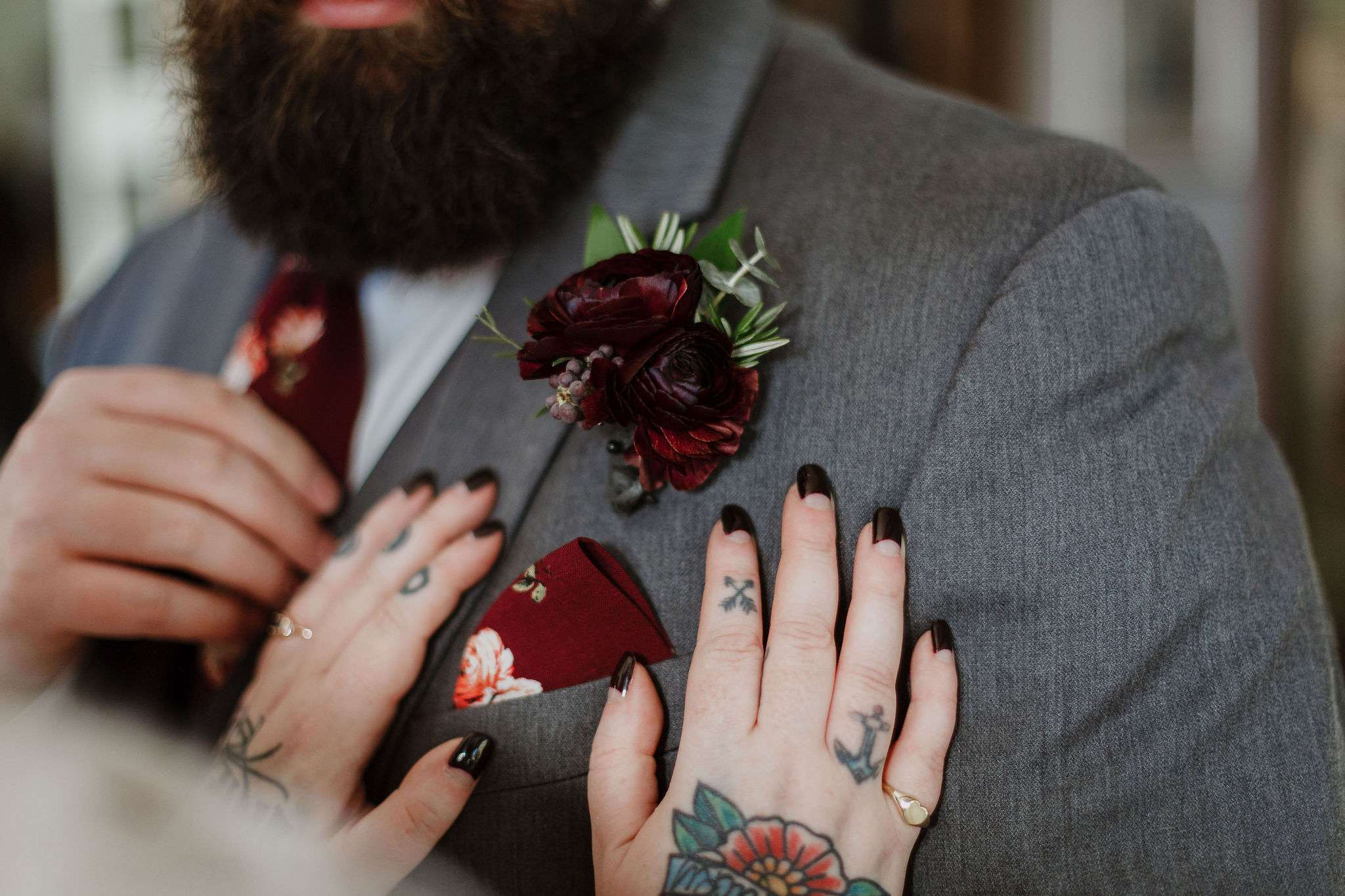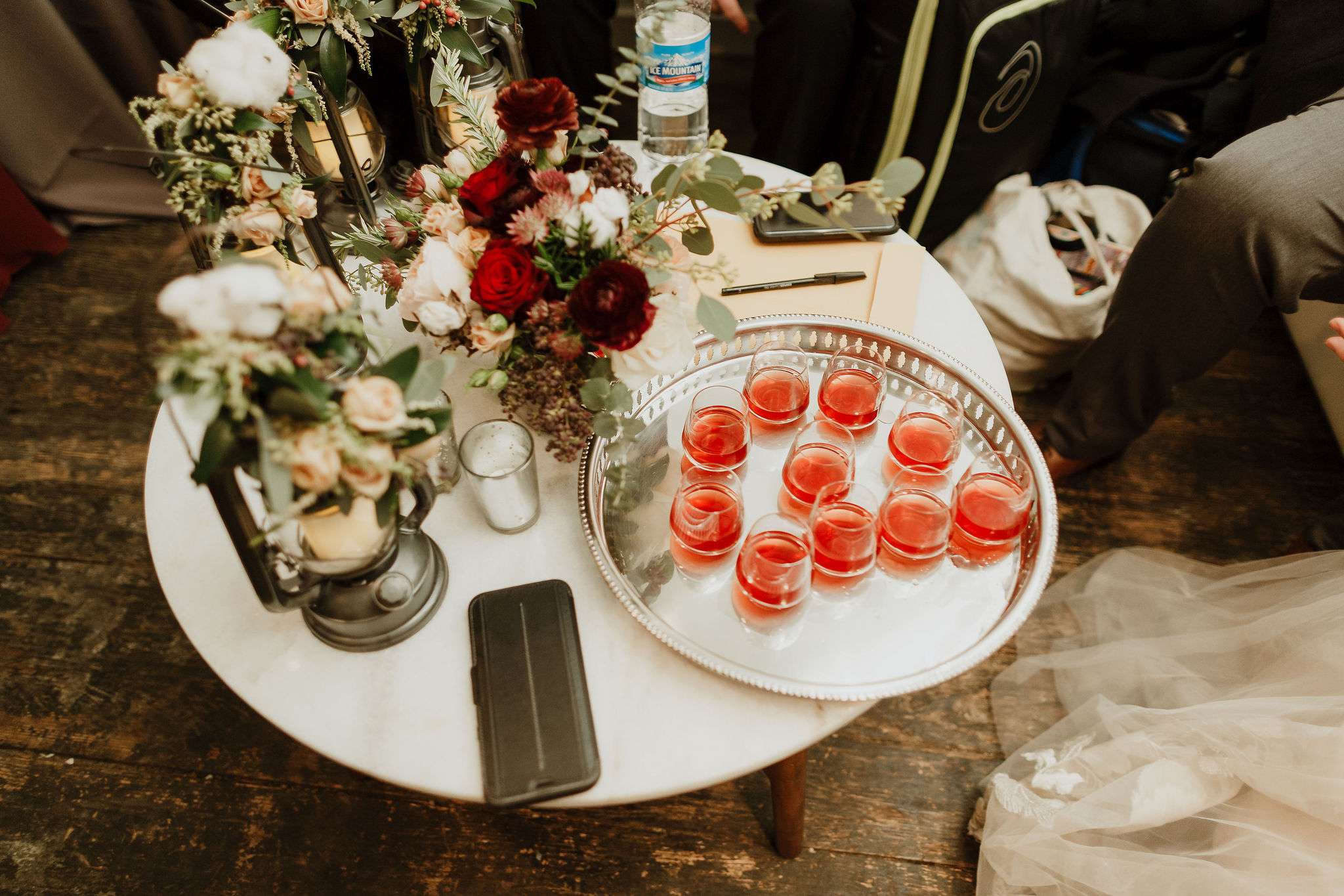 “My favourite part of the day was hearing Justin’s vows for the first time. I had no idea what direction he would go in and was very emotional over his words. Justin’s favourite part was getting to be with each other and with our best friends. Weddings are scary, and no bride or groom should ever have to go through it without the support of each other or their companions. Every time we were able to retreat to our private bridal suite with our friends was a much needed breather, and really helped keep anxiety at bay.”