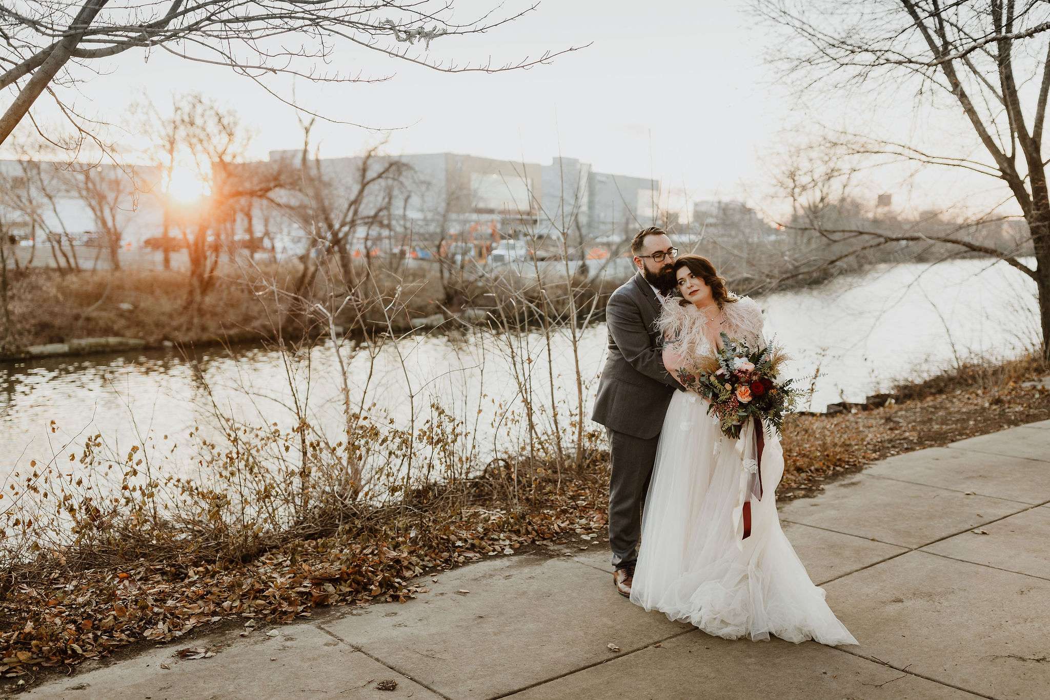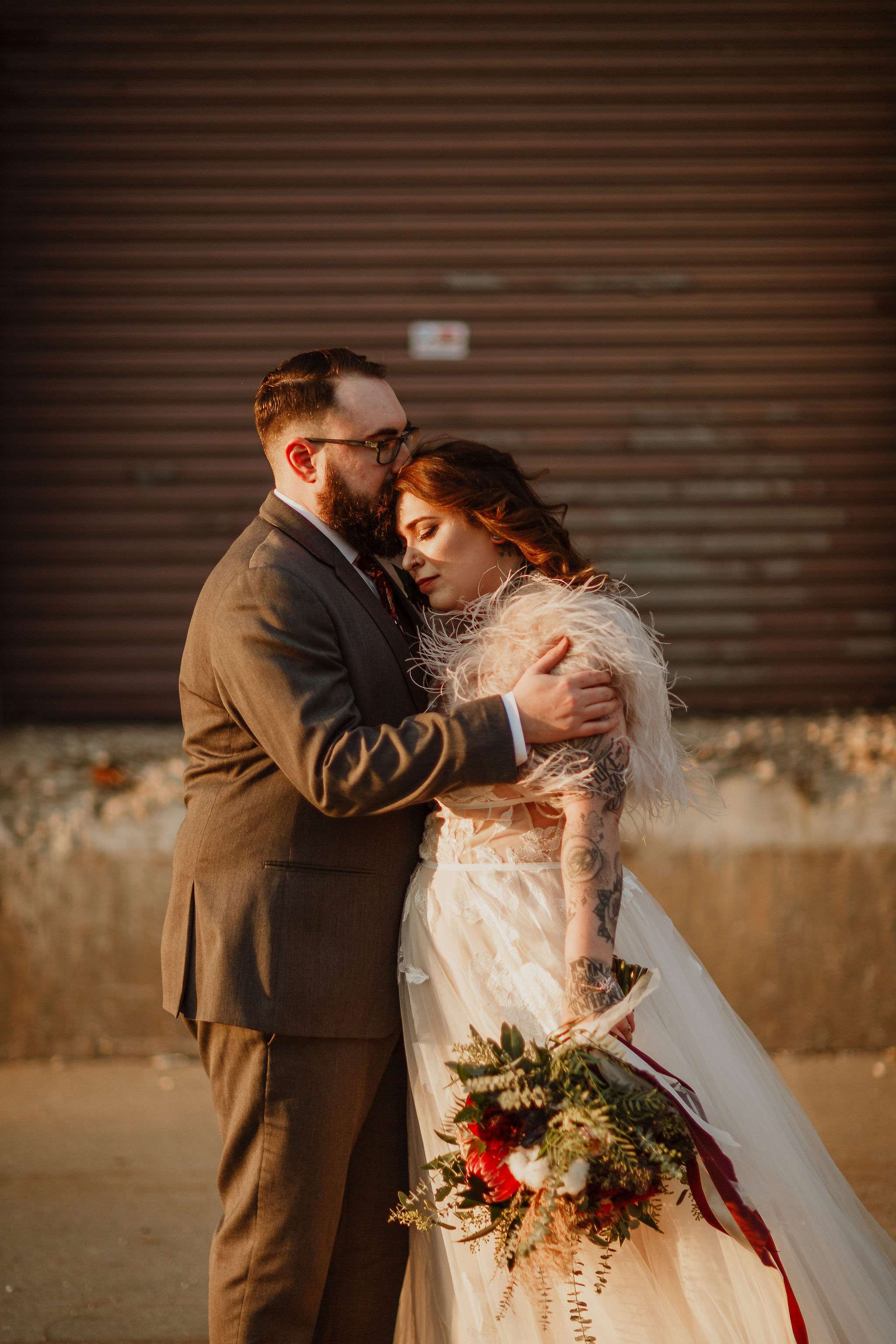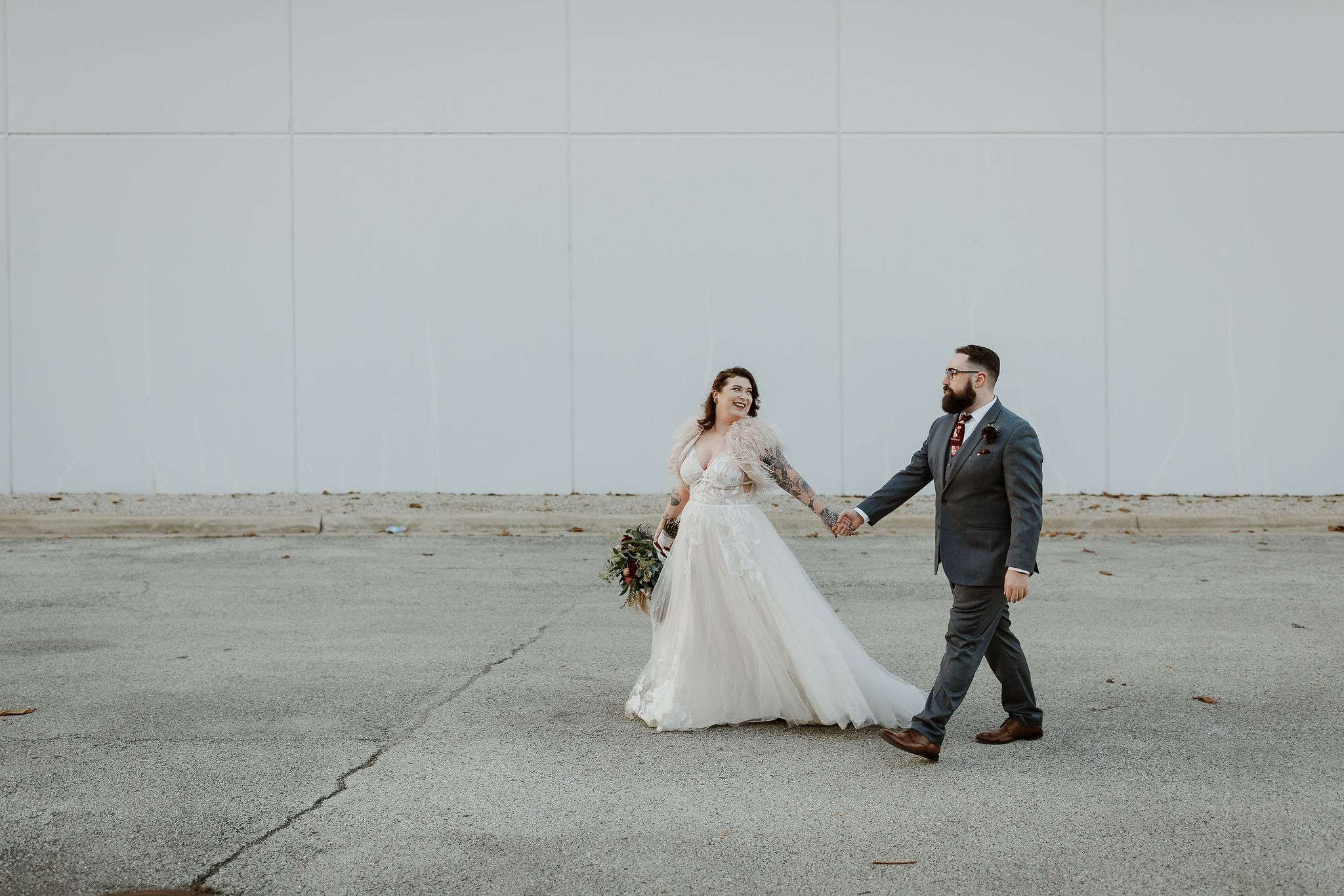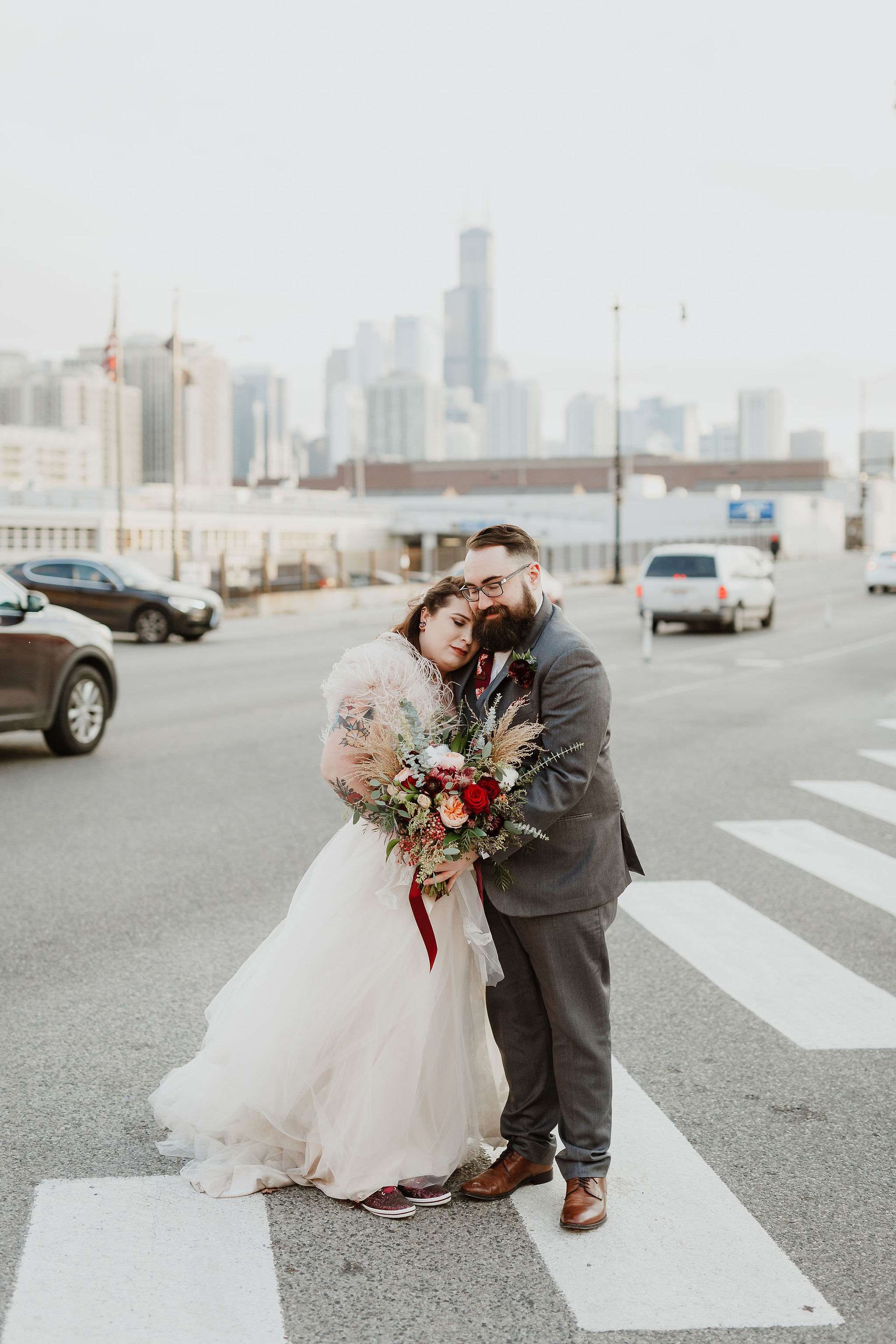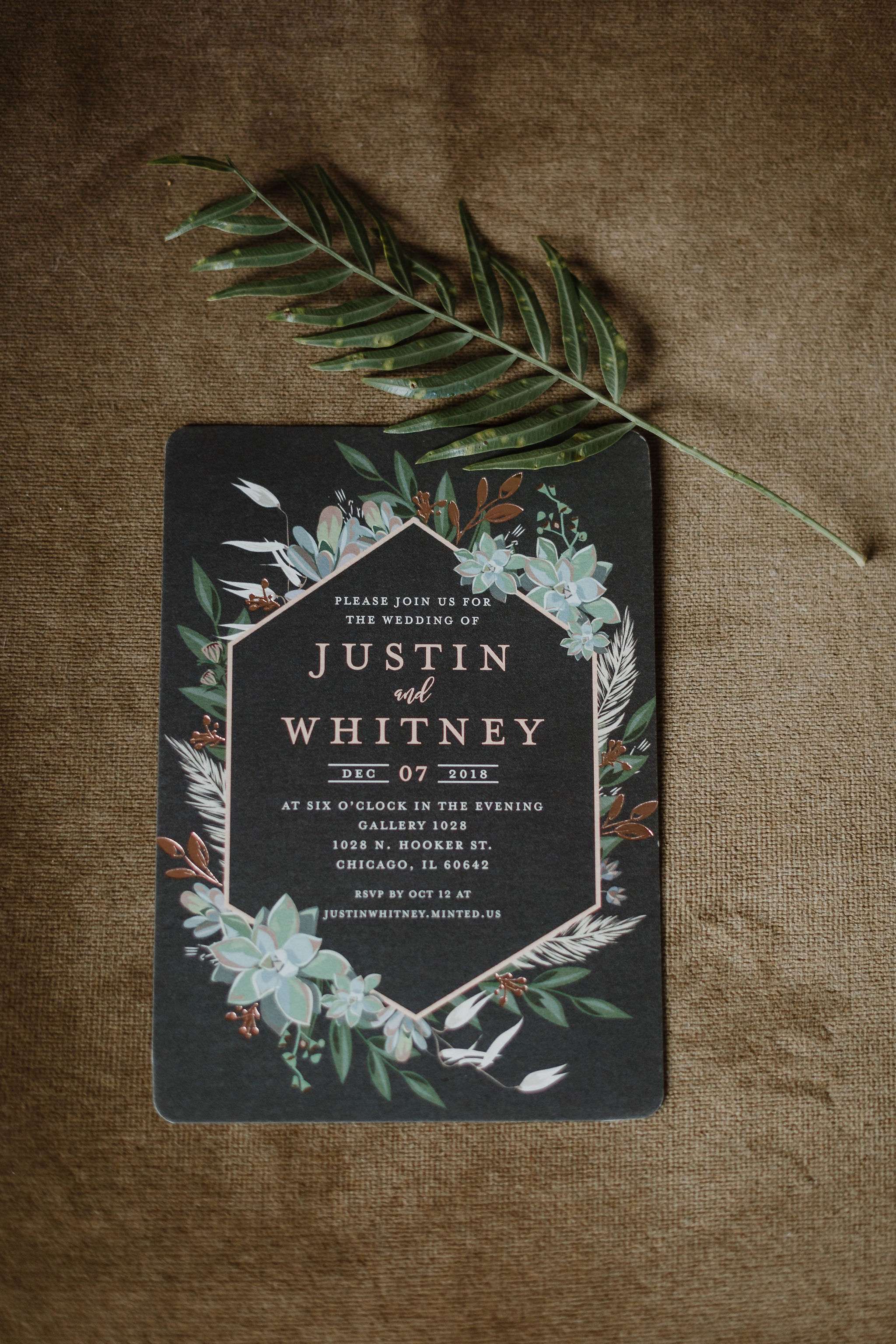 Whitney and Justin were hitched in Chicago at Gallery 1028, an industrial style venue on Goose Island. The space provided the perfect canvas for their winter wedding, the style of which was influenced by other weddings they’d attended as well as wanting day that suited the season but didn’t feel to festive or themed. They were married on December 7th.