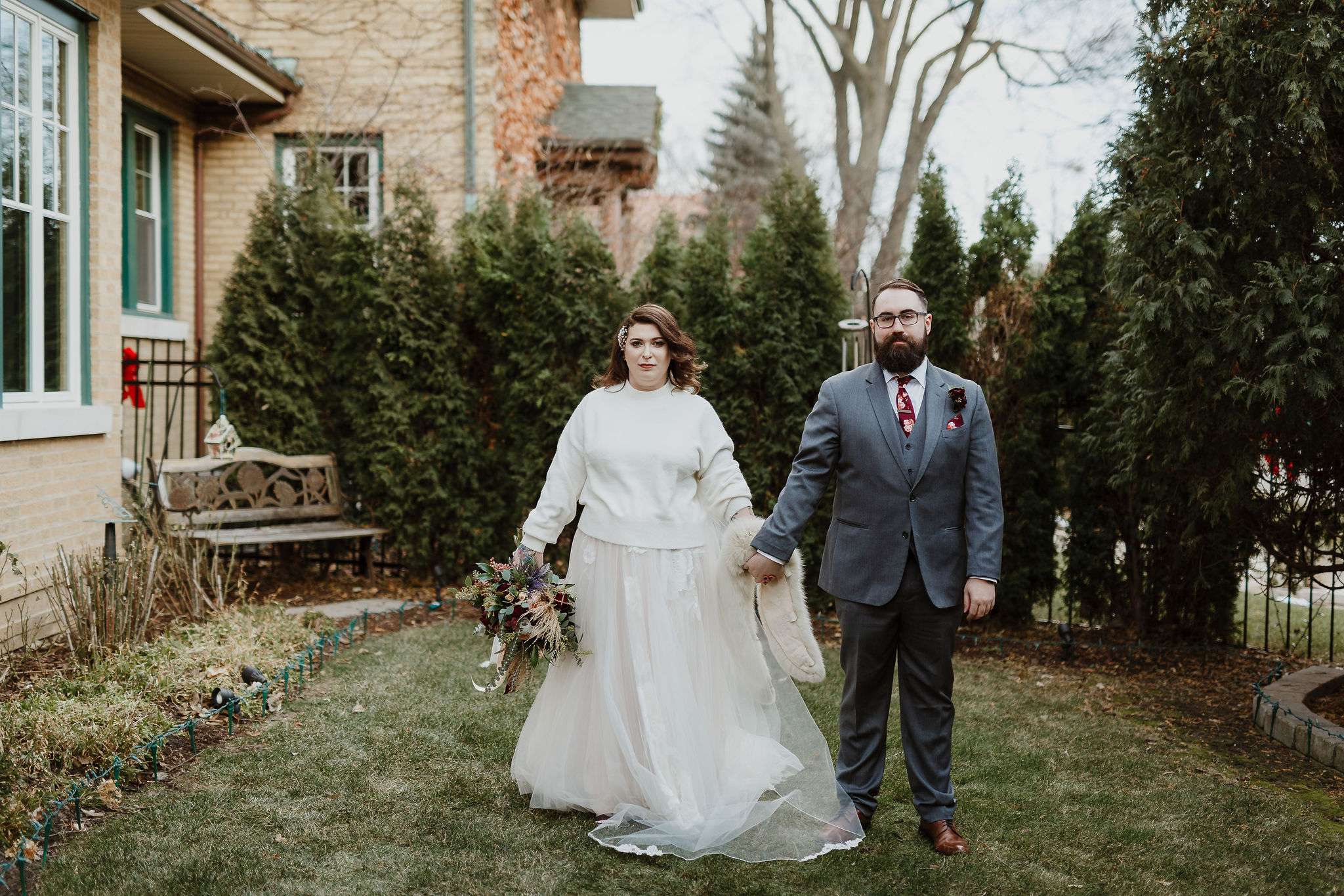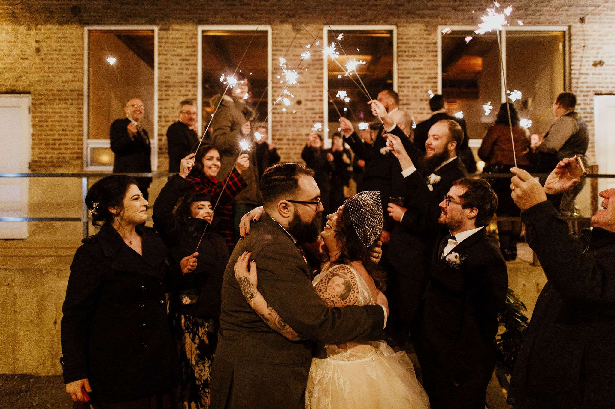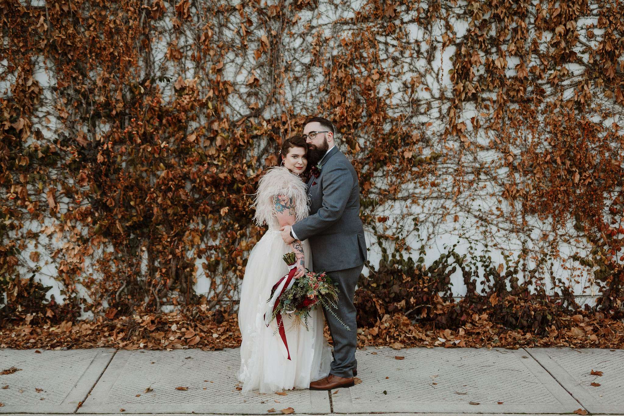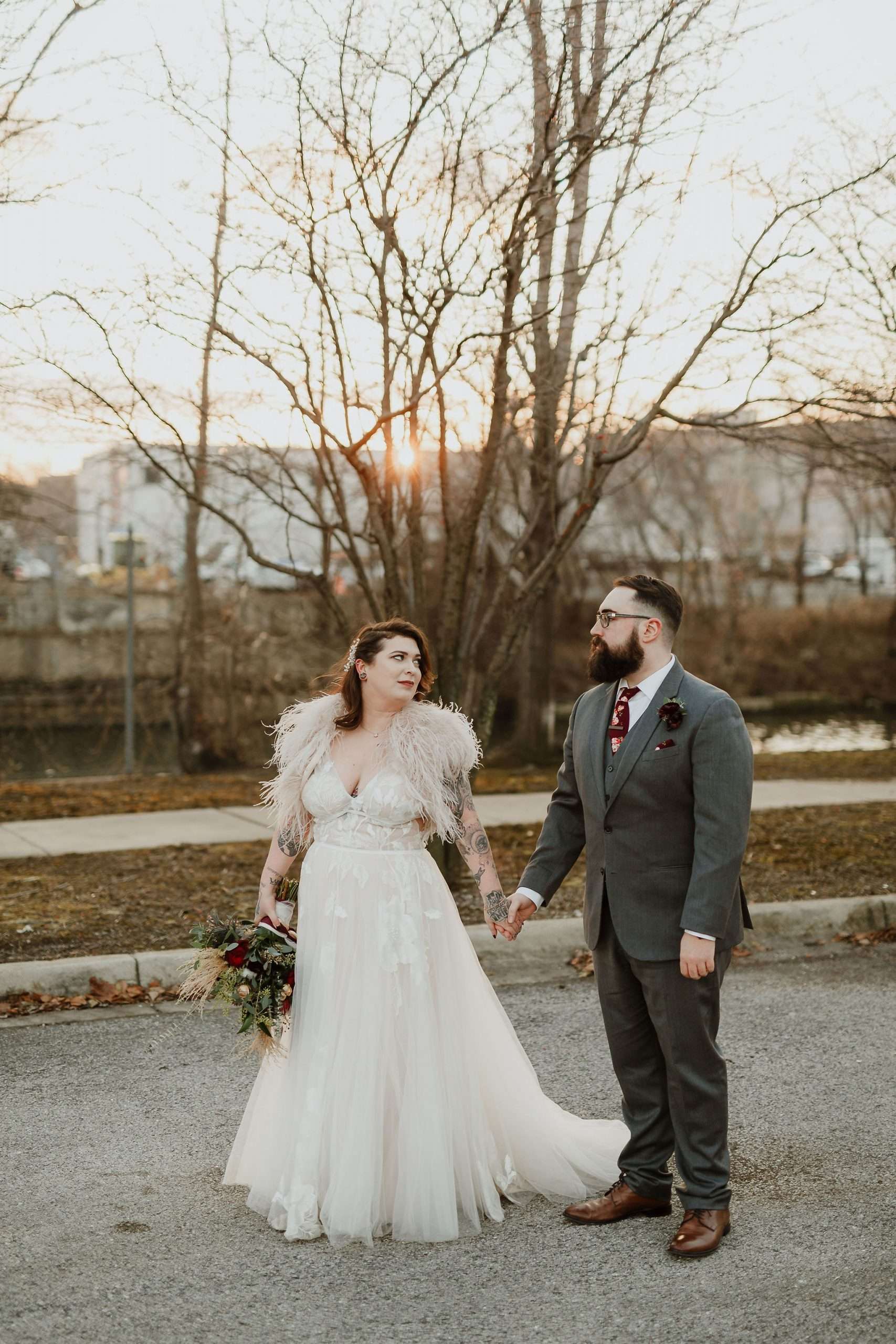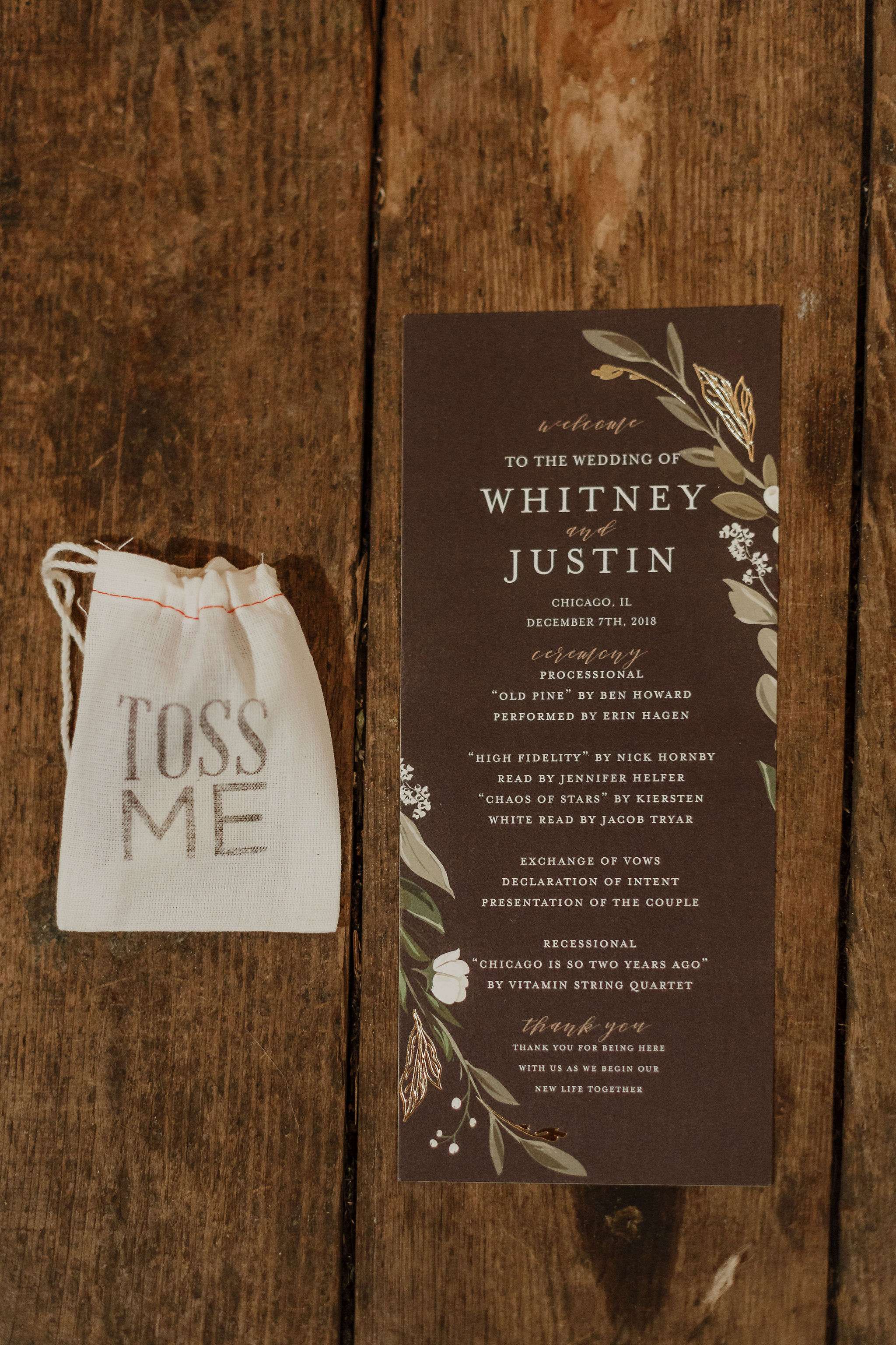 Whitney and Justin were hitched in Chicago at Gallery 1028, an industrial style venue on Goose Island. The space provided the perfect canvas for their winter wedding, the style of which was influenced by other weddings they’d attended as well as wanting day that suited the season but didn’t feel to festive or themed. They were married on December 7th.