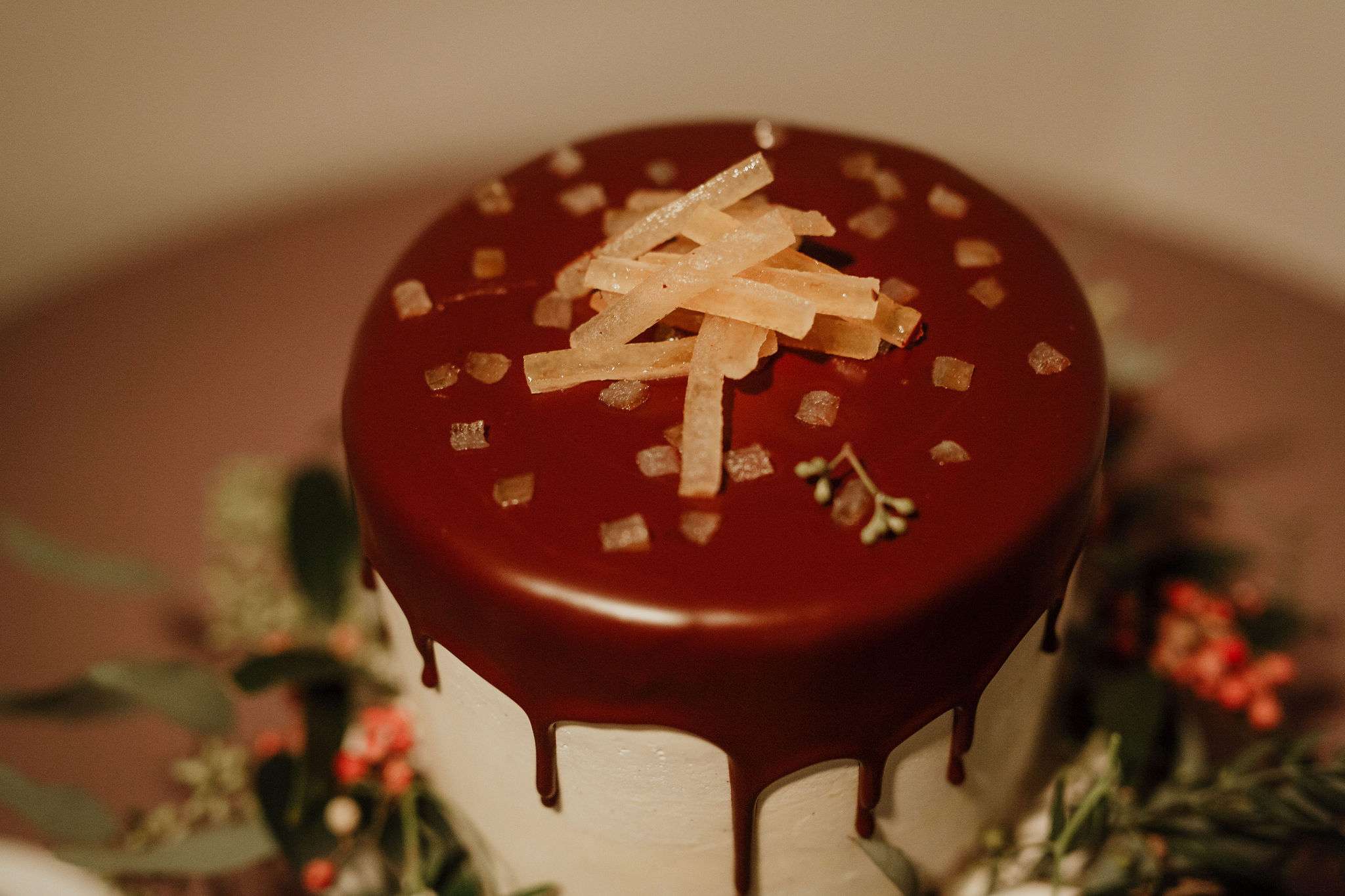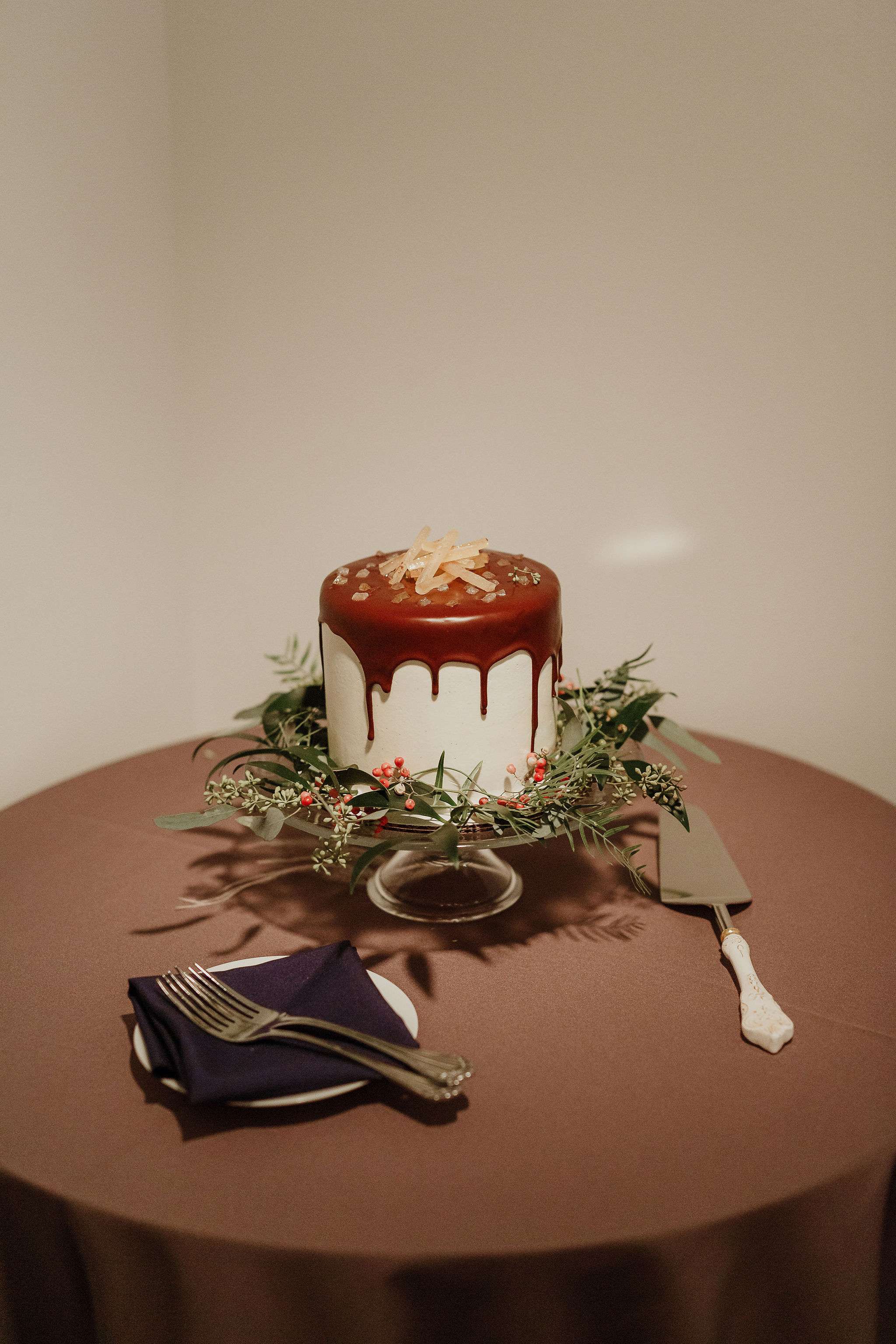 The day started with a ‘first look’, so they could see each other as soon as possible but also because it was winter and sunset was at 4pm, they wanted to get as many photos taken before their ceremony as possible. Of the ceremony itself, the bride says, “We wanted to keep it brief and to the point, but still really nice. We’re not religious, so we held a secular ceremony in the same space as the reception, with inspirational readings from our friends instead of scripture. My brother graciously accepted our request to have him officiate, since he was the one who brought us together in the first place. It was his first time officiating, and he did a fantastic job helping us as we exchanged our vows and rings. All in all, the entire ceremony only ran about 20 minutes.”
