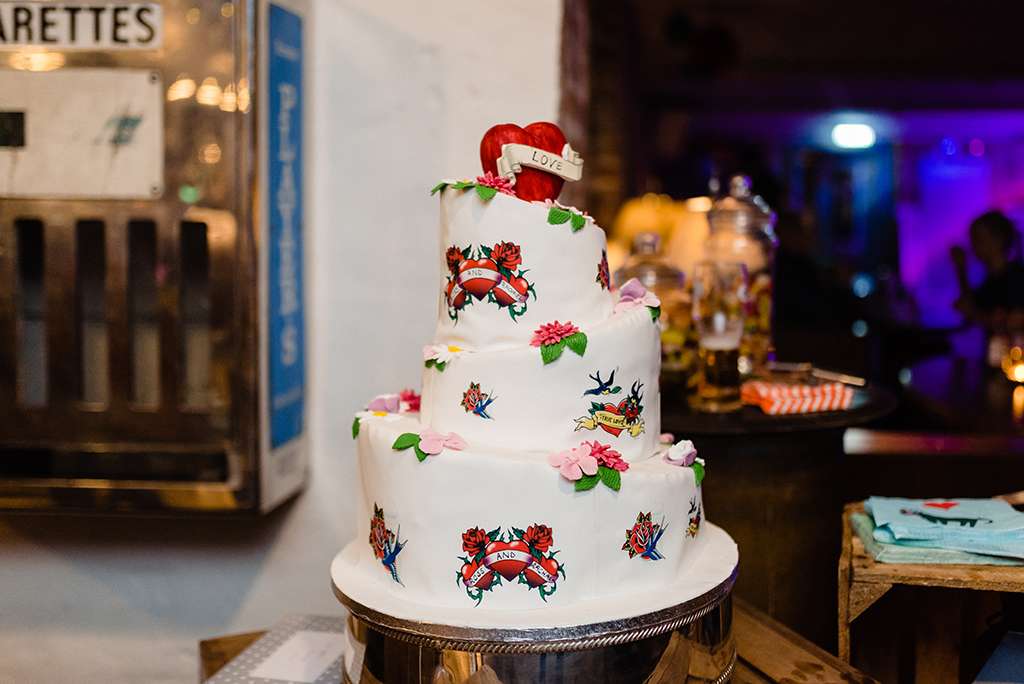They also made simple changes to traditions to do things their way. They had orchestral versions of rock songs for arrival music, empty spirit bottles (complete with labels!) as centrepieces and filled with fairylights, and tattooed mannequin torsos as a guestbook. Instead of throwing confetti, they had their guests blow bubbles as they walked outside after the ceremony.