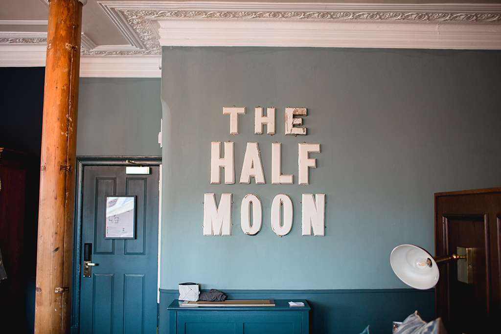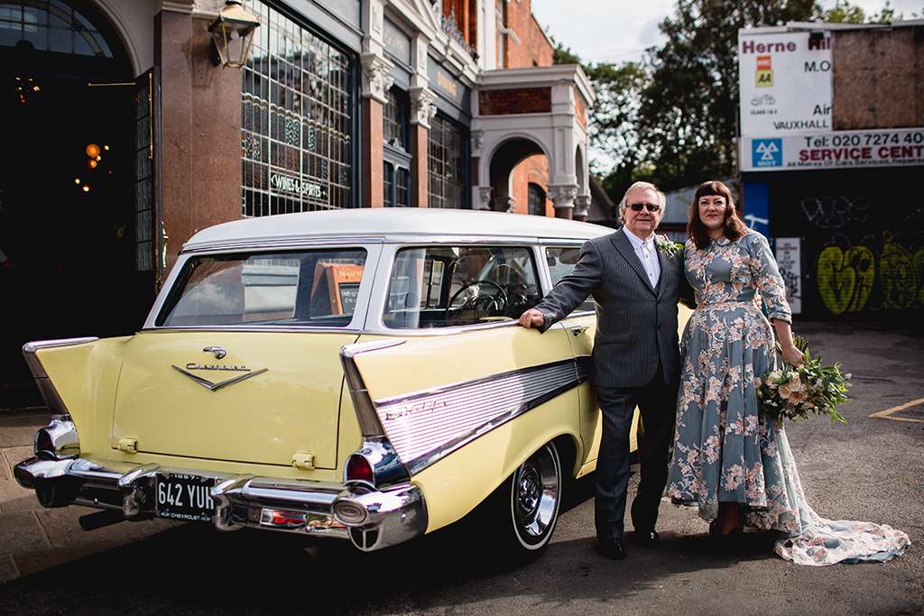 For their reception they wanted something low key and easy, so they booked The Half Moon pub located Herne Hill. “Old boozers are hard to find these days and we wanted a relaxed knee’s up in a beautiful old local pub”, she continued. “Fullers took the pub on and refitted after a devastating flood in August 2013 they kept many of the original features and even staff that have been there 25 years were impressed with the lengths that they went to keep original features, such as having the paintings/pictures restored. It felt right the minute we walked in. The Snug, just off the main bar, is an absolute dream of a room for dining, and it’s where our close family had dinner on the Friday night. Sadly, due to numbers we couldn’t hire the old side of the bar for our main reception but they have a lovely old 1920s garage that was converted into a workshop that we could use on the actual wedding day.”