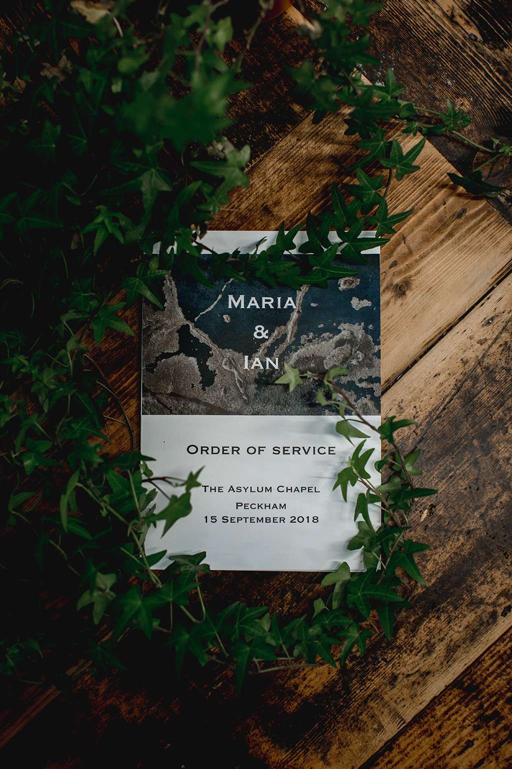 Inspired by their love of vintage and times gone by, Maria and Ian had a theme-free but very vintage inspired wedding. They picked the Asylum Chapel in Peckham as their ceremony venue because loved the beauty in the decay of the deconsecrated church and the fact that it looks a bit like nature is taking it over.