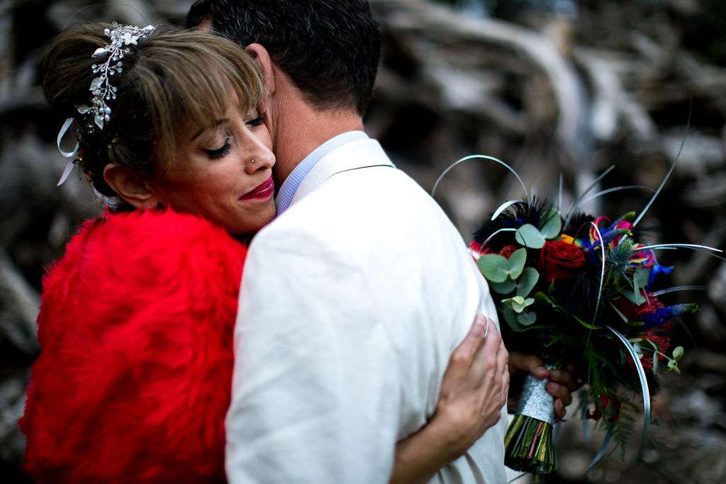 Vicky and Peter’s big day was inspired by their joint love of parties, festivals and raves – and combined with Vicky’s love of circuses, Alice in Wonderland and randomness, it made for a unique and fun-filled day! “Our main impetus was that everyone have a good time, instead of just watching us have a good time like you see at lots of wedding. We wanted to throw a crazy party that everyone could enjoy!” said Vicky.