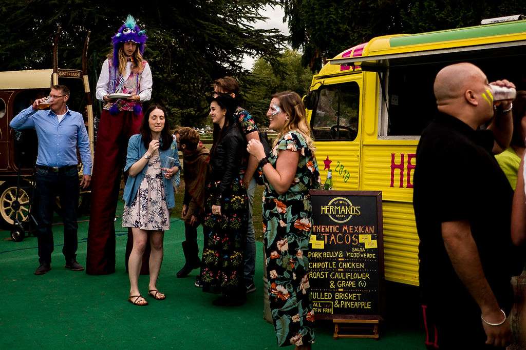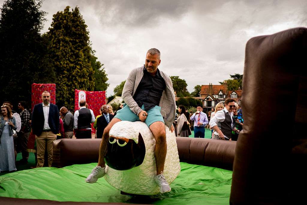 They decided to splash out on things like food, drink and entertainment; they had a street food van provide the wedding breakfast, and not one but two free bars for their guests to enjoy (and enjoy they did – there were stories of one guest turning up from America, partying all night and then getting straight on a flight back the next day, and rumours of a pair of mystery streakers at the end of the night, too!) and entertainment. Their guests were treated to not only a live indie-rock band and DJ, but also a stilt walker who gave out vodka jelly shots, a rodeo bucking sheep and a fire juggler!