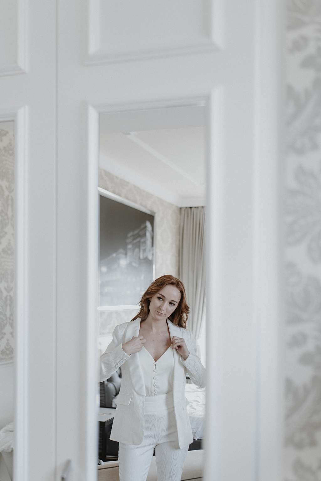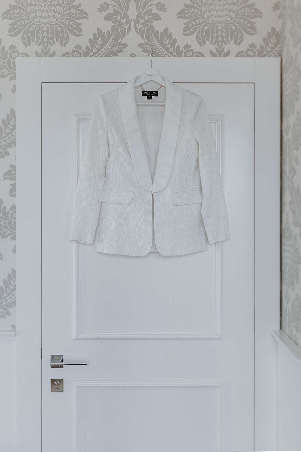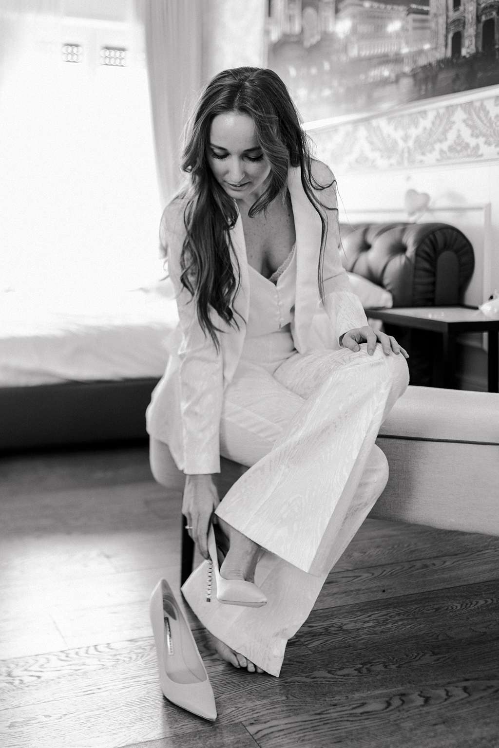 Antoinette was inspired by Rock Roll royalty Bianca Jagger’s wedding look, choosing a Rachel Zoe tuxedo, Sophia Webster shoes and a heart-shaped fascinator from a milliner she found on Etsy. “I ordered everything online and had it all tailored two weeks before the wedding,” said Antoinette.